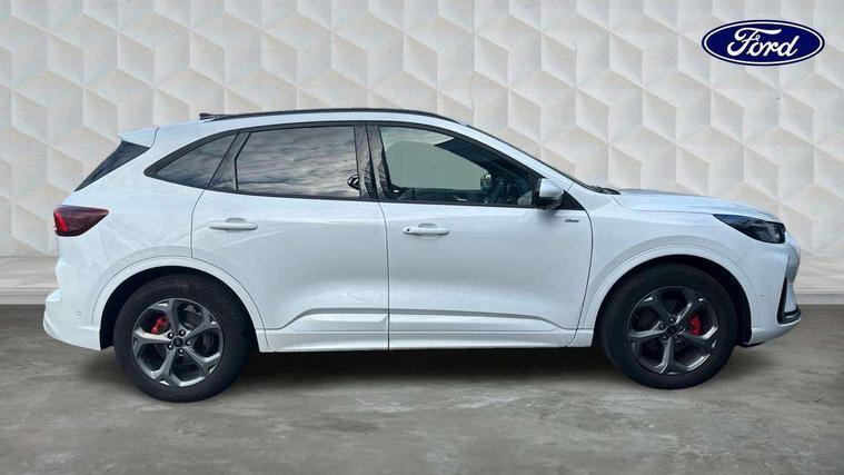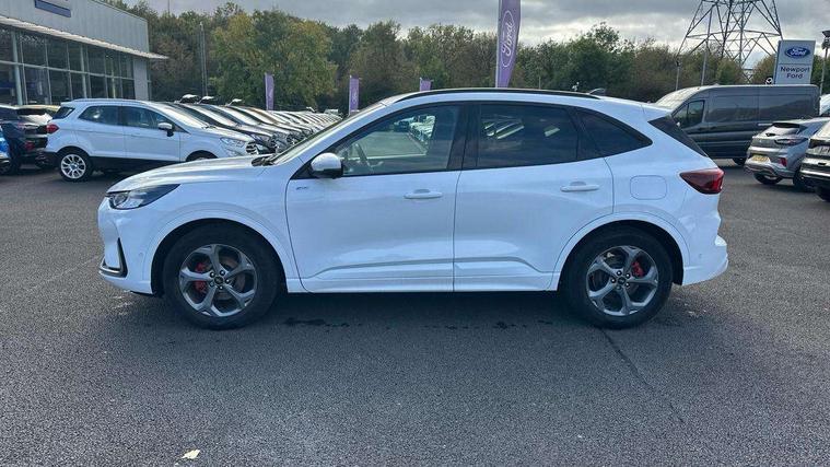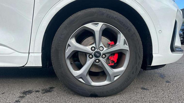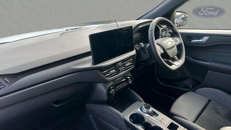 12.3" digital colour instrument cluster, 360 degree camera, e-Call (emergency call), Ford easy fuel, Ford SYNC 4 Navigation with 13" touchscreen, DAB radio, emergency assistance, Andriod Auto/Apple CarPlay, 5G modem & Ford Pass connect, Front and rear parking sensors, Hands free power tailgate, Lane centering assist, Lane keeping aid with lane departure warning, Power assist steering, Selectable drive modes, Service interval indicator, Sports suspension, Twist beam rear suspension, B&O premium audio system with 10 speakers, subwoofer and 2 USB ports, Auto headlamps with high and low beam, Black roof rails, Body colour bumpers, Front LED fog lamps, Large rear spoiler, LED daytime running lights, LED rear lights, Pop out door edge protectors, Power front/rear windows with global close, Power heated folding door mirrors with puddle lights, memory function and camera, Quickclear heated windscreen, Rain sensing wipers, Rear privacy glass, Rear side wing doors, Rear wiper, ST-Line body styling kit, Third brake light, 12 way ergonomic power adjust driver's seat with memory (AGR certified), 12 way ergonomic power adjust passenger seat (AGR certified), 2nd row sliding seats, Electronic automatic temperature control (EATC), Front and rear head restraints, Partial premium touch sensico upholstery, Rear centre head restraint, Single front passenger seat, Sports seats, Driver assistance pack with intelligent adaptive cruise control - Kuga FHEV/PHEV, 3x3 point rear seatbelts, Airbags - front driver/passenger, front and rear curtain, Drivers knee airbag, Dynamic brake support, Electronic stability control (ESC) and ABS, Evasive steering assist, Ford MyKey Gen 2 safety system, Manual child proof rear door locks, Pre collision assist with autonomous emergency braking, Rear seat Occupancy alert, Red brake calipers, Tyre pressure monitoring system, Engine immobiliser, Keyless entry and Ford power start button (Keyless start), Locking wheel nuts, Remote powered central double locking doors, Thatcham category 1 alarm,