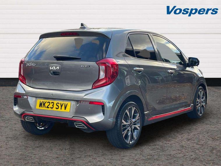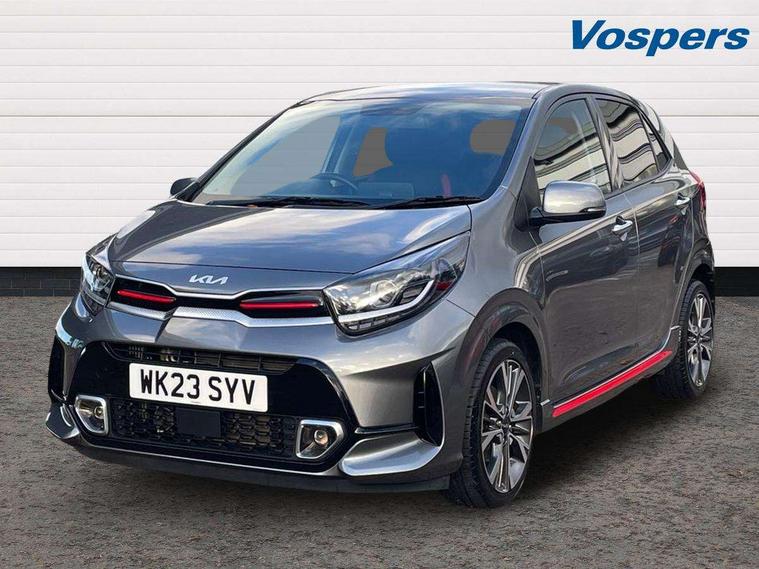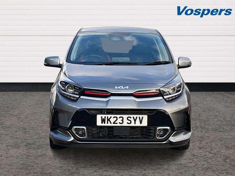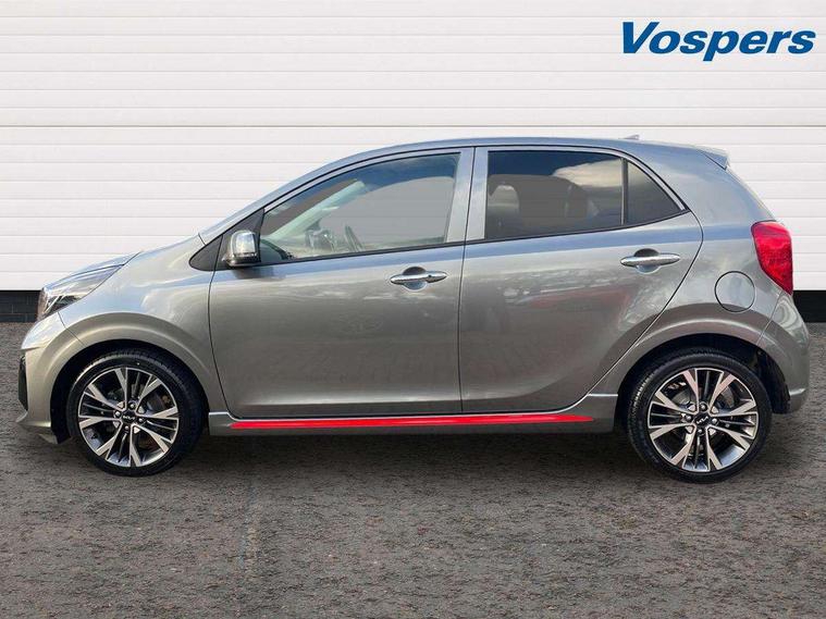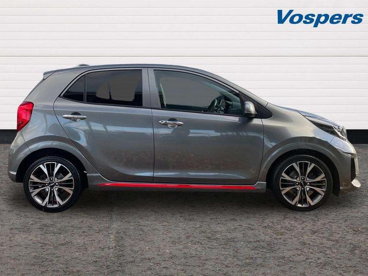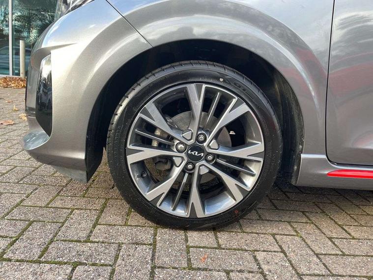 8" touch screen satellite naviagtion with RDS and DAB with telematics, Apple car play/Android Auto with voice control, Cruise control + speed limiter, Emergency call service, Emergency stop signalling system, External temperature gauge, Kia Connect (UVO), Motor driven power steering, Rear parking sensors, Reversing camera system with dynamic guidelines (Integrated into centre fascia screen), Tachometer, Trip computer, Wireless Smartphone charger, 6 speaker audio system, Bluetooth with music streaming, Steering wheel mounted controls, USB ports for connection of a media device, Automatic headlight control system, Bi-function projection headlights, Black beltline mouldings, Black grille with silver surround, Body colour B pillars, Body colour bumpers, Body colour side sill mouldings, Body coloured mirrors and chrome exterior handles, Day/night rear view mirror, Electric adjustable/heated/folding door mirrors with LED indicators lights, Front and rear electric windows with drivers's auto up/down function, Front fog lights, Headlamp levelling, Heated rear window, High mount brake light, LED daytime running lights, LED rear fog lights, Privacy glass - Rear windows and tailgate, Rain sensor, Rear side wing doors, Rear wash/wipe, Speed variable front wipers, Sports front and rear bumpers with gloss black skid plates twin exhaust, Tinted glass, Visible VIN plate, Welcome and follow-me home light functionality, 1 x rear coat hook, 12V power point front, 2 seat bench in 2nd row, 3 x passenger assist grips, 60/40 split/folding 2nd row of seats, All round height adjustable headrests, Automatic air conditioning, Black and red accents front door armrest, Centre Console with Storage Box and Sliding Armrest, Cupholders in centre console, D-cut steering wheel with red stitching, Driver and front passenger sunvisors with driver's side illuminated vanity mirrors, Driver seat height adjust, Faux leather upholstery, Front cabin lights, Glovebox, Heated front seats, Heated steering wheel, High gloss lower centre fascia trim, door armrest and air vents, ISOFIX Child seat top tethers and anchor fixings, Leather trimmed steering wheel and gearshift, Luggage area light, Luggage area parcel shelf, Passenger front seatback pockets, Satin chrome interior door handles, Single front passenger seat, Slide/reclining front seats, Tilt adjustable steering wheel, Advanced Driver Assistance Pack - Picanto, 2 x 3-point rear seatbelts, ABS/EBD, Automatic unlocking of doors in case of impact, Dual front airbags, ESC + BAS + VSM + HAC, Front passenger airbag cut-off switch, Front seatbelt height adjusters, Front seatbelt pretensioners + load limiters, Hill hold control, Knee airbags, Rear child proof door locks, Seatbelt warning, Side impact protection, Torque vectoring brake based and straight line stability (SLS), Traction control, Twin curtain airbags, Twin front side airbags, Tyre pressure monitoring system, Anti theft alarm, Engine immobiliser, Locking wheel nuts, Smart key with engine start/stop button, 16" alloy GT-Line wheels, Tyre mobility kit,
