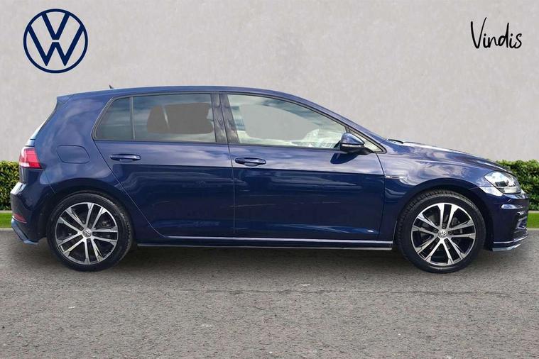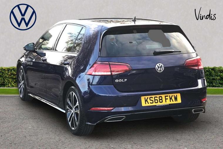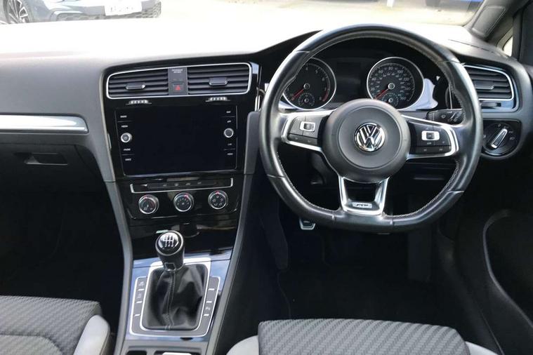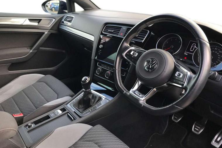 'Lights On' Reminder warning buzzer, ACC - Adaptive cruise control with front assist, forward collision warning, distance monitoring, city emergency brake and speed limiter, Bluetooth telephone and audio connection for compatible devices, Brake pad wear indicator warning light, Driver alert system, Driver profile selection, Driving Mode Selection with four preset modes - Eco, normal, sport or individual modes, Front assist, radar sensor controlled distance monitor, city emergency braking + predictive pedestrian protection, Front assistant collision mitigation, Instrument cluster in white, Multifunction computer with visual gear change recommendation for fuel consumption, Power assisted speed sensitive electro-mechanical steering, Speed limit display, Speedo, rev counter, electronic odometer, trip, service interval display, exterior temperature and fuel gauge, Stop/start system, Ultrasonic front and rear optical and audible parking sensors, Warning buzzer and light for front seatbelts unfastened, Battery regeneration during braking, Lowered sports suspension, XDS electronic differential lock, Composition media system, DAB Digital radio receiver, MDI multi device interface, MP3/WMA compatability, Multi device interface (MDI) with USB connection, Premium USB cable in choice of either Apple or Android smartphone compatibility, SD card slot, SMS Functionality, Title and cover art display, 4 X 20W output, USB connection and socket, USB and SD card connectivity, Automatic dimming rear view mirror/rain sensor, Black front air intake and radiator grille with chrome insert, Black sports rear diffuser, Body colour bumpers, Body colour door handles, Body colour door mirrors with integrated indicators, Chrome grille surround, Chrome trimmed front air intake surrounds, Electric front windows, Electric rear windows, Electrically adjustable and heated door mirrors, Glavanised body, Heated rear windscreen, High level 3rd brake light incorporating LED Technology, Left and right chrome effect trapezoid dummy exhaust tailpipe surrounds, Range adjustable headlights via infotainment system with LED daytime running lights, Rear fog lamp, Rear number plate lights incorporating LED technology, Rear tinted glass 65% light absorbing from B pillar backwards, Rear window aerial, Rear window wash/wipe with intermittent wipe, Reflectors in all doors, Remote electrically foldable door mirrors, door mirror puddle lights and reverse activated kerb-view adjustment on passengers door mirror, Stainless steel door sill protection, Windscreen wipers/ intermittent wipe + 4 position delay, 12V socket in luggage compartment, 3 rear headrests, 4 load lashing points in luggage compartment, 60/40 split folding rear seat backrest, Bag hook in luggage compartment x 2, Black roof lining, Cooled glovebox, Dust/pollen filter, Front + rear carpet mats, Front centre armrest with storage compartment and two rear air vents, Front footwell lights, Front reading lights, Front seat back storage pockets, Grab handles front x 2, rear x 2 with integrated coat hooks, Height and reach adjustable steering wheel, Illuminated vanity mirrors, Instrument lighting white adjustable panel illumination, Interior light delay, Isofix preparation for 2 rear child seats, Leather gear knob and handbrake grip, LED front and rear reading lights, Load through provision with rear centre armrest and cupholders x2, Luggage compartment light, Multifunction leather steering wheel with leather trimmed gear knob, Overhead storage box, R Line badge, Stainless steel pedals, Storage box in luggage compartment, Storage compartment in roof console with cover, Storage compartments in front doors, Storage compartments in rear doors, Stowable luggage compartment cover, Sun visors, Three spoke multi-function leather trimmed steering wheel and gearknob, Variable boot floor, height adjustable and removable, Ambient lighting pack - Golf, Convenience Pack - Golf, Light and Sight pack - Golf, Mirror pack - Golf, R Line Styling pack - Golf, 3 rear three point seatbelts, Airbags - Driver's and front passenger's, curtain airbag, Driver's knee, front side impact and passenger's airbag deactivation switch, Anti-lock Braking System (ABS) with Hydraulic Brake Assist (HBA), Automatic post collision braking system, Child locks on rear doors, Driver/Passenger optimised head restraints, Electronic parking brake with auto hold, Electronic stability control (ESC) including Electronic differential lock (EDL) and ASR (Traction control) with deactivation via infotainment system, Pre crash preventive occupant protection, Three point height adjustable front seatbelts with tensioners, Tyre pressure loss indicator, Alarm with interior protection and deactivation via infotainment system, Electronic engine immobiliser, Remote central locking with 2 remote folding keys, Chrome plated air vent surround, Chrome plated electric mirror adjustment light switch surround, Dark Diamond decorative inserts in dash and door panels, Piano black centre console with aluminium inlay, Steel space saver spare wheel,