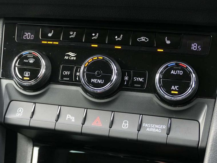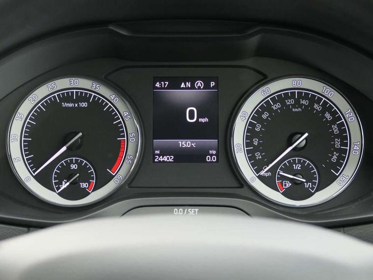 Driver alert system, Driver fatigue sensor, Driver profile selection, Electro-mechanical PAS, Front and rear parking sensors, Multifunction colour trip computer, Outside temperature gauge, Rear view camera, Service interval indicator, Start/stop system with regenerative braking, Diesel particulate filter, DAB radio with Bluetooth, SD card slot, USB connection, Acoustic glass, Aero front windscreen wipers with intermittent function, Automatic headlight control system, Body colour door mirrors and handles, Body coloured bumpers, Chrome outside aluminium bar around the window, Chrome roof rails, Full LED headlights + adaptive front light system + LED daytime running lights and front cornering fog lights, Headlight washers, Heated rear windscreen, LED rear lights with high functionality, Light assistant (coming/leaving home/tunnel light), Privacy glass, Safety reflectors on front doors, Third brake light, 1.5 litre bottle holders in driver and front passenger door panels, 12V socket in boot, 12v socket in front centre armrest with storage compartment and rear air vents, 2 Folding hooks and nets in boot, 2 Front readings lights for driver and passenger, 3 rear height adjustable headrests, 4 foldable roof handles with rear coat hooks, 4 lashing points on luggage floor, Backrest release, Cargo elements in boot, Chrome inner door handles, Dual zone climate control, Folding tables on the front seat backrests, Front seat and rear pockets, Height adjustable front three point seats belts with tensioners, Height adjustable passenger seat, Height/reach adjust steering wheel, Ice scraper, Illuminated and cooled glovebox, Illuminated luggage compartment, Isofix child seat preparation outer rear, Net programme in boot, Pen holder, Pollen filter, Rear boot cover, Rear reading lights, Rear seats fixed folding and divided 60:40, Removable LED torch in the boot, Retractable parcel shelf attachable to tailgate, Safety vest holder, Storage box in upper central dashboard closed, Storage compartment below the passenger seat, Storage net on centre console passenger side, Sunglasses storage compartment, Sunvisors with illuminated vanity mirrors, Textile floor mats, Umbrella under passenger seat, VarioFlex seats with retractable parcel shelf, Airbags - Front side, head, knee and curtain, Automatic door unlocking in case of crash, Automatic fuel cut off in case of crash, Brake energy regeneration, Driver airbag, Electronic parking brake with auto hold function, Emergency rear braking signal, ESC including ABS, MSR, ASR, EDS, HBA, DSR, RBS, MKB and traction control, Front assist radar scanning of the space in front of the car with automatic braking, Hill hold control, Passenger airbag with switch-off function, Pedestrian monitor, Seatbelt reminder signalisation and pretensioner for all seats, Three point seatbelts rear, Two tone horn, Tyre pressure display, Tyre pressure monitor, Alarm with interior monitoring, back up horn and tilt sensor with safe function, Electronic engine immobiliser, Keyless entry and keyless start with safe system, Remote central locking with 2 remote folding keys, Chrome framed air vents, Storage on wheel cover,