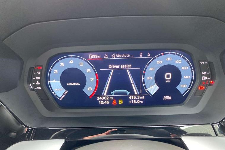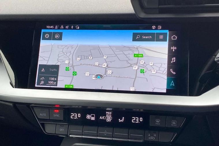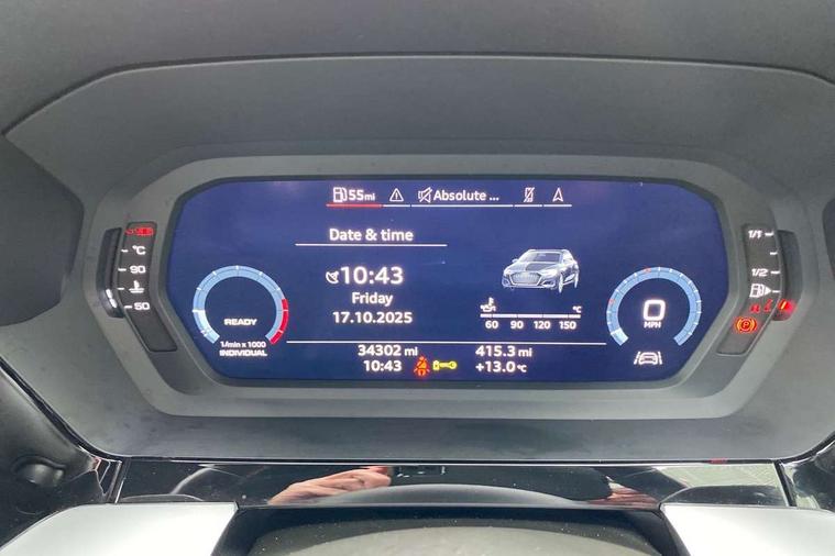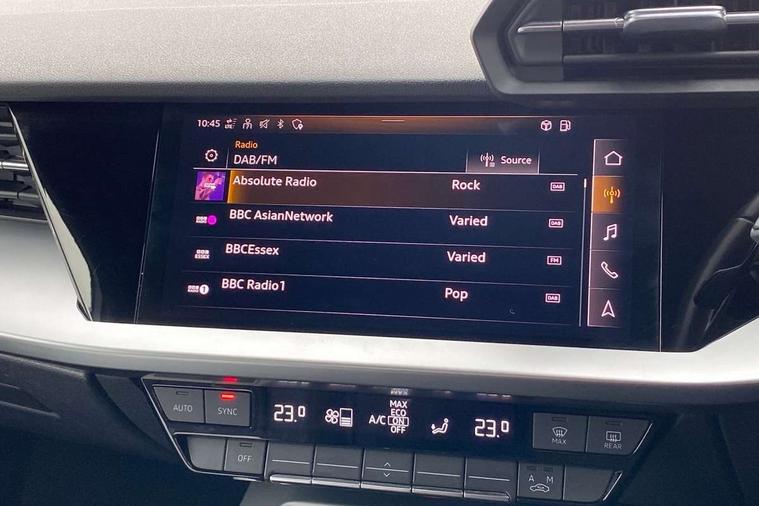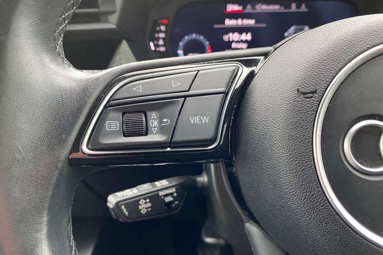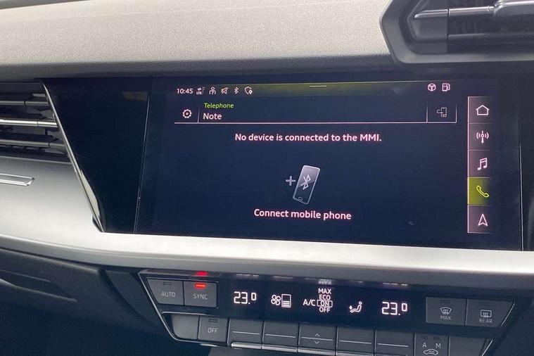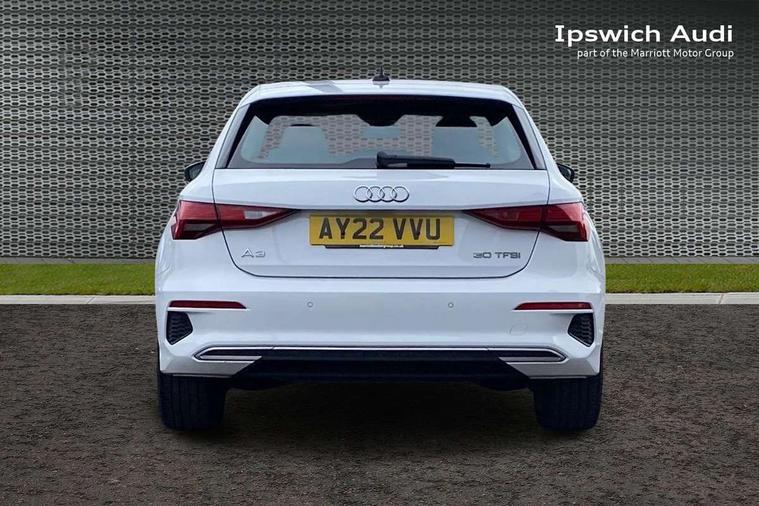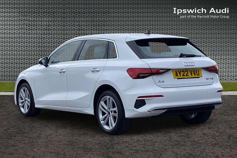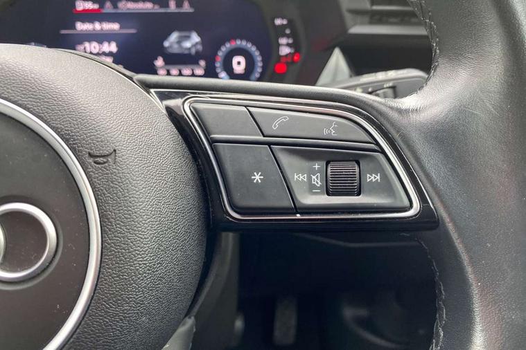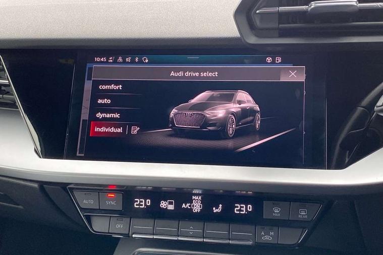 Audi connect emergency call and service, Audi drive select (Auto, Comfort, Dynamic and Individual), Audi smartphone interface, Audi Virtual Cockpit - 10.25" digital and colour instrument cluster, Automatic start/stop system with recuperation, Bluetooth interface, Collision avoidance assistant, Electromechanical power speed sensitive steering, Lane departure warning system, MMI Navigation Plus with high resolution 10.1" colour touch screen display, Service indicator, Trip computer, Voice control system with natural language interaction, Standard suspension, 2xUSB-C connection with data and charging functions, 6 passive loudspeakers, DAB Digital radio, 3rd brake light, Acoustic glass windscreen, Aluminium window trim, Auto dimming frameless rear view mirror, Body colour exterior mirrors, Body colour roof spoiler, Electrically adjustable/heated/folding/auto dimming door mirrors with integrated LED indications + kerb view function for passenger side, Front electric windows, LED daytime running lights, LED headlights and halogen rear lights, Light and rain sensors, Rear electric windows, Rear window, rear door windows and rear side windows in clear glass, Rear wiper, 12V socket and storage compartment in front centre console, 40/20/40 split folding rear seat bench with cupholder, Dual zone electronic climate control, Front and rear centre armrest, Front and rear headrests, Front door sill trims with aluminium inlay, Front/rear floor mats, Height and reach adjustable steering wheel, Interior lighting - Front and rear roof module including reading lights, glove compartment light and right hand side, Luggage compartment floor covering, Manual boot compartment lid, Manually adjustable front seats, Seat side bolsters, Steel grey cloth headlining, Twin leather upholstery, Aluminium interior elements pack - A3 Sportback, Sport styling pack - A3 Sportback, 3x3 point rear seat belts, Driver and front passenger airbag with passenger airbag deactivation, Electronic Stabilisation Control (ESC) including ABS, ASR and EDL, First aid kit with warning triangle and 2 safety vests, Front side airbags with head airbags and interaction airbag, Hill hold assist, Pre-sense front with pedestrian and cyclist detection, Seatbelt monitoring, Tyre pressure loss indicator, Anti theft alarm, Anti-theft wheel bolts, Electronically operated child lock, Immobiliser, Remote control central locking, Inlays with silk effect paint in platinum grey,