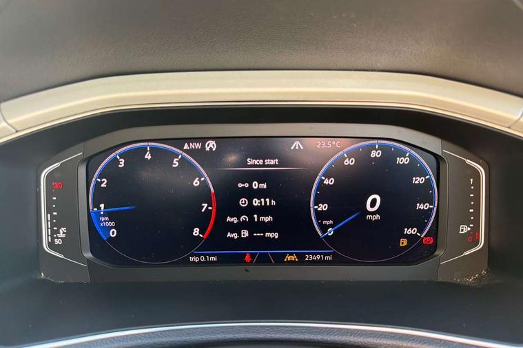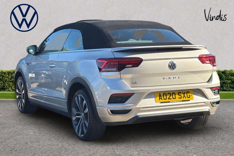 Alarm with interior protection and deactivation via infotainment system, Electronic engine immobiliser, Bluetooth - Simultaneous pairing of 2 compatible mobile devices, DAB Digital radio, Diversity antenna for AM/ FM reception, Front USB type C Interface 2X and USB charging socket, Music playback - MP3, WMA and AAC files, SMS functionality - read, compose and send SMS messages using touch-screen display, Title and cover art display, WeConnect plus, 2 x 3-point rear seat belts, ABS, Autonomous emergency braking, Driver and front passenger safety-optimised head restraints, Driver/Front Passenger airbags, Electronic parking brake with auto hold, Electronic stability control (ESC) includes ASR, EDL, EDTC and trailer stabilisation function, Front passenger airbag deactivation, Front side airbags, Pedestrian monitoring, Rigid safety cell with front and rear crumple zones, Single tone horn, Three point height adjust front seatbelts + pretensioners, Tyre pressure monitor, Ventilated front and rear disc brakes, Volkswagen roadside assistance, Auto dimming interior rear view mirror, Automatic headlamp activation with manual coming home and automatic leaving function, Black door handles, Body colour exterior mirror housings, Body colour rear roof spoiler, Body coloured comfort bumpers, Chrome effect left and right trapezoid exhaust tailpipe fascia surround, Chrome trim on upper and lower radiator grille, Darkened LED tail lamp, Electrically power adjustable, heated, folding, auto dimming, front passenger exterior door mirror lowering function, Front and rear electric windows, Front fog lights with static cornering function, High level 3rd brake light, LED rear number plate lights, Power operated canvas convertible top, Rain sensor, Rear fog lamp, Windscreen wiper with intermittent wipe light, 12V socket in centre console storage area, 2 front reading lights, 50/50 rear seat bench split folding rear seat backrests, Brushed stainless steel pedals, Chrome plated radiator grille inserts, air vent surrounds and light switch surrounds in interior, Climate control - 2 zone electronic air conditioning with automatic air recirculation and allergy filter, Entry aid easy entry (Front folding seats), Front + rear carpet mats, Front centre armrest, Front cupholders x 2, Front reading light, Front seat back storage pockets, Front sports comfort seats with manual height adjustment, Glove Compartment with light, Height/reach adjust steering wheel, Illuminated vanity mirrors in sun visors with air bag label on sun visor and b-pillar, Instrument lighting, white adjustable panel illumination, Interior light delay, Interior light in footwell, Interior white ambient lighting and surround lighting, Isofix easy fit child seat preparation for 2 outer rear seats, Leather wrapped multifunction steering wheel, Luggage compartment lighting, Power adjustable lumbar support in front, Rear head restraints, Scuff plates in door apertures, Storage compartments in driver and front passenger doors, 8" colour touch screen, Active Info display 10.25" high resolution TFT dash display with customisable menu and information, Adaptive cruise control, Bluetooth telephone and audio connection for compatible devices, Brake pad wear indicator, Car information display, Driver alert system with fatigue detection, Driver tips and journey analysis, Dusk sensor, Dynamic road sign display, Emergency call service, Front assist, radar sensor controlled distance monitor, city emergency braking + predictive pedestrian protection, Lane assist, Mobile phone interface, Multifunction computer with visual gear change recommendation for fuel consumption, Navigation system discover media including streaming and internet, Online services, Progressive power assisted steering, Service interval indicator, Start/stop system with brake energy recovery, Warning sound and light for doors and tailgate open, Warning sound and light for front and rear seat belts if unfastened, Wired and wireless app connect,