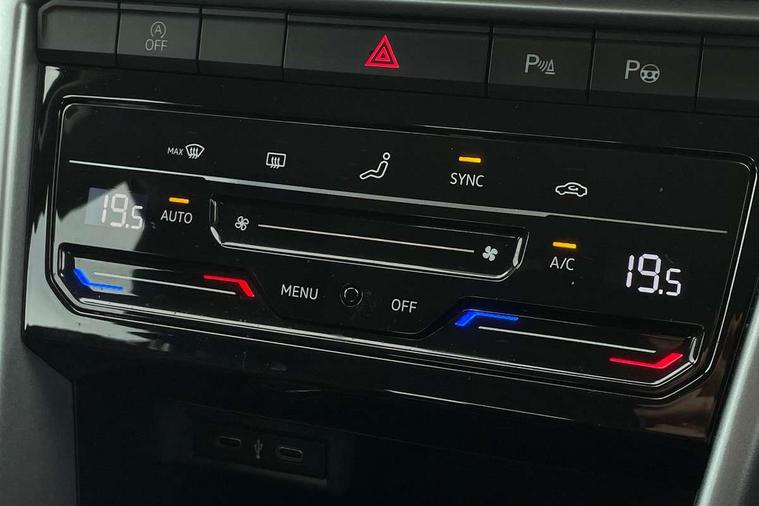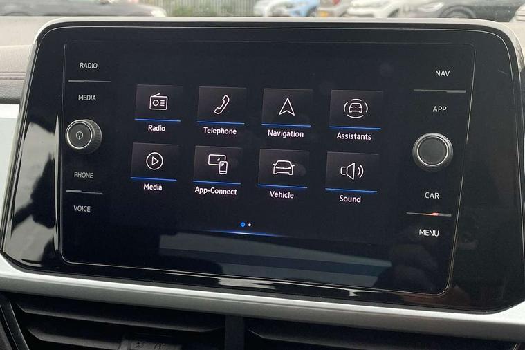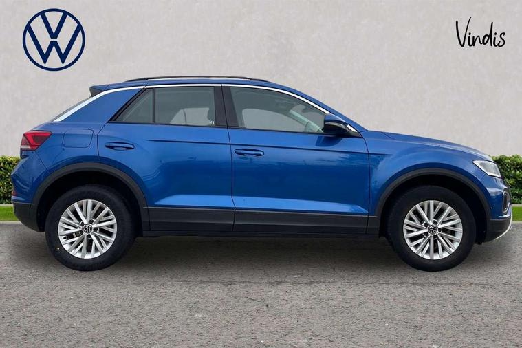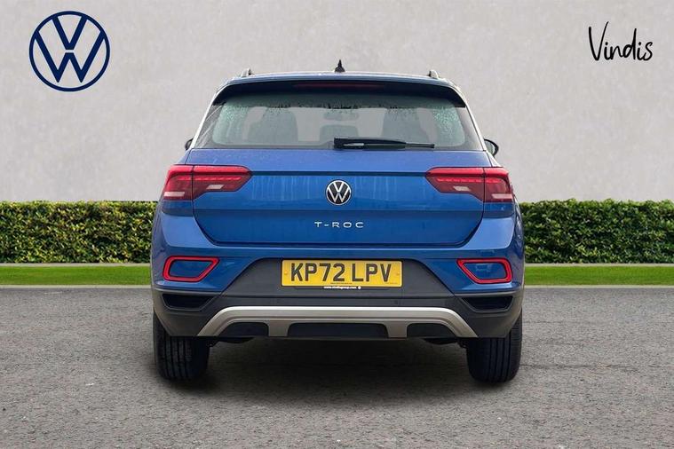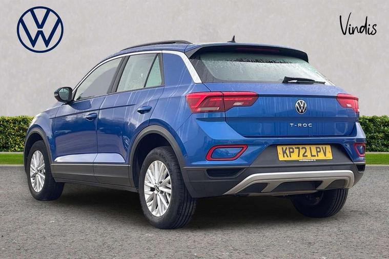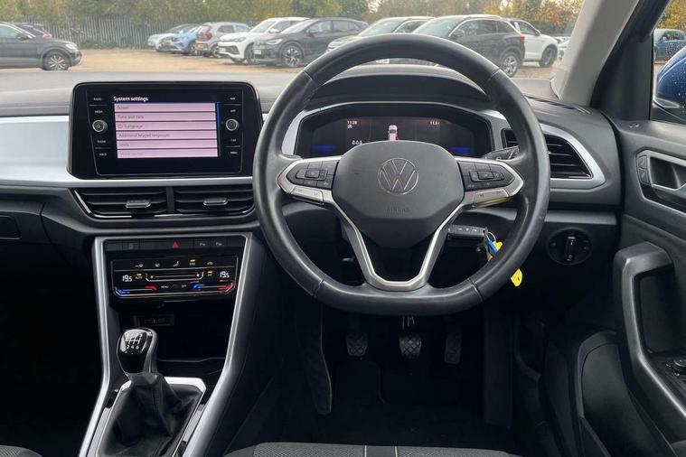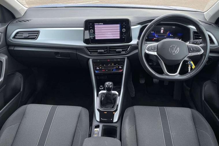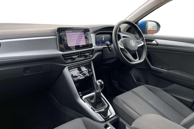 Bluetooth mobile phone interface, Driver alert system with fatigue detection, Driver tips and journey analysis, Emergency call service, Lane keeping system Lane Assist, Modified key software - reduce switch off time for key status change to Long no motion, Online services, Park assist including front and rear parking sensors, Power assisted speed sensitive steering, Service interval indicator, Tailgate/trunk lid release from outside, Think blue trainer driver tips and journey analysis, Warning sound and light for front seatbelts unfastened, Wireless app connect, Battery regeneration during braking, Front shock absorption, Rear shock absorption chassis with increased ride height, Start/stop function with battery regeneration, DAB Digital radio, Diversity antenna for FM reception, Front and rear 6 speakers, Music playback - MP3, WMA and AAC files, Premium USB cable in choice of either Apple or Android smartphone compatibility, SD card slot, Simultaneous pairing of 2 compatible mobile devices, Title and cover art display, We Connect and We Connect Plus functionality, 3rd brake light, Auto dimming interior rear view mirror, Automatic hazard lights activation under emergency braking, Automatic headlight control with LED separate daytime running lights with coming/leaving home function, Black roof rails, Body coloured bumpers and radiator grille with chrome trim and front fog lamps with chrome bezel, Body coloured exterior mirror housings and door handles, Extended roof spoiler, Exterior mirrors aspherical on driver side, convex on front passenger side, External USB type C socket and charging sockets, Front windscreen wiper with intermittent wipe and 4 position delay, Heated rear window, LED Headlights, LED rear combination lamps, LED rear number plate lights, LED tail lamp rear comination lamps, Power windows with comfort operation and circuit breaker, Rain sensor, Rear exhaust tailpipe, Rear fog light on one side and reversing lights on both sides, Rear side wing doors, Rear wash/wipe with intermittent wipe setting, Remote electrically foldable door mirrors, puddle lights and reverse activated passenger's door mirror, 12V power socket in centre console, 3 rear head restraints, 3 seat bench in 2nd row, 4 load lashing points in luggage compartment, Air care climatronic air conditoning system with active combination filter and 2-zone temperature control, Ambient lighting with mirror logo projection, Cloth upholstery, Door and side trim panel in cloth, Drawer under drivers seat, Driver/front passenger seat height adjustment, Front centre armrest, Front comfort sports seats, Front cupholders x 2, Front reading light, Instrument lighting, white adjustable panel illumination, Interior light delay, Isofix child seat preparation, Leather gearshift handle, Load-through provision with cup holder when folded down ('Unsplit rear seat bench, split folding backrest, with centre armrest), Luggage compartment lighting, Lumbar support for driver's and front passengers seat, Non-folding front passenger seat backrest, Single front passenger seat, Storage compartment in left and right luggage area, Storage compartment in rear doors, Storage compartments in driver and front passenger doors, Sunvisors with illuminated vanity mirrors, Variable boot floor, height adjustable and removable, Driver assistance pack without proactive passenger protection - T-Roc, 3 point height adj front seatbelts + pretensioners, 3 point seatbelts in outer rear with ECE label, ABS, Child locks on rear doors, Driver and front passenger airbag with front passenger airbag deactivation, Driver and front passenger safety-optimised head restraints, Drivers seatbelt reminder, Electronic parking brake, Electronic Stability Control (ESC) inc EDL (Electronic Differential Lock) and ASR (Traction Control), Front and rear passengers curtain airbag system including front side airbags, Front assist with city emergency braking and pedestrian monitoring, Front disc brakes, Front seat side impact airbags, Hill start assist, Predictive pedestrian protection, Rear disc brakes, Single tone horn, Tyre pressure loss indicator, Volkswagen roadside assistance, Alarm with interior protection, Anti-theft alarm system with interior monitoring, backup horn, and towing protection, Remote central locking with SAFELOCK, radio remote control with 2 remote control folding keys, Pewter matt decorative inserts for intrument panel, centre console and door panels at the front, Trims for alloy wheels,