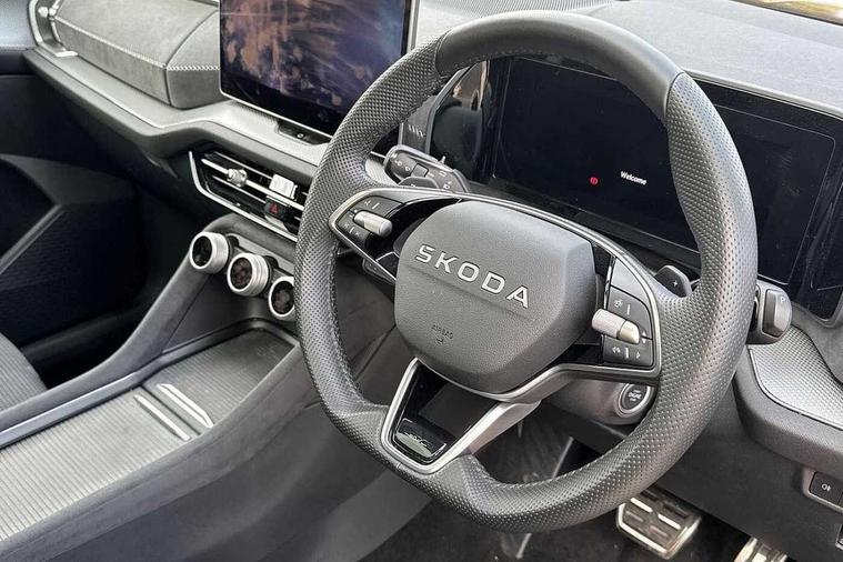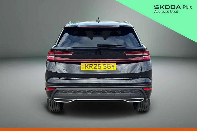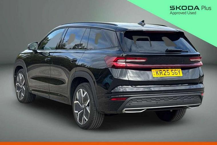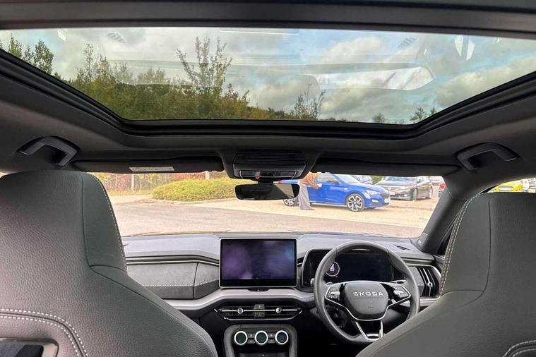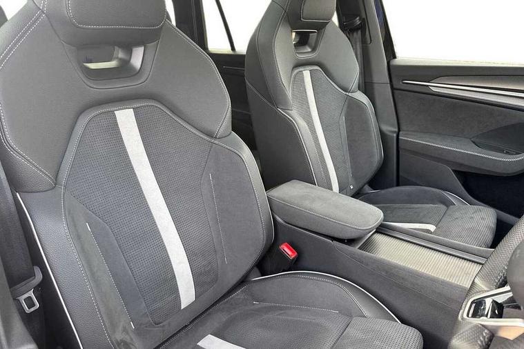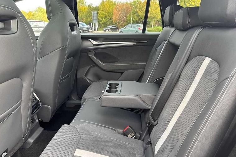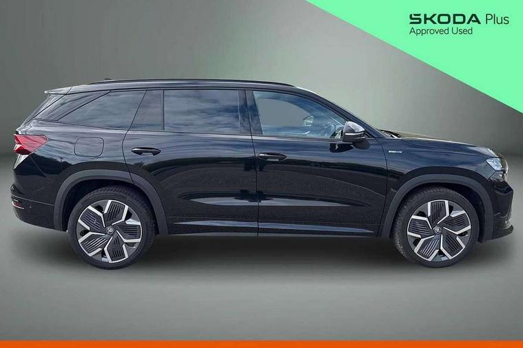 13" satellite navigation touchscreen display, Blind spot detection with door exit warning, Bluetooth system, ChatGPT functionality, Driver alert - Fatigue and drowsiness monitor, Dry display cleaner, Emergency call, Front and rear parking sensors, Front cross traffic assist, Lane assist, PAS, Rear traffic assist, Tailgate unlocking from outside, Traffic sign recognition, USB C Port x 2 in front centre console, Virtual Cockpit - 10.25" digital display, Voice control system, Wireless charging for two smartphones (15W) with cooling function, Wireless SmartLink for Apple CarPlay and Android Auto, Stop/start function, 2x USB-C in the rear, DAB Digital radio, Aero front windscreen wipers with intermittent function, Auto dimming rear view mirror, AWL (all weather lighting) and all weather light with cornering function, Black diffuser and decorative tailpipe with a unique dark chrome finish, Black roof rails, Black sports styling including front grille and window surrounds, Black wheel arch surrounds, Body colour door handles, Cornering light and poor weather light, Electric folding /adjustable/separted heated/folding door mirrors, auto dimming with boarding sports and memory function, Electric front and rear windows, Exterior black decorative trims, Front and rear sports bumpers including lower rear chrome strip, Gloss black door mirrors, Gloss black window frame and D pillar, Heat insulating glass in windshield, Heated rear window, Ice scraper in fuel tank cap, LED daytime running lights, LED third brake light in rear spoiler, Light assistant with automatic headlight control and coming home feature, Logo projection in door mirrors, Privacy glass, Rear roof spoiler, Rear side wing doors, Rear window wiper, Red decorative strip between rear LED lights, Safety reflectors on front and rear doors, Sportline badge on front fenders, Tailgate lettering in Black, Unique dark chrome design logo on alloy wheels, Window control switches with black trim, Windscreen wipers with rain sensor, Without engine designation, 1.5l bottle holder points in all door, 1x centre rear reading light, 2 seat bench in 3rd row, 3 configurable smart dials with 32mm coloured display, 3 seat bench in 2nd row, 4 foldable roof handles with rear coat hooks, Aluminium pedals, Ambient interior lighting - Dashboard, front-door stowage compartments, front and rear door panels and footwell lighting, Automatic gear selector on steering column, Chrome interior door handles, Driver/front passenger reading lights, Fabric headlining, Fixed bench 40:60:40 split folding backrests, Front and rear floor mats, Front centre armrest with jumbo box storage compartment, cup holder and 12V socket, Front sport seats, Height adjustable front headrests, Interior black decorative trims, Isofix child seat fittings in outer middle row rear seats and front passenger with top tether, Manually adjustable steering column, Pollen filter, Rear centre armrest with cupholders, Rear seat boot backrest release, Single front passenger seat, Skoda lettering on steering wheel, Storage pocket including mobile phone pockets on the backs of the front seats, Sunvisors with illuminated vanity mirrors, Three rear height adjustable headrests, Ticket holder on A Pillar, Tri zone climate control, Umbrella in door panel x1 made from sustainable materials, Upper and lower glovebox with card holder and coin compartment, USB C port by rear view mirror for charging only (15W), Acoustic package - Kodiaq, Performance package - Kodiaq, Sportline design selection pack - Kodiaq, Auto door release and activation of warning lights in the event of an accident, Driver and front passenger airbag with knee airbag and front passenger airbag deactivation, Electric child locks, Electronic parking brake, ESC (incl. ABS+EMD+MSR+ASR+EDL+HBA+DSR+RBS+ESBS+MCB+TSA+XDS), Front assist with braking reaction to vehicles, pedestrians and cyclists, Front disc brakes, Fuel cut off safety device, Height adjustable front 3 point seatbelts + pretensioners, Hill hold assist, Junction assist with automatic emergency braking, Rear disc brakes, Safety vest holder in door, Seat belt reminder for all seats, Three point rear seat belts, Two tone horn, Tyre pressure monitor, Alarm with interior monitoring and tilt sensor with safe function, Anti-theft wheel bolts, Immobiliser, Remote central locking with 2 keys, 20" Rila anthacite polished alloy wheel with black matte aero covers,