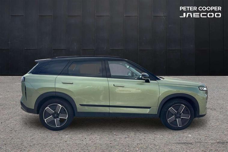 10.25" LCD instrument cluster, 13.2" portrait central LCD display, 3 driving modes Normal, Eco, Sport, 540 degree panoramic view camera with transparent view, Adaptive cruise control, Blind spot detection, Bluetooth handsfree system, Corner speed control assist, DAI Forward Departure System, Driver monitoring system, E-call safety system, Electric power steering, Emergency lane keep assist, Front and rear parking sensors, Front collision warning, ICA - integrated cruise assist, Integrated satellite navigation - Live traffic data with wifi hotspot, Intelligent active speed limit, Intelligent elude system, Intelligent speed assist, Lane control assist, Lane departure prevention, Lane departure warning, Multiple collision defence system, Power tailgate, Rear crossing traffic braking, Rear crossing traffic warning, Remote engine start, Remote HVAC start, Speed limiter, Traffic jam avoidance assistant, Traffic sign recognition, Wireless Apple CarPlay/Android Auto, Wireless mobile phone charging - 50w capacity, cooled, Independent rear suspension, 2 x Front USB, 1 x Type A, 1 x Type C (fast charging), 2 x Rear USB, 1 x Type A, 1 x Type C (fast charging), 6 speaker audio system, DAB Digital radio, Auto dimming rear view mirror, Auto full beam LED headlights, Auto wipers, Automatic headlights, Body colour door handles, Electrically adjustable, heated and folding door mirrors, Follow me home headlight function, Front fog lights, Full length panoramic sunroof with opening front section, Heated rear window, High level LED brake light, Integrated antenna, LED daytime running lights, LED rear lights, One touch window function for all doors, Privacy glass, Rear side wing doors, Roof rails, Silent glass - windscreen and front side windows, Single layer roof spoiler, Tinted rear windows, Windows opening via remote, 12V power outlet - Boot, 12v power outlet - front, 12V socket in luggage compartment, 3 seat bench in 2nd row, 4 way adjustable steering column, 4 way electric adjustable passenger seat, 6 way power adjustable driver seat, 60/40 split folding rear seat backrest, Driver and passenger sun visors with vanity mirror, Dual zone air conditioning with second row outlet, Front armrest with interal storage and upper storage tray, Front deluxe seats, Front headrests, Front reading light, Heated front seats, Luggage compartment light, Multi function steering wheel, Rear bench armrest with integrated cupholder, Rear headrests, Selectable multi colour ambient lighting, Single front passenger seat, Synthetic leather steering wheel, Synthetic leather upholstery, 2 x isofix, 3 point seatbelts on all seats, ABS/EBD, Autonomous emergency braking, BAS (Brake Assist System), Child locks, Door opening warning, Downhill assist, Dual front airbags, Electronic brake force distribution, Electronic parking brake with auto hold, Electronic Stability Programme, Front and rear side airbags, Front centre airbag, Knee airbags, Passenger airbag manual switch off, Power limited seatbelts with pre-tensioners, height adjustable with CLT, Tyre pressure monitoring system, Uphill assist, Anti theft alarm, Automatic door locking, Engine immobiliser, Keyless start button, PEPS (passive entry and passive start) with walkaway locking, Dark colour interior, 19" Alloy wheels, Tyre repair foam,