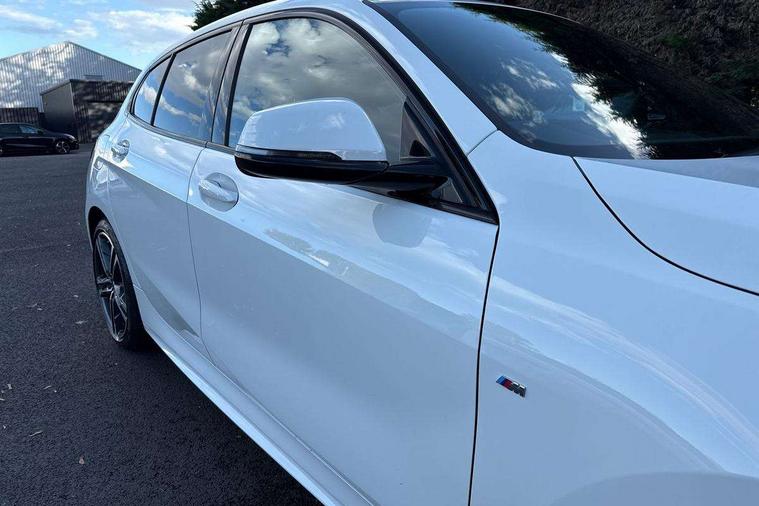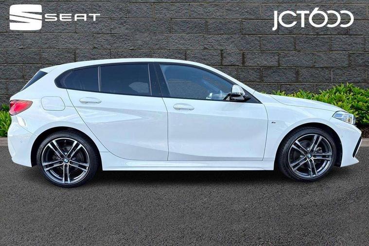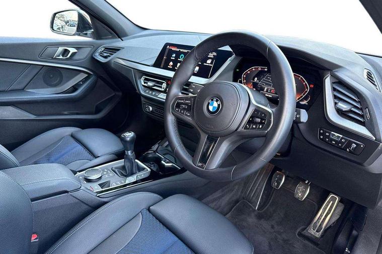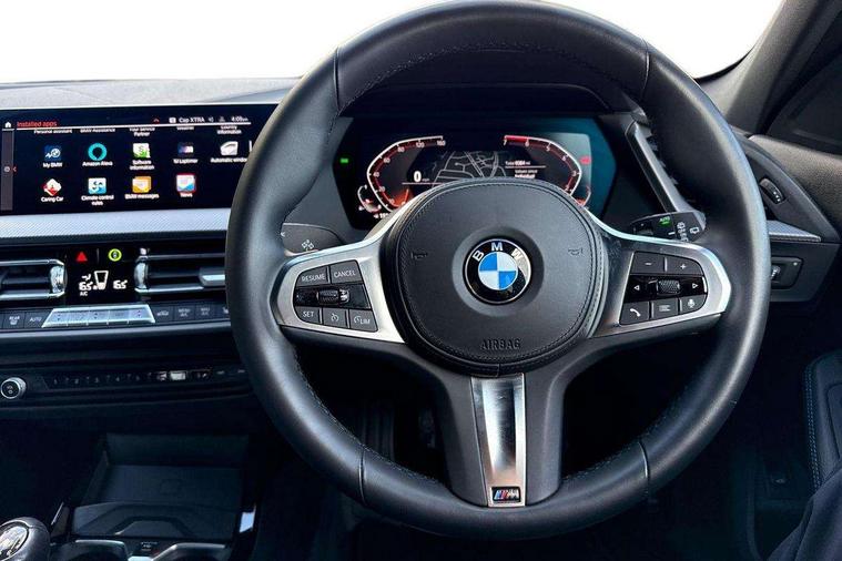 Active guard plus, Attentiveness assist, BMW ConnectedDrive online services, BMW Teleservices, Check Control warning system for monitoring of lights and door/luggage compartment open warning, Cruise control with speed limiter, Eco pro mode, Front axle single joint with specific axle kinematics to minimise drive influences on steering + provide increased rigidity agile driving behaviour, Integrated owners handbook, Lane departure warning system, Oil sensor for level and grade, On board computer, Optimum shift indicator, Personal Profile, Pull away assistant, Rigidly mounted rear subframe - Multi link construction with separate spring / damper configuration and excellent driving characteristics, Speed limit Info including no-overtaking indicator, Aluminium lightweight construction, Anti roll bar front and rear, Balancer shaft, Double VANOS twin scroll turbocharging system, Drive Performance Control, Electronic differential lock, High precision injection, M sport suspension, Petrol Particulate Filter, Twin tube gas filled shock absorbers with degressive characteristic curve, VALVETRONIC engine management, DAB Digital radio, Auto dimming rear view mirror, Automatic headlight beam throw control, Automatic windscreen wipers and automatic headlight, Body colour door handles, Body colour mirror caps, Body colour roof trims, Chrome 'M' logo side designation, Chrome exhaust twin tailpipes round 90mm in left, Chrome kidney grille frame with Satin Aluminium struts, Direction indicator side lights in exterior mirrors, Electrically adjustable exterior mirror with mirror adjustment switch on drivers armrest and aspheric on driver side, convex on passenger side, Fading support, Folding side mirrors with auto dimming/folding wing mirrors with auto dimming, Follow me home headlights, Front and rear bumper system with replaceable deformation elements, Front and rear electric windows with open and close fingertip control, anti trap facility and comfort closing, Front door sill finishers in black plastic with M designation in metallic look, Green tinted heat protection glazing, High gloss shadowline window frame, Recess cover mirror frames and B/C pillar embelisher trim, High level third brake light, Integrated front windscreen with washer jets, LED daytime running lights, LED eyebrow turn indicators, LED front fog lights, Lightweight engineering, Matt black air guide grilles, Matt black wheel arch trim, Model designation on electric bootlid, Nearside reverse light in rear light cluster, Preparation for high beam assistant, Rear fog lights, Rear side wing doors, Rear window wiper, Shark fin antenna, Trailer stabilisation logic, Visible VIN plate, Welcome lighting, 12V power socket in front centre console with blanking plug, 3 rear seat head restraints, 3 seat bench in 2nd row, 3 spoke sports leather steering wheel in black leather with black stitching and decorative finisher in pearl chrome, specific M badge + leather knob, Anthracite headlining, Black boot net with lashing eyes, Cargo function on 2nd seat row, Child seat ISOFIX attachment for two outer rear seats and front passenger seat with anchorage points, Conditioned based service, Driver and front passenger backrest net on rear, Driver and front passenger seat heating, Driver side folding compartment in instrument panel, Folding rear clothes hook, Four grab handles integrated in roof lining, Front and rear door pockets with bottle holders, Front and rear side armrest integrated into door trim, Front armrest, Front sports seats, Gearshift lever with M designation, Glove compartment, Height adjustable front head restraints, Luggage compartment for bag hooks on left and right, foldable luggage compartment liner and four lashing eyelets, Manual adjust steering wheel, Multi-function controls for steering wheel, Single front passenger seat, Storage compartment in centre console, Storage compartment in luggage compartment, Stowage of the parcel shelf in luggage compartment trim, Sun visors with vanity mirrors and insert tab, Two front centre console cupholders, Two zone automatic air conditioning, Type C two USB ports in rear centre console, Velour floor mats, Additional interior lighting pack - 1 Series, BMW live cockpit professional pack- 1 Series, Connected pack professional - 1 Series, Interior lights pack - 1 Series, M Sport exterior styling aerodynamics pack - 1 Series, 2 tone horn, 3 point seatbelts on all seats, front pyrotechnic belt tensioners, stopper and belt force limiters, rear coded belt buckles, Airbags - Front driver/passenger, front and rear curtain head protection, front side, manual deactivation of front passenger airbag, Anti lock braking system (ABS) with brake assist, BMW emergency call, Brake drying, Braking readiness, Child proof locking system in rear door, City braking function, Comfort modes, Cornering brake control, Crash sensor activating of airbags, Unlocking doors, hazard warning lights, interior light, safety battery terminal, Driver and front passenger seat belt security check, Dynamic stability control + (DSC+), Dynamic Traction Control - DTC, Electrically operated hand brake, Front and rear disc brakes, Seatbelt warning, Side impact protection, Tyre pressure monitoring system, Warning triangle and first aid kit, Central locking switch for all doors, fuel filler cap and luggage compartment, Deadlocking function system to all doors, Drive away locking system on all doors and luggage compartment with de-activated in iDrive settings, Locking wheel bolts, Remote control with integrated key with High-gloss Black inlay and M designation and 1 button for open/ close lock, window, open luggage compartment, Start/stop button illuminated in centre console with keyless engine start and auto start stop deactivation button, Thatcham Cat.1 alarm and immobiliser, Wheel slip limitation close to the actuator (ARB), Contrast stitching on instrument panel, 18" Burnished M double spoke bi-colour alloy wheels finished in orbit grey - style 819M
