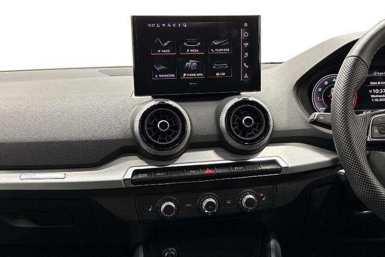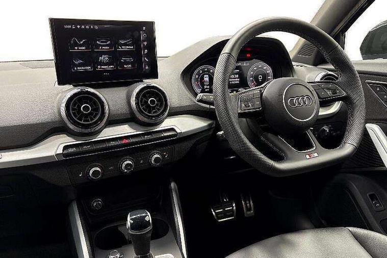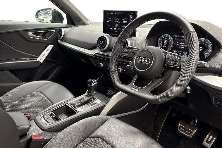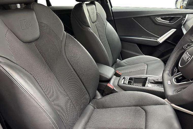 3D map display, Audi connect navigation and infotainment includes innovative services, Audi connect remote and control connects your vehicle to your smartphone, Audi drive select: S tronic - power steering assistance + engine + gearshift (modes: comfort, auto, dynamic, efficiency, individual), Audi smartphone interface - Apple carplay/Android Auto, USB connect, 2xSDXC card readers, voice control for navi, telephone, music and 3rd party apps, Audi virtual cockpit, Automatic start/stop system with recuperation, Bluetooth interface includes bluetooth audio streaming, Camera based traffic sign recognition, Cruise control, Distraction and Fatigue warning, E-call, Jukebox hard drive memory for music (10GB), Lane departure warning, MMI navigation plus with 8.8" touchscreen, Natural voice recognition, Power operated tailgate, Progressive steering, Rear parking sensors, Sport suspension, 6 passive loudspeakers, DAB Digital radio, USB type C port, Audi beam, Auto dimming rear view mirror, Black window trims, Bumper in full body colour paint finish, Electrically adjustable, folding, auto dimming and heated door mirrors with integrated LED side indicators, Front windscreen with grey tinted sunband, LED daytime running lights, LED headlights with dipped beam, high beam, position lights, indicators, LED rear lights, LED third brake light, Privacy glass - dark tinted rear and rear side windows from B-pillar backwards, Rear side wing doors, Rear wiper, Variable front intermittent wipers, Wheel arch trims in manhattan grey, 12v socket in front, 3 seat bench in 2nd row, 3 spoke flat bottomed multi-function leather sport steering wheel with gear shift paddles, 4-way electric lumbar support for front seats including manual seat height adjustment for both front seats, 60/40 split folding rear seat bench, Black carpets, Black cloth headlining, Front and rear head restraints, Front centre armrest, Front sport seats, Front/rear floor mats, Height/reach adjust steering wheel, Illuminated door sill trims with S logo, ISOFIX child seat mounting in front passenger and rear outer seats, Manual air conditioning, Single front passenger seat, Stainless steel pedals, Black styling pack - Q2, 3x3 point rear seatbelts, 6 airbags - Front, curtain and front side airbags, Electromechanical parking brake, Electronic stabilisation control including ABS, ASR and EDL, Front passenger airbag deactivation, Hill hold assist, Pre-sense front with pedestrian recognition, Seatbelt monitoring, Tyre pressure warning light with visual and acoustic warning, Warning triangle and first aid kit, Anti theft alarm, Anti theft wheel bolts, Electronically operated child locks, Remote central door locking, Aluminium interior element, Black dashboard, Gloss black centre console, Matt brushed aluminium trim inlays, Tool kit,