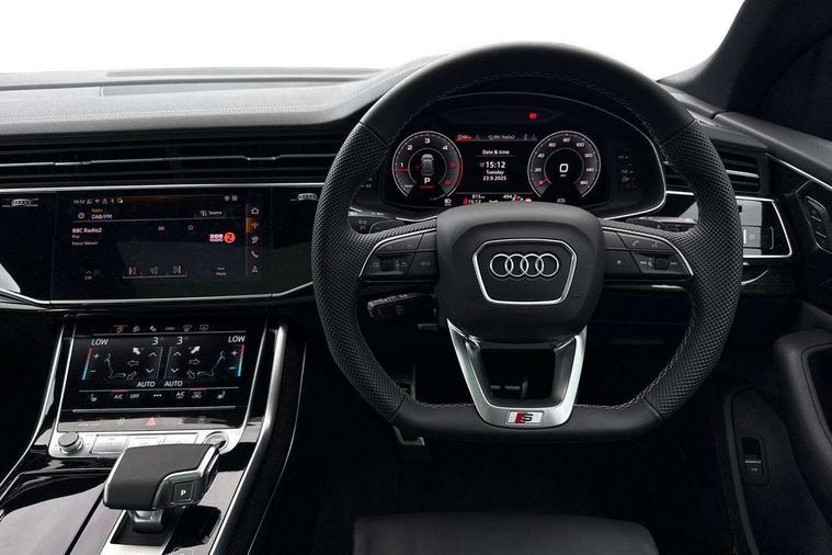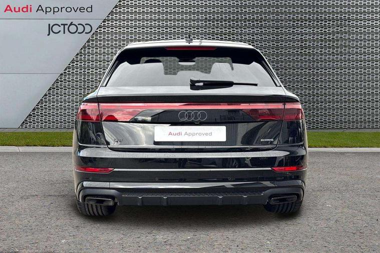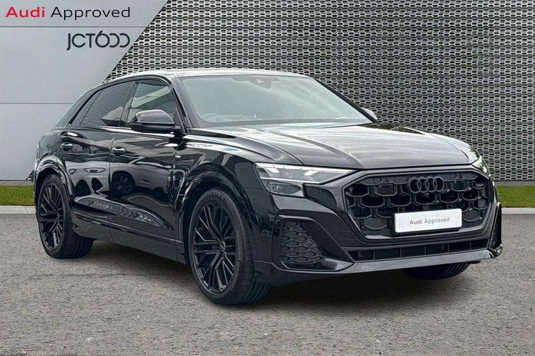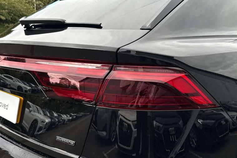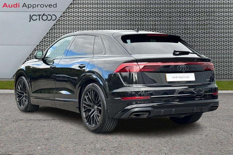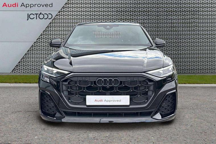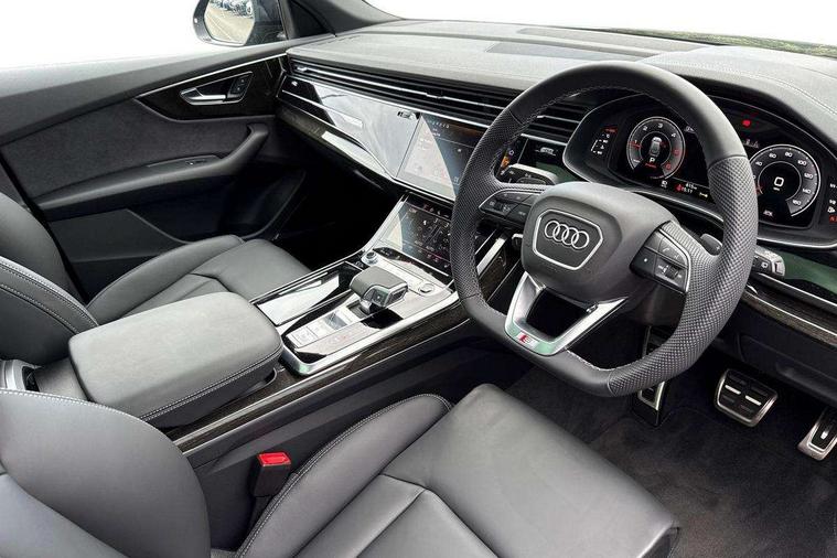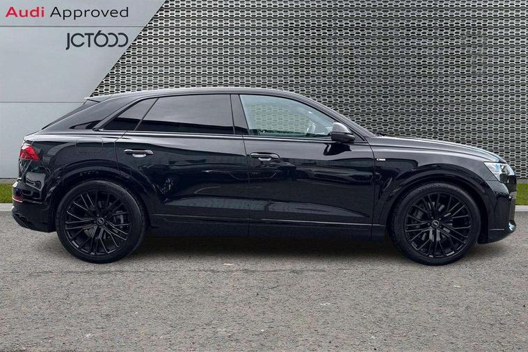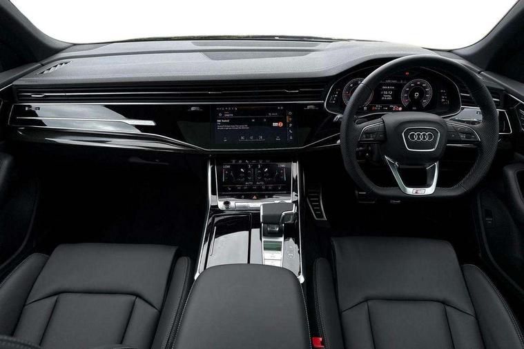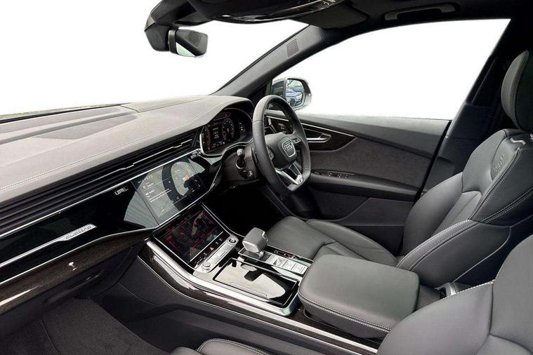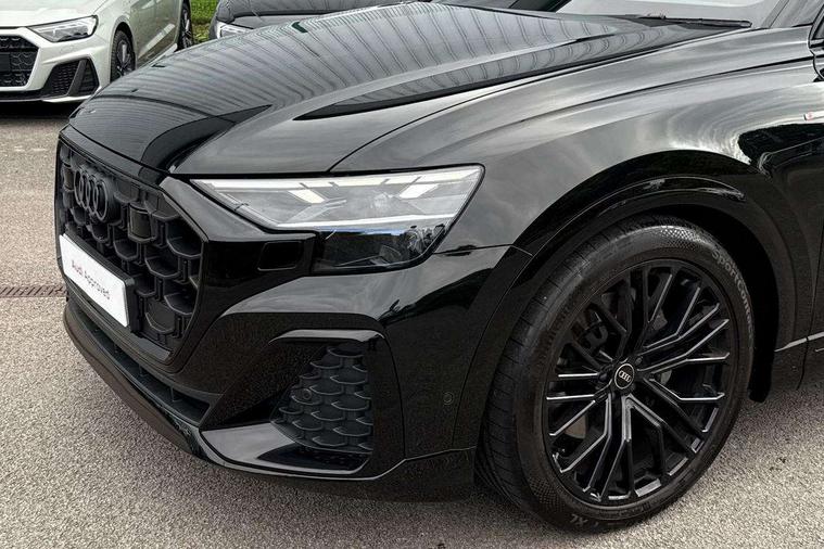 10.1" and 8.6" Dual colour touchscreens, Audi application store, Audi connect safety and service (e-call), Audi connect with Amazon Alexa Integration, Audi drive select, Audi parking system plus includes 360 degree display with front and rear sensors, Audi phone box light with wireless charging, Audi virtual cockpit - 12.3" high resolution LCD display with fully customisable instrument cluster, Automatic start/stop system, Bluetooth, Electro-mechanical PAS, Low washer fluid indicator, MMI navigation plus with MMI touch, Natural voice recognition, On board computer, Operating buttons in black, glass look with haptic feedback, Power operated tailgate, Rear view camera, Service interval indicator, Smartphone interface includes wireless Apple carplay/Android Auto, 48V Mild hybrid technology, Adaptive sport air suspension, Diesel particulate filter, Quattro all wheel drive with self locking centre differential, Audi music interface with 2 USB ports with charge and data functions, Audi sound system with 6 channel amplifier, 180 watt amplifying capacity and 10 loudspeakers including subwoofer, Aux-in socket, DAB Digital radio, 3rd brake light, Audi beam, Auto dimming frameless rear view mirror, Black exhaust tailpipes, Black single frame mask, Coming/leaving home lighting function, Electric front+rear windows, Electrically folding auto dimming/adjustable/heated door mirrors with memory function, LED side indicators and kerb view function for passenger side, Headlight washers, Heat insulating glass in windshield, LED rear light plus, LED signature daytime running lights, Loading edge protection in stainless steel, Matrix LED headlights with dynamic front and rear indicators, Platinum grey front spoiler lip and diffuser insert with honeycomb grille in black, Privacy glass - dark tinted rear and rear side windows from B-pillar backwards, Rain and light sensors, Rear side wing doors, Rear wiper, Singleframe grille surround in matte platinum grey, 2 zone automatic climate control, 3 bench rear seats in 2nd row, 4-way lumbar support for front seats, 40:20:40 split folding rear bench seat, Black cloth headlining, Comfort front centre armrest, Driver seat memory function, Electrically adjustable front seats, Front head restraints, Front/rear floor mats, Heated front seats, ISOFIX child seat mounting for front passenger seat and 2 outer rear seats with top tether child seat mounting for all 3 rear seats, LED interior ambient lighting, Luggage compartment sill protection in stainless steel, Rear centre armrest with 2 cupholders, Rear headrests, Seat cushion displaceable by 100mm in the ratio 60:40, Single front passenger seat, Stainless steel pedals, Sunvisors with illuminated vanity mirrors, Black styling pack plus - Q8, 3 point seatbelts on all seats, Audi pre sense front, Convenience key with safelock, Driver and front passenger, front side and curtain airbags, Electromechanical parking brake, Electronic Stability Control (ESC) including ABS, ASR and EDL, Front passenger airbag deactivation, Hill descent control, Hill hold assist, Predictive pedestrian protection, Seatbelt monitoring, Traction control, Tyre pressure loss indicator, Warning triangle and first aid kit, Anti theft alarm with tow away protection, Anti-theft wheel bolts and wheel loosening detection, Electronically operated child lock, Immobiliser, Keyless go with remote central locking, Polished oak trim with grey finish inlay, Tool kit, Tyre repair kit,