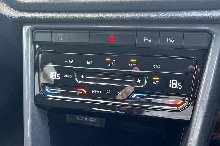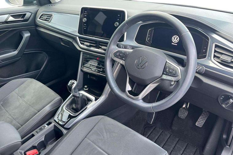 10.25" Digital cockpit pro, Bluetooth mobile phone interface, Driver alert system with fatigue detection, Driver tips and journey analysis, Emergency call service, Lane keeping system Lane Assist, Modified key software - reduce switch off time for key status change to Long no motion, Online services, Park assist including front and rear parking sensors, Service interval indicator, Tailgate/trunk lid release from outside, Think blue trainer driver tips and journey analysis, Warning sound and light for front seatbelts unfastened, Wireless app connect, Battery regeneration during braking, Start/stop function with battery regeneration, Diversity antenna for FM reception, Music playback - MP3, WMA and AAC files, Premium USB cable in choice of either Apple or Android smartphone compatibility, SD card slot, Simultaneous pairing of 2 compatible mobile devices, Title and cover art display, We Connect and We Connect Plus functionality, 3rd brake light, Auto dimming interior rear view mirror, Automatic hazard lights activation under emergency braking, Automatic headlight control with LED separate daytime running lights with coming/leaving home function, Body colour sports bumpers with silver metallic underbody fascia, Dynamic headlight range control with self adjusting whilst driving, Extended roof spoiler, Exterior mirrors aspherical on driver side, convex on front passenger side, External USB type C socket and charging sockets, Front windscreen wiper with intermittent wipe and 4 position delay, Heated rear window, LED rear combination lamps, LED rear number plate lights, LED tail lamp rear comination lamps, Light mode for poor weather, rain, fog or snow, Power windows with comfort operation and circuit breaker, Rain sensor, Rear exhaust tailpipe, Rear fog light on one side and reversing lights on both sides, Rear side wing doors, Rear wash/wipe with intermittent wipe setting, Remote electrically foldable door mirrors, puddle lights and reverse activated passenger's door mirror, 12V power socket in centre console, 3 rear head restraints, 3 seat bench in 2nd row, 4 load lashing points in luggage compartment, Air care climatronic air conditoning system with active combination filter and 2-zone temperature control, Chrome plated radiator grille inserts, air vent surrounds and light switch surrounds, Door and side trim panel with leatherette insert, Drawer under drivers seat, Front + rear carpet mats, Front centre armrest, Front comfort sports seats, Front cupholders x 2, Front footwell illumination, Instrument lighting, white adjustable panel illumination, Interior ambient lighting and surround lighting, Interior light delay, Isofix child seat preparation, Leather gearshift handle, LED interior light with switch off delay/dimmer and 2 front/rear LED reading lights, Load-through provision with cup holder when folded down ('Unsplit rear seat bench, split folding backrest, with centre armrest), Luggage compartment lighting, Non-folding front passenger seat backrest, Single front passenger seat, Storage compartment in left and right luggage area, Storage compartment in rear doors, Storage compartments in driver and front passenger doors, Sunvisors with illuminated vanity mirrors, Variable boot floor, height adjustable and removable, Driver assistance pack without proactive passenger protection - T-Roc, 3 point height adj front seatbelts + pretensioners, 3 point seatbelts in outer rear with ECE label, ABS, Child locks on rear doors, Driver and front passenger airbag with front passenger airbag deactivation, Driver and front passenger safety-optimised head restraints, Drivers seatbelt reminder, Electronic parking brake, Electronic Stability Control (ESC) inc EDL (Electronic Differential Lock) and ASR (Traction Control), Front and rear passengers curtain airbag system including front side airbags, Front assist with city emergency braking and pedestrian monitoring, Front seat side impact airbags, Predictive pedestrian protection, Rear disc brakes, Single tone horn, Tyre pressure loss indicator, Volkswagen roadside assistance, Anti-theft alarm system with interior monitoring, backup horn, and towing protection, Remote central locking with SAFELOCK, radio remote control with 2 remote control folding keys, Trims for alloy wheels,
