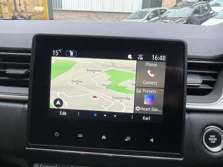 7" TFT Driver information display, Cruise control + speed limiter, EasyLink 7" touchscreen with navigation, google search and traffic information, Eco mode, Front and rear parking distance sensors, Gear change indicator, Lane departure warning system, Lane keep assist, Multisense with 3 driving modes + 8 ambient lighting colours, Rear view camera, Renault automatic emergency assist, Smartphone integration compatible with Apple CarPlay and Android Auto, Traffic sign recognition with over speed prevention, Trip computer, Variable assistance power steering, DAB Radio with Bluetooth and USB, 2 reverse gear LED lamps and 1 rear LED fog lamp in the bumper, Auto dimming rear view mirror, Automatic front wipers with rain sensors, Automatic headlights, Automatic high/low beam, Black side door protection with chrome effect, Body colour door handles, Body coloured bumpers, Body coloured door mirrors, C Shaped LED front and rear lighting signatures with 3D effect on the rear lights, Chrome around front air deflectors, on front wing deco element and window lining, Day time running light, Drivers one touch window with anti-pinch feature, Extra tinted glass in rear windows and tailgate, Front and rear electric windows, Front grille with chrome upper trim, Full LED headlights with LED rear lights, Grey front and rear skid plate, LED high level brake lights, LED rear fog lights, LED turn indicators on door mirrors, Longitudinal roof bars, Rear side wing doors, Rear wiper, Shark fin antenna, 12V Accessory socket, 60/40 split and fixed base rear seat bench, Automatic climate control with one touch demist function and air quality regulator, Central rear LED rooflight with 3 reading lights, Front head restraints, Glovebox, Heating system with pollen filter, Height adjustable driver's seat, Height adjustable passenger seat, Height/reach adjust steering wheel, ISOFIX child seat fixing points on rear outermost seats, LED front roof lights, Middle console with armrest and storage, Modular boot floor, Rear air vents, Rear head restraints, Single front passenger seat, Sliding rear bench, Synthetic leather steering wheel, Synthetic leather/cloth upholstery, 3 rear seatbelts, ABS+EBA, AEBS - active emergency braking system, Distance warning alert, Driver and front passenger and 3 rear passengers seatbelt reminder, Driver and front passenger, side, head and curtain airbags, Driver height adjustable seat belt, Electric parking brake with auto hold function, Electronic stability control, Front dash warning indicator in case of heavy braking, Front driver and passenger side airbag deactivation, Hill start assist, Passenger airbag deactivation system, Rear door and window child locking function for rear door, Tyre pressure warning light, Anti drill door locks and locking fuel cap, Central door locking, Deadlocking system, Hands free keycard with push button and start/stop function, RAID (Renault Anti-Intruder Device) automatic door locking, Black soft touch dashboard, 18" Pasadena diamond cut alloy wheels with grey inserts,