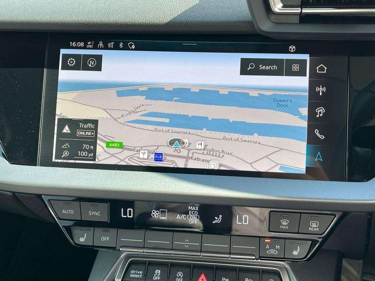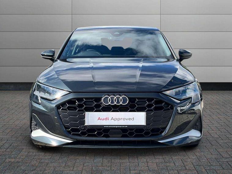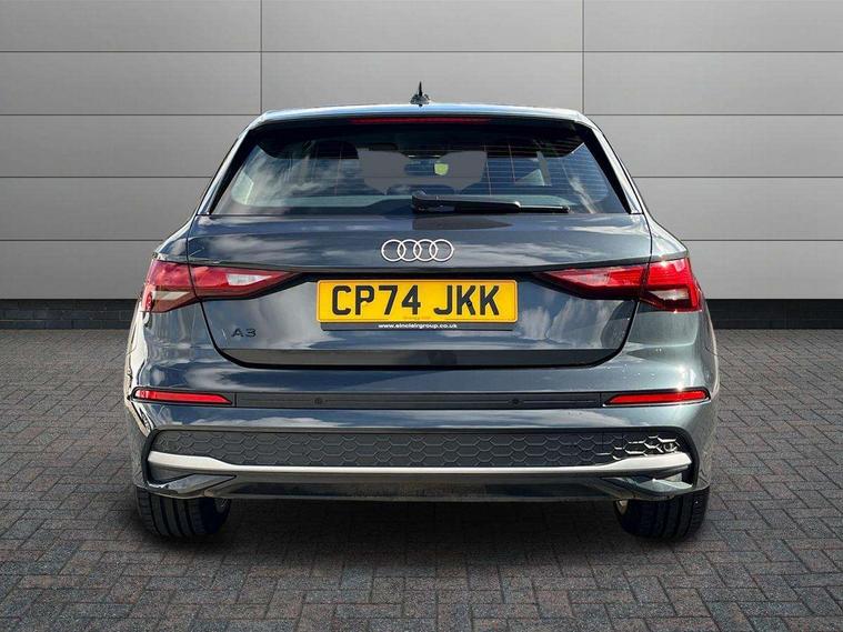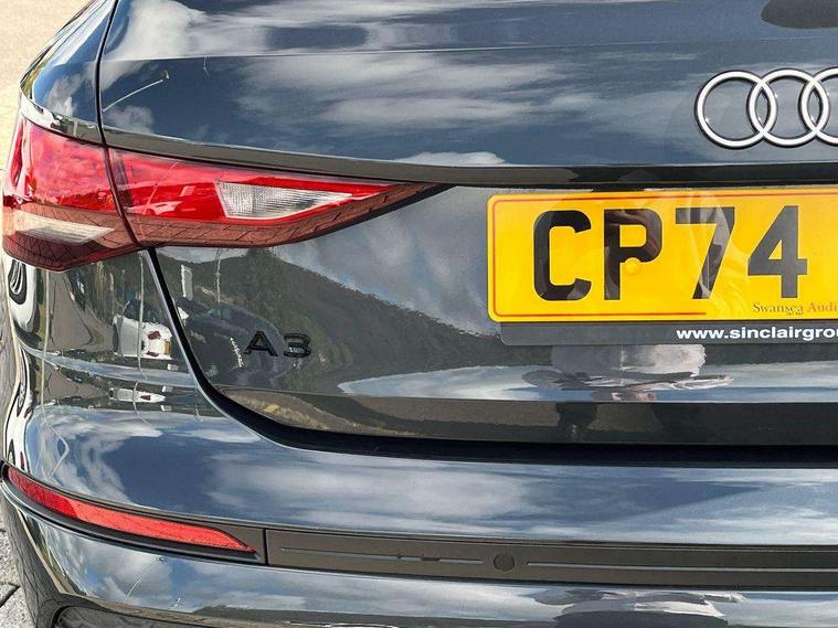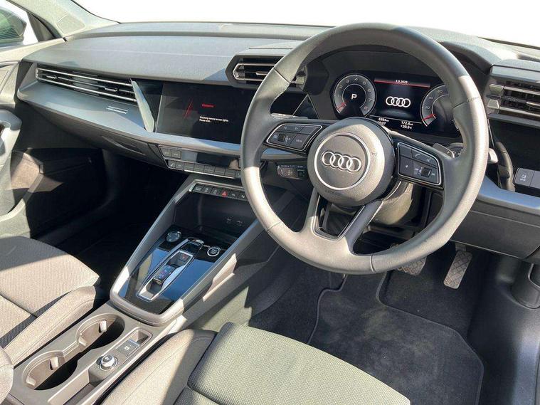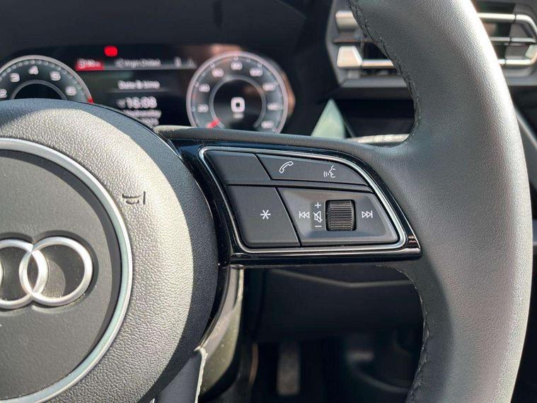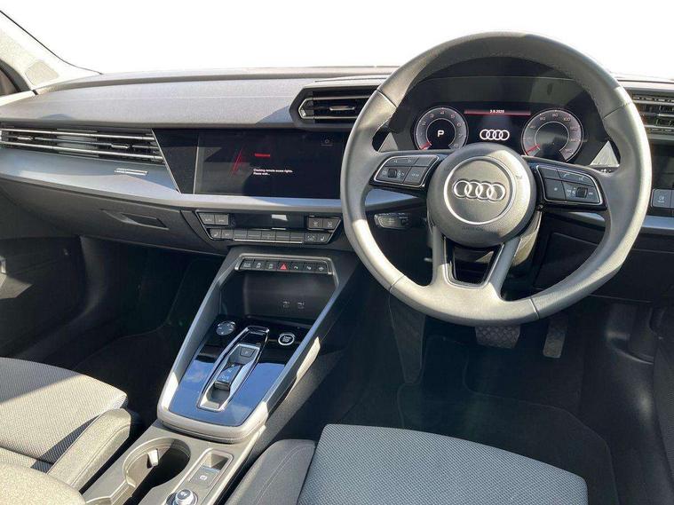 Adjustable speed limiter, Audi drive select, Audi smartphone interface with app store includes wireless Apple carplay, Android auto and Amazon alexa integration, Audi virtual cockpit plus - 12.3" full HD resolution dynamic digital instrument cluster, Automatic start/stop system with recuperation, Bluetooth interface, Camera based traffic sign recognition, Collision avoidance assistant, Cruise control, Distraction and Fatigue warning, e-Call (emergency call), Electromechanical power speed sensitive steering, Lane departure warning system, MMI Navigation Plus with high resolution 10.1" colour touch screen display, Park Assist with parking system Plus, Service indicator, Tailgate, Trip computer, Voice control system with natural language interaction, Standard suspension, Audi Phonebox light with wireless charging, Audi sound system - 10 loudspeakers including centre loudspeaker and subwoofer, DAB Digital radio, USB ports with charging function in the rear, 3rd brake light, Acoustic glass windscreen, Aluminium window trim, Auto dimming frameless rear view mirror, Body colour exterior mirrors, Body colour roof spoiler, Electrically adjustable/heated/folding/auto dimming door mirrors with integrated LED indications + kerb view function for passenger side, Exterior model badging, Front electric windows, Front radiator grill in high gloss dark chrome, Front side air inlets in grained matt black with silver frame, Heat insulating glass windscreen, LED daytime running lights, LED headlights and halogen rear lights, Light and rain sensors, Rear diffuser and grill in grained matt black with silver frame, Rear electric windows, Rear side wing doors, Rear window, rear door windows and rear side windows in clear glass, Rear wiper, 12V socket and storage compartment in front centre console, 3 seat bench in 2nd row, 3 spoke leather multifunction steering wheel with gear shift paddles, 3-zone deluxe automatic air conditioning, 4 way electrically adjustable lumbar support for driver and front passenger, 60/40 split folding rear seat bench, Front and rear headrests, Front centre armrest, Front door sill trims with aluminium inlay, Front/rear floor mats, Heated front seats, Height and reach adjustable steering wheel, Manual boot compartment lid, Manually adjustable front seats, Routine cloth upholstery with front sports seats, Seat side bolsters, Single front passenger seat, Steel grey cloth headlining, Aluminium interior elements pack - A3 Sportback, LED interior lighting pack -A3, 3x3 point rear seat belts, Driver and front passenger airbag with passenger airbag deactivation, Electronic Stabilisation Control (ESC) including ABS, ASR and EDL, First aid kit with warning triangle and 2 safety vests, Front side airbags with head airbags and interaction airbag, Hill hold assist, Pre-sense front with pedestrian and cyclist detection, Seatbelt monitoring, Tyre pressure loss indicator, Anti theft alarm, Anti-theft wheel bolts, Electronically operated child locks, Immobiliser, Remote central locking with safelock, Inlays in volcano grey fine paint finish,