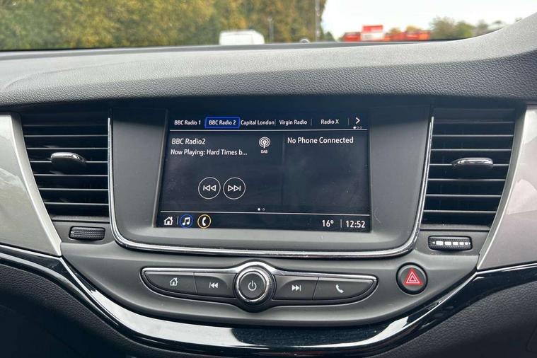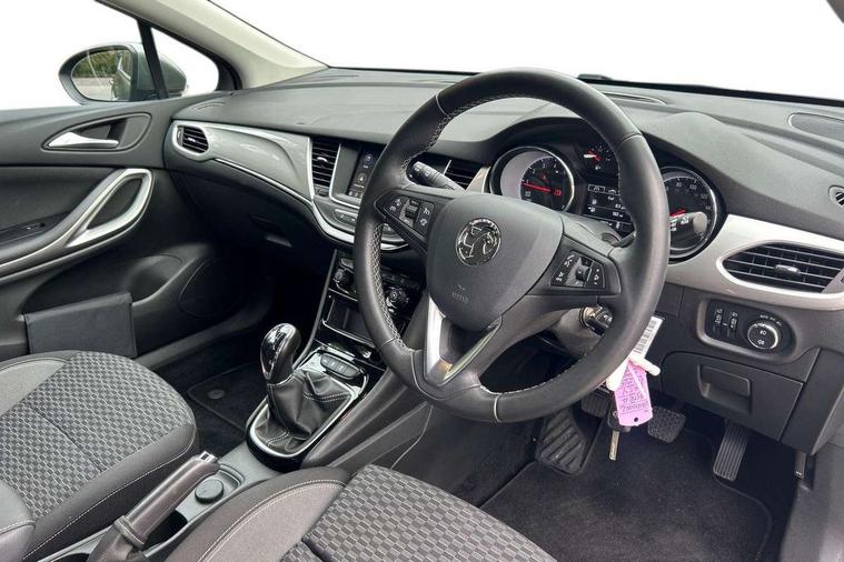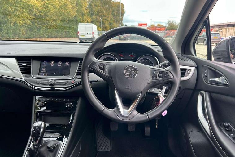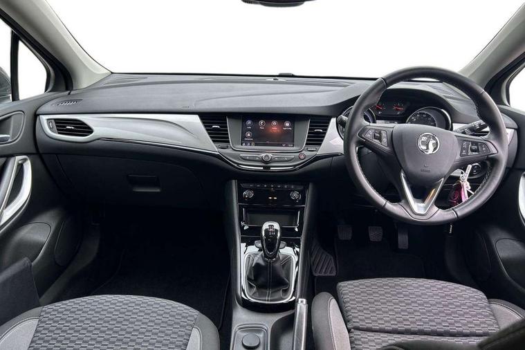 Central facia display with digital clock, outside air temperature and audio information, Cruise control with speed limiter, Driver information - Total mileage, service indicator, oil life, Electric speed sensitive power steering, Handsfree calls via steering wheel controls, Instrumentation - Speedometer, rev counter, low fuel gauge warning light + water temperature gauge warning light, shift up/down indicate light, Lights on audible warning, Multi function trip computer - Trip odometer, vehicle range, average speed and fuel economy, instantaneous fuel economy and driving time, Multimedia audio 7" colour touchscreen, AM/FM/DAB, bluetooth/USB, apple car play/android auto, 3.5" monochrome instrument cluster display, 6 speakers, Phone book access, Smartphone projection, SMS read out and reply, Vehicle microphone, Battery rundown protection, Steering wheel mounted audio controls, Adaptive brake lights, Automatic hazard warning light, Automatically dimming anti dazzle rear view mirror, Black door mirrors, Body colour rear roof spoiler, Body colour roof, Body coloured door handles, Bonnet/headlight/wiper structure, Chrome bar with black radiator grille, Chrome effect headlight, Chrome effect upper side window mouldings, Door to door illumination, Electrically operated front and rear windows with safety auto reverse and one touch up/down facility, Flexible roof mounted aerial, Follow me home lighting, Front fog lamps, Gloss black finish B pillar, Gloss black finish C pillar, Heated rear screen with timed cut off, Hidden exhaust pipe, High gloss exterior ornamentation, High level LED centre rear brake light, Intermittent rear window wash/wipe, Laminated windscreen, LED daytime running lights, LED Headlights, LED side repeat indicators, Manual folding door mirrors, Manual headlight beam levelling, Rear fog lamps, Reversing light, Solar absorbing heat front windscreen, Tinted windows, Twin electrically adjustable and heated door mirrors, Two speed windscreen wipers with variable intermittent wipe, Upper and lower bumper design, Windscreen and side window demist vents, 12V electrical accessory socket in front, 12V power outlet in centre console, 60/40 split folding rear seat, Adjustable front armrest, Ambient LED downlighter in facia/centre console, Anti submarining ramps in all seats, Assist handles, Black door panels with black atlantis cloth inserts, Central rear seat headrests, Chrome effect interior door handles, Driver's and front passenger's sunvisors, Drivers and front passengers illuminated mirrors with flip-up covers, Fade up/down courtesy light, Folding storage box on driver side lower facia, Formula cloth upholstery, Four adjustable facia vents, Four lashing eyes in load compartment, Front centre armrest with storage, Front door pockets, Front passenger vanity mirror, Front seatback storage pocket for driver and co-driver seats, Front/rear courtesy lights, Fully carpeted load area, Glovebox with lid, Illuminated load area, Interior tailgate handle, Isofix child seat mounting points on outer rear seats, Liquid palladium inserts on front door, Luggage compartment cover, Plain black fabric side bolsters and surrounds, Reach and rake adjustable steering column, Rear door pockets, Satin chrome effect bezel on steering wheel, Storage compartment in centre console, Three height adjustable rear head restraints, Twin gas assisted tailgate struts, Two drinks holder in centre console, Driver's ergonomic active seat pack with AGR certified sports syle seats - Astra Sri/Sri Nav, Driving assistance pack 1 - Astra SRi/SRi Nav/SRi VX Line Nav/Elite Nav/Ultimate Nav, Interior light pack - Astra, Sight and light pack - Astra, 3 point centre rear seat belt, 6 airbags - Driver and co-driver front, front side, head curtain roof airbags, front and rear row coverage airbags, Buckle activated smart seat belt reminder for driver only, Child locks on rear doors, Cornering brake control, Deactivation switch for front passengers front and side impact airbags, Deformation zones front and rear, Drag torque control, Electronic brake force distribution, Electronic Stability Program (ESP) including Anti lock brake system (ABS) and hill start assist, Emergency brake assist, Energy absorbing steering column, Front and outer rear seatbelt force limiters, Front seat belts with crash locking tongues for driver and co-driver, Front seatbelt unfastened audible warning and warning light, Height adjustable inertia reel front seatbelts, Outer rear seatbelt pretensioners, Pedal release system, Reinforced passenger safety cell, Rollover mitigation, Side impact protection beams, Single tone horn, Smart seat belt reminders for co-driver and 2nd row seat, sensor in co-driver seat cushion, Straight line stability control, Three inertia reel lap and diagonal rear seatbelts, Traction control, Tyre pressure monitoring system with full indication, Electronically protected audio equipment, Engine deadlock and immobiliser, Freewheeling door locks, Key left in ignition audible warning, Locking wheel nuts, One flat and one rigid key with 2 button for lock/unlock, Remote control central locking, Remote control ultrasonic security alarm system, Visible vehicle identification number, Instrument panel bar in piano black, Liquid palladium with black facia trim inserts, Silver air vent surrounds, 17" 5 twiin silver spoke design alloy wheels, Low rolling resistance tyres,