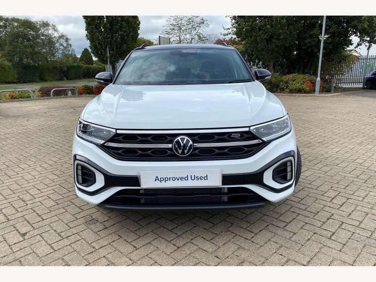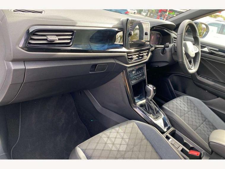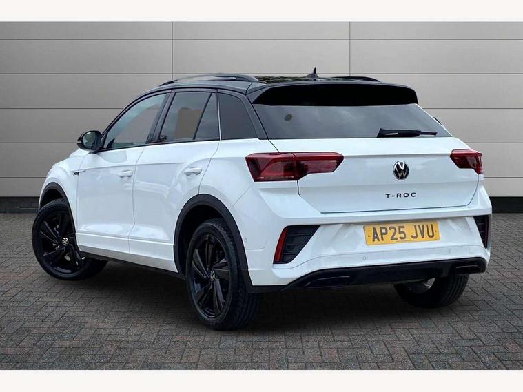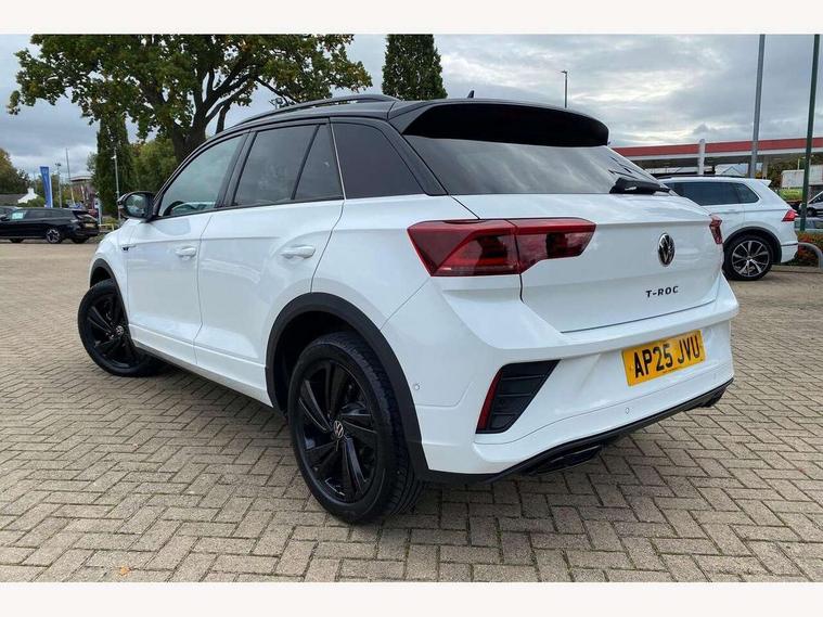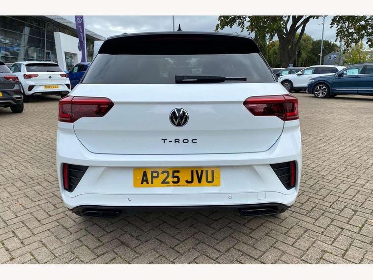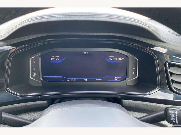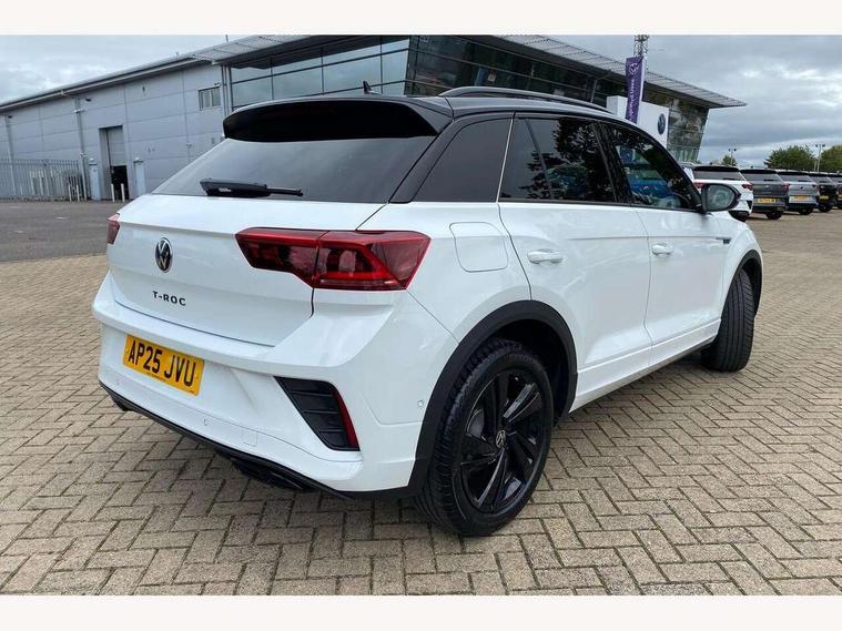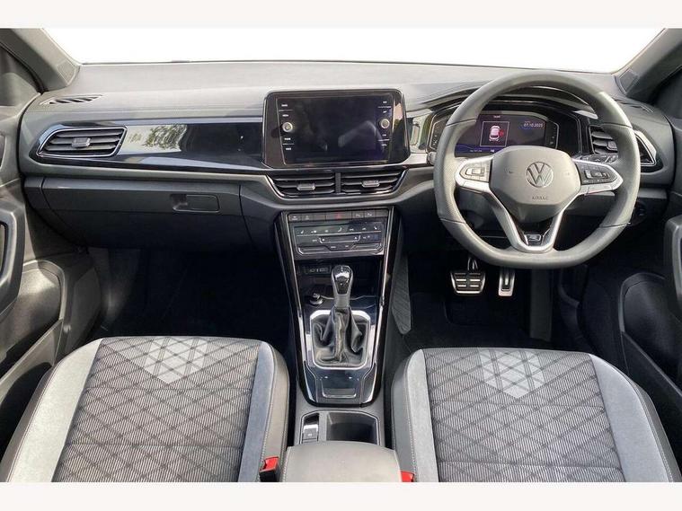 10.25" Digital cockpit pro, Advanced driver attention and drowsiness monitor, Emergency call service, Lane keeping system Lane Assist, Mobile phone interface, Modified key software - reduce switch off time for key status change to Long no motion, Online services, Park assist including front and rear parking sensors, Power assisted speed sensitive steering, Service interval indicator, Tailgate/trunk lid release from outside, Think blue trainer driver tips and journey analysis, Warning sound and light for front seatbelts unfastened, Wireless app connect, Battery regeneration during braking, Rear shock absorption chassis with increased ride height, Start/stop function with battery regeneration, DAB Digital radio, Diversity antenna for FM reception, Front and rear 6 speakers, Music playback - MP3, WMA and AAC files, Premium USB cable in choice of either Apple or Android smartphone compatibility, SD card slot, Simultaneous pairing of 2 compatible mobile devices, Title and cover art display, We Connect and We Connect Plus functionality, Auto dimming interior rear view mirror, Automatic hazard lights activation under emergency braking, Automatic headlight control with LED separate daytime running lights with coming/leaving home function, Dynamic cornering light, Electrically adjustable and heated door mirrors, Extended roof spoiler, Exterior mirrors aspherical on driver side, convex on front passenger side, External USB type C socket and charging sockets, Front windscreen wiper with intermittent wipe and 4 position delay, Heated rear window, Illuminated front grille, IQ LED matrix headlights, LED 3rd brake light, LED rear number plate lights, LED rear tail lights with dynamic turn signal, Light mode for poor weather, rain, fog or snow, Power windows with comfort operation and circuit breaker, R-Line design body coloured bumpers, Rain sensor, Rear exhaust tailpipe, Rear fog light on one side and reversing lights on both sides, Rear side wing doors, Rear wash/wipe with intermittent wipe setting, Remote electrically foldable door mirrors, puddle lights and reverse activated passenger's door mirror, 12V power socket in centre console, 3 rear head restraints, 3 seat bench in 2nd row, 4 load lashing points in luggage compartment, Air care climatronic air conditoning system with active combination filter and 2-zone temperature control, Artvelours cloth upholstery, Black roof lining, Chrome plated radiator grille inserts, air vent surrounds and light switch surrounds, Door and side trim panel with leatherette insert, Drawer under drivers seat, Driver seat height adjust, Driver's seat lumbar support, Front + rear carpet mats, Front centre armrest, Front comfort sports seats, Front cupholders x 2, Front footwell illumination, Front reading light, Front scuff plates with R Line logo, Front seat back storage pockets, Glove compartment door with light, Instrument lighting, white adjustable panel illumination, Interior ambient lighting and surround lighting, Interior light delay, Isofix child seat preparation, Leather gearshift handle, Leather wrapped multifunction steering wheel with paddle shift, Load-through provision with cup holder when folded down ('Unsplit rear seat bench, split folding backrest, with centre armrest), Luggage compartment lighting, Non-folding front passenger seat backrest, Passenger seat height adjuster, Passenger seat lumbar support, Single front passenger seat, Stainless steel pedals, Storage compartment in left and right luggage area, Storage compartment in rear doors, Storage compartments in driver and front passenger doors, Sunvisors with illuminated vanity mirrors, Variable boot floor, height adjustable and removable, Winter pack without heated windscreen washer jets - T-Roc, 3 point height adj front seatbelts + pretensioners, 3 point seatbelts in outer rear with ECE label, ABS, Child locks on rear doors, City emergency braking and pedestrian monitoring, Driver and front passenger airbag with front passenger airbag deactivation, Driver and front passenger safety-optimised head restraints, Drivers seatbelt reminder, Electronic parking brake, Electronic Stability Control (ESC) inc EDL (Electronic Differential Lock) and ASR (Traction Control), Front and rear passengers curtain airbag system including front side airbags, Front disc brakes, Hill start assist, Predictive pedestrian protection, Rear disc brakes, Two tone horn, Tyre pressure loss indicator, Volkswagen roadside assistance, Tool kit, Trims for alloy wheels, Tyre mobility kit including compressor and sealing foam,