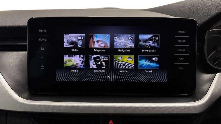 Amundsen satellite navigation with 9.2" glass colour touchscreen display, web radio, voice control and traffic sign recognition, Bluetooth system, E-call, Front assist system, Gesture control, PAS, Service indicator, Speed limiter, Wireless SmartLink for apple car play, android auto and mirrorlink, 8 Speakers, Auxiliary input socket, DAB Digital radio, Body colour bumpers, Body colour door mirrors and handles, Chrome grille surround, Dimming rear view mirror with black surround, Electrically adjustable and heated door mirrors, Front and rear electric windows, Headlight range control, Heated rear window, LED rear lights - low functionality, Light sensors, Privacy glass, Rear fog lights, Rear side wing doors, Rear wiper, 12V Accessory socket in centre console, 3 seat bench in 2nd row, Chrome inner door handles, Cloth upholstery, Front head restraints, Glove compartment with illumination, Height adjustable driver and front passenger seats - manual, Ice scraper, Isofix child seat fittings on outer rear seats, ISOFIX on front passenger seat, Manual lumbar support for front seats, Rake/reach adjustable steering wheel, Reading lights, Single front passenger seat, Sun visors with illumination on front passenger, Textile floor mats, Third rear headrest, Top tether for front passenger seat, Umbrella in driver's door, 3x3 point rear seatbelts, Airbags - driver and front passenger, ESP, Front passenger airbag deactivation switch, Front side airbags with curtain airbags, Hill hold control, Manual parking brake, Manual rear child locks, One tone horn, Rear disc brakes, Seatbelt reminder for driver an co-driver, Traction control, Tyre pressure monitor, Anti-theft alarm system with interior monitoring, backup horn, towing protection and remote central locking with SAFE system, Anti-theft wheel bolts, Electronic engine immobilizer, Silver haptic decorative insert on the dashboard with hot stamping in glossy black,