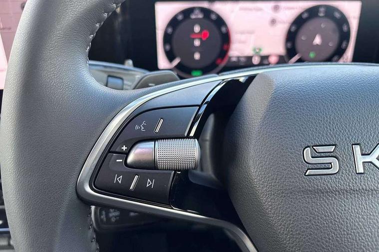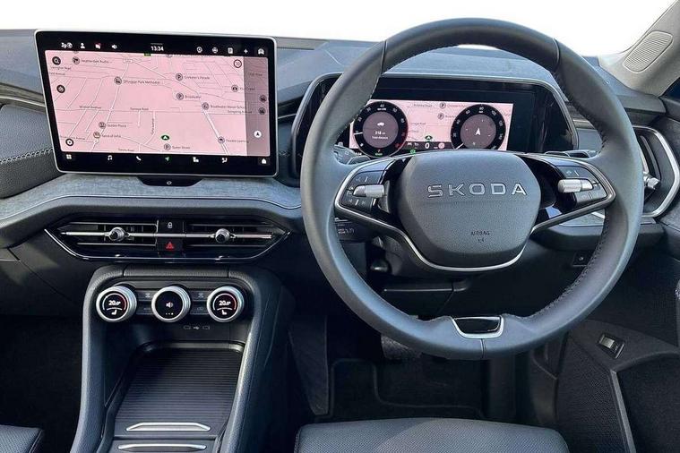 13" satellite navigation touchscreen display, Blind spot detection with door exit warning, Bluetooth system, ChatGPT functionality, Driver alert - Fatigue and drowsiness monitor, Dry display cleaner, Emergency call, Front and rear parking sensors, Front cross traffic assist, Lane assist, PAS, Rear traffic assist, Tailgate unlocking from outside, Traffic sign recognition, USB C Port x 2 in front centre console, Virtual Cockpit - 10.25" digital display, Voice control system, Wireless charging for two smartphones (15W) with cooling function, Wireless SmartLink for Apple CarPlay and Android Auto, Stop/start function, 2x USB-C in the rear, DAB Digital radio, Aero front windscreen wipers with intermittent function, Auto dimming rear view mirror, AWL (all weather lighting) and all weather light with cornering function, Black wheel arch surrounds, Body colour bumpers, Body colour door mirrors and handles, Cornering light and poor weather light, Electric folding /adjustable/separted heated/folding door mirrors, auto dimming with boarding sports and memory function, Electric front and rear windows, Exterior black decorative trims, Heat insulating glass in windshield, Heated rear window, Ice scraper in fuel tank cap, Invisible tailpipe, LED daytime running lights, LED third brake light in rear spoiler, Light assistant with automatic headlight control and coming home feature, Logo projection in door mirrors, Privacy glass, Rear roof spoiler, Rear side wing doors, Rear window wiper, Red decorative strip between rear LED lights, Safety reflectors on front and rear doors, Unique dark chrome design logo on alloy wheels, Window control switches with black trim, Windscreen wipers with rain sensor, Without engine designation, 1.5l bottle holder points in all door, 1x centre rear reading light, 2 seat bench in 3rd row, 3 configurable smart dials with 32mm coloured display, 3 seat bench in 2nd row, 4 foldable roof handles with rear coat hooks, Ambient interior lighting - Dashboard, front-door stowage compartments, front and rear door panels and footwell lighting, Automatic gear selector on steering column, Chrome interior door handles, Driver/front passenger reading lights, Fabric headlining, Fixed bench 40:60:40 split folding backrests, Front and rear floor mats, Front centre armrest with jumbo box storage compartment, cup holder and 12V socket, Height adjustable front headrests, Isofix child seat fittings in outer middle row rear seats and front passenger with top tether, Manually adjustable steering column, Pollen filter, Rear centre armrest with cupholders, Rear seat boot backrest release, Single front passenger seat, Skoda lettering on steering wheel, Storage pocket including mobile phone pockets on the backs of the front seats, Sunvisors with illuminated vanity mirrors, Three rear height adjustable headrests, Ticket holder on A Pillar, Tri zone climate control, Umbrella in door panel x1 made from sustainable materials, Upper and lower glovebox with card holder and coin compartment, USB C port by rear view mirror for charging only (15W), Exterior styling pack - Kodiaq, Auto door release and activation of warning lights in the event of an accident, Driver and front passenger airbag with knee airbag and front passenger airbag deactivation, Electric child locks, Electronic parking brake, ESC (incl. ABS+EMD+MSR+ASR+EDL+HBA+DSR+RBS+ESBS+MCB+TSA+XDS), Front assist with braking reaction to vehicles, pedestrians and cyclists, Front disc brakes, Fuel cut off safety device, Height adjustable front 3 point seatbelts + pretensioners, Hill hold assist, Junction assist with automatic emergency braking, Rear disc brakes, Safety vest holder in door, Seat belt reminder for all seats, Three point rear seat belts, Two tone horn, Tyre pressure monitor, Anti-theft wheel bolts, Immobiliser, Remote central locking with 2 keys,