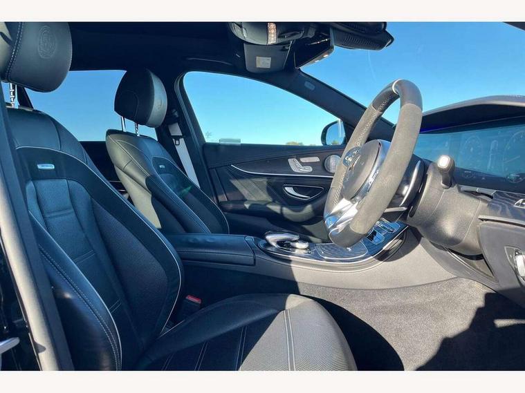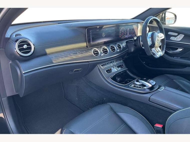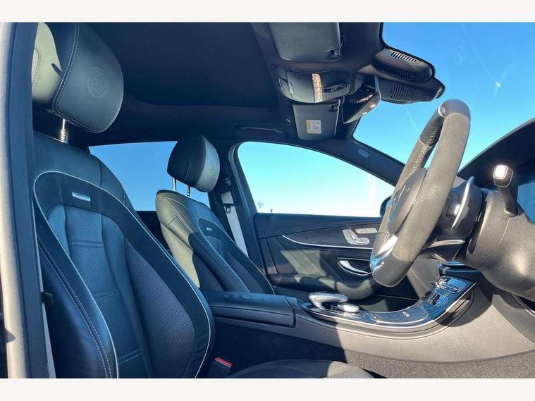 Active park assist with parktronic system, Analogue clock, Attention assist, Bluetooth interface for hands free telephone, Boot release from drivers seat, Brake wear warning light, COMAND HDD navigation with 12.3" central display and 12.3" Cockpit display, DYNAMIC SELECT with a choice of driving modes (ECO, Comfort, Sport, Sport+ and Individual), Easy-pack tailgate - Powered opening/closing automatically, External temperature gauge, Instrument cluster, Multi function trip computer, Park assist pilot with front and rear park assist, Remote boot release, Reversing camera, Service indicator (ASSYST), Smartphone integration with Apple CarPlay, Touchpad with control wheel, 66 litre fuel tank, AirMATIC suspension, AMG electronic rear axle limited slip differential lock, DAB Digital radio, Media interface, Steering wheel mounted audio controls, USB/aux input socket, Adaptive brake lights, Aerial integrated in rear window, AMG bodystyling, AMG front, rear apron and side skirts, Body colour bumpers, Body colour door handles, Chrome roof rails, Electric front/rear windows with one touch/auto up/down, Electrically adjustable and heated door mirrors, LED daytime running lights, LED Headlights, LED tail lights, Polished aluminium upper window surround, Rain sensor windscreen wipers, Twin exhaust tailpipes x2, 3 spoke AMG Performance steering wheel in black nappa leather/dinamica, 40:20:40 split folding rear bench seat, Adjustable front head restraints, Ambient lighting, AMG Exclusive Nappa leather upholstery, AMG floormats, AMG illuminated door sills, Auto Mercedes-Benz child seat recognition sensor, Bag hook in luggage compartment, Black roof lining, Chrome door pins, Cupholders in centre console, Electric adjustable steering column, Folding shopping box, Front and rear door pockets, Front centre armrest with storage compartment, Front seat back map pockets, Heated front seats, Interior rear light/integral reading lights, Isofix rear child seat fastenings, Lockable/illuminated air conditioned glovebox, Multi function steering wheel, Nappa leather upper dash trim, Sports pedals with stainless steel surfaces and rubber studs, Steering wheel gearshift paddles, Storage compartment with 12V socket in centre console, Storage net in luggage compartment, Sunglasses holder, Sunvisors with illuminated vanity mirrors, AMG driver's package - E Class AMG, Interior lighting pack - E Class, Memory pack - E Class, Mirror pack - E Class, 3x3 point rear seatbelts, ABS, Active bonnet, Active brake assist, Childproof rear door locks, Crash sensor, Driver and passenger side/thorax airbags, Driver/front passenger airbag, Drivers knee airbag, Electronic parking brake, ESP with ASR, Hill hold assist, Hill start assist, Pre-Safe anticipatory safety system, Red brake calipers, Seat occupancy sensor, Seatbelt warning, Tyre pressure monitoring system, Warning triangle and first aid kit, Window airbags, Alarm system/interior protection/immobiliser, Automatic door locking, Chrome surround electric key, Keyless Start, Remote central locking, Open pore black ash wood centre console, Tirefit sealant with electric air pump,