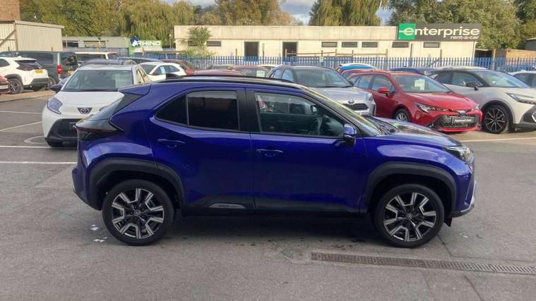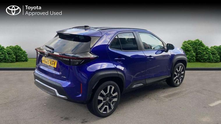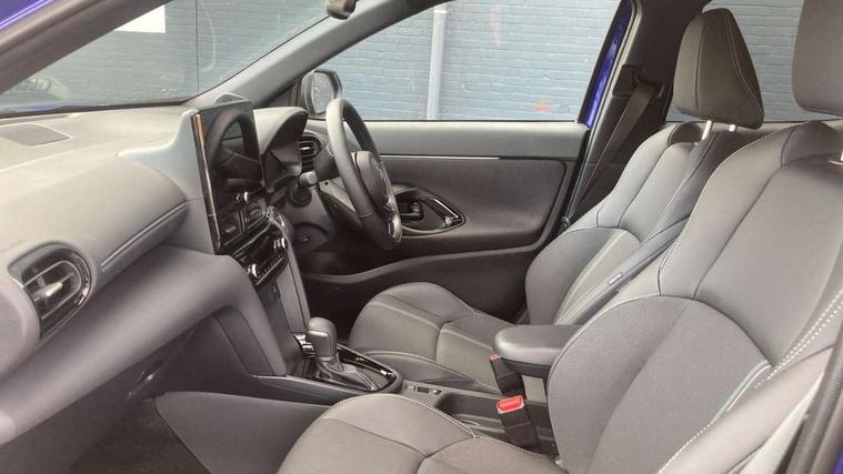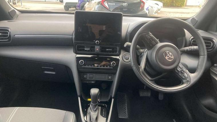 10.5" Multimedia display screen, 10.5" Toyota smart connect+ with navi multimedia system with wireless Smartphone integration incl Apple CarPlay, 360 degree panoramic view monitor, 7" Multi information display screen, Adaptive cruise control, multi info switches on steering wheel, Adjustable speed limiter, Advanced parking assist, Blind spot monitoring, Bluetooth connectivity, Color multi-information display, Digital speedometer, Digital tachometer, Drive mode selector, Driver attention alert system, Dynamic guide lines on reversing camera, eCall emergency system, Electric power steering, Emergency driving stop system, Full range intelligent adaptive cruise control, Hybrid system indicator, Intelligent front and rear parking sensors with clearance sonar and automatic braking, Intersection turn assist, Key reminder warning, Lane change assist, Lane trace assist, My T Connected services, Power tailgate, Pre-collision system enhanced with emergency steering assist, Rear cross traffic alert, Remote boot door release in cabin, Road sign assist - RSA, Safe exit assist, Tailgate, Telephone switch on steering wheel, Wireless Mobile Phone Charger, Steering assisted vehicle stability control, 6 speakers, DAB Digital radio, Front USB Type-C connector, Front USB-C device charger, Acoustic windscreen glass, Anti-jam protection on power windows, Auto dimming rear view mirror, Auto high beam [AHB] with on/off switch, Auto intermittent windscreen wipers, Automatic headlights, Automatic headlights cut-off, Automatically retractable door mirrors, Black door moulding, Black lower front grille, Black protection moulding on side doors, Black roof rails, Black wheel arch mouldings, Body colour door handles, Body colour front bumper, Body colour rear bumper, Electric adjustable heated door mirrors, Follow me home headlights, Front and rear electric windows with auto up/down function, Gloss black upper front grille, Headlight cut off reminder, Indicators integrated on door mirrors, Intermittent rear wiper, Kick activated power back door, LED 3rd brake light, LED daytime running lights guide, LED front fog lights, LED front light guide, LED Indicators, LED projector headlights, LED rear lights with sequential indicators, Manual headlight levelling, Meshed upper front grille, Noise reduction layer on windscreen, Pre wiring for towing hook, Privacy glass, Rain sensor, Rear roof spoiler, Rear side wing doors, Rear window defogger, Shark fin antenna, 12v power outlet - front, 12V power point in boot, 2x Rear coat hooks, 3 seat bench in 2nd row, 3 spoke leather steering wheel, 40/60 split deckboard, 40:20:40 split folding rear bench seat, Adjustable rear headrests, Adjustable speed limiter switch on steering wheel, Boot light, Central armrest, Driver and front passenger personal lights, Driver and front passenger Whiplash injury Lesseing seats, Driver and passenger seatback pockets, Dual zone automatic air conditioning, Fabric door trim, Front console box, Front cup holders, Front door pockets, Front head restraints, Front sport seats, Front/rear assist grips, Gear shift indicator, Grey roof lining, Heated driver and passenger seats, Heated steering wheel, Height adjustable driver's seat, Height adjustable front passenger seat, Hooks for luggage holding belts, ISOFIX child restraint system, Lane departure alert switch on steering control, Leather gearshift, LED centre room light, Light on driver and passenger sun visor, Manual telescopic and tilting steering wheel, Mirror on driver and passenger sun visor, Nanoe-X air purifier, Partial synthetic leather upholstery, Pollen air filter, Power adjustable lumbar support on driver seat, Rear cup holders, Rear door pockets, Rear head restraints, Remote air-conditioning system, Single compartment glovebox, Single front passenger seat, Soft tonneau cover, Storage box under boot floor, Voice recognition switch on steering wheel, White ambient lighting in centre console, White ambient lighting in footwell, White ambient lighting on front doors, Yaris cross floor mats, Tech pack - Yaris Cross, 3x3 point rear seat belts, ABS+EBD+Brake assist, Downhill Assist Control (DAC), Driver and passenger central airbags, Driver and passenger front airbags, Driver and passenger side airbags, Electronic parking brake, Emergency brake light system (EBS), Front seat belt reminder, Hill start assist control (HAC), Passenger airbag on/off switch, Pre-collision system with pedestrian and cyclist detection, Rear door child safety locks, Rear passenger side airbags, Rear seat belt reminder, Traction control, Tyre pressure warning system, Immobiliser, Intrusion alarm, Keyless smart entry with push button start, Power door locks, Power passenger window lock, Remote door lock, Gloss black side air vent surrounds, Tyre repair kit,