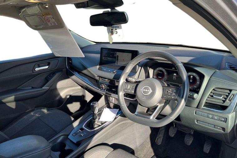 Android auto/Apple CarPlay (Wired), Blind spot warning, Drive modes (sport, normal, eco), Electric speed sensitive power steering, Emergency and breakdown call, Front and rear parking sensors, Full Digital 12.3" TFT Digital Combimeter, Google maps services - search, weather, 3D maps and Google street view, Idle stop/start system, Intelligent around view monitor, Intelligent Cruise control (ICC), Intelligent driver alert system, Intelligent forward collision warning, Intelligent lane intervention, Lane departure prevention, Lane departure warning system, Maximum speed limiter, Moving object detection, Nissan connect 12.3 inch touchscreen infotainment system, Nissan connect navigation, Push button starter, Rear cross traffic alert, Rear view camera, Remote control services - door locks, lights, horn and car locator, Telematics - notifications and connectivity services, TomTom live traffic services, Traffic sign recognition with legal speed adjustment, Trip computer, Virtual personal assistant and firmware over the air capability, Wireless apple carplay, 6 speakers, AM/FM audio system with DAB, Bluetooth audio streaming, Front USB connections (Type-A and Type-C), Rear USB charging only ports (Type-A and Type-C), Auto dimming rear view mirror, Auto rear wiper when reversing, Automatic hazard signal with emergency stop signal, Body colour mirror caps, Body coloured door handles, Bodyside mouldings, Chrome side window finisher, Door handle with button, Electric auto folding door mirrors, Electrically adjustable and heated door mirrors with LED turn indicator, Follow me home headlights, High beam assist, Intelligent auto headlights, LED daytime running lights, LED Headlights, LED rear lights, One touch front and rear electric windows with remote opening and closing, Partially body coloured bumpers, Privacy glass, Rear bumper with graphite insert, Rear reversing light (bulb lighting), Rear roof spoiler, Rear side wing doors, Rear styling plate, Shark fin antenna, Splash free rain sensing wipers, Super UV and infrared cut glass, Three blink turn signal, 12v power socket in dashboard and luggage, 2x Rear coat hooks, 3 bench rear seats in 2nd row, 3 rear headrests, 4 folding assist grip, 6 Luggage hooks - 4 on floor, 2 on side, 6-way manually adjustable driver's seat, 60/40 split folding rear seat bench, Ambient lighting around centre console, Centre console storage tray, Chrome interior door handles, Cloth monoform upholstery, Driver and front passenger sunvisors with illuminated vanity mirrors, Driver seat back pocket, Dual zone automatic climate control with pollen filter, Electrically adjustable lumbar support for driver, Front and rear door storage, Front centre console and armrest, Front cupholders x 2, Front door with bottle holders, Glovebox with light, Hard trunk cover, Height adjustable driver's seat, Height adjustable front headrests, Height adjustable passenger seat, Leather shift knob, Leather steering wheel, Luggage board system, Luggage space lighting, Manually adjustable passenger (slide recline + lifter), Multifunction steering wheel, Passenger seat back pocket, Rear armrest with 2 cupholders, Rear door bottle holders, Single front passenger seat, Soft PVC kneepad, Steering wheel switches, Sunglasses holder, Tilt/telescopic adjustable steering wheel, Two rear isofix child seat anchorage points with top tether, Welcome light and console tray ambient lighting, 3x3 point rear seatbelt pretensioners + load limiters, ABS with EBD and brake assist, Active brake limited slip, Auto hold function, Child locks on rear doors, Curtain and front side, far side airbags, Driver and passenger airbags, Driver, passenger and 2nd row rear seat belt reminder, Electronic parking brake, Front seatbelt pretensioners + load limiters, Height adjustable front seatbelts, Hill start assist, Intelligent blind spot intervention, Intelligent front emergency braking with pedestrian, cyclist recognition and junction assist, Intelligent rear automatic braking, Tyre pressure monitoring system, Vehicle dynamic control, Capless fuel filler, Engine immobiliser, Intelligent Key, Remote central door locking with deadlocking, Thatcham Cat.1 alarm, Interior instrumental panel B finisher, 18" Diamond cut alloy wheels, Tyre puncture repair kit,