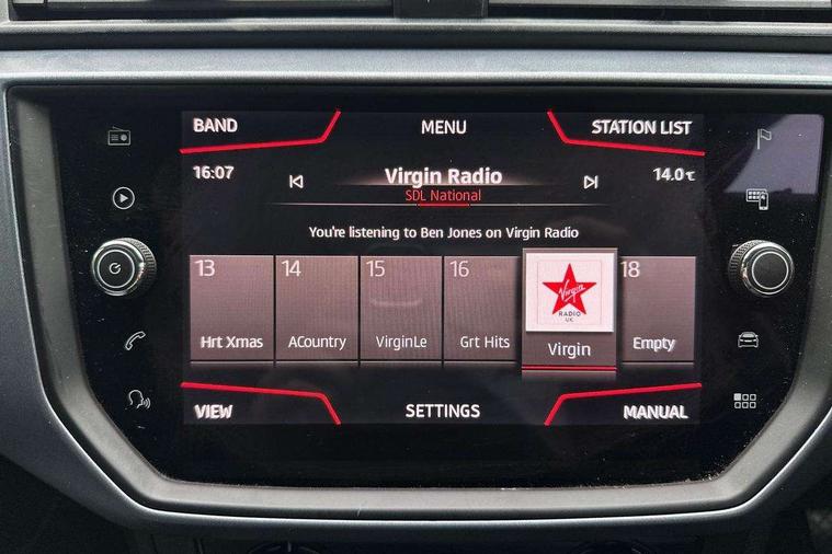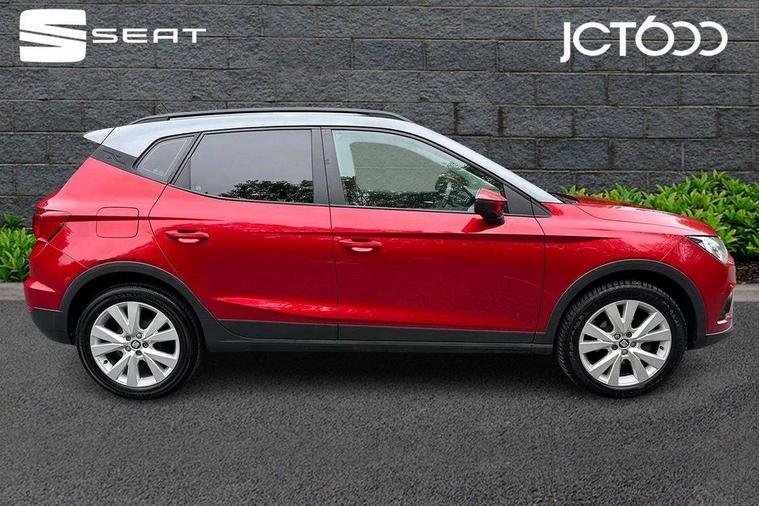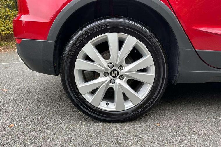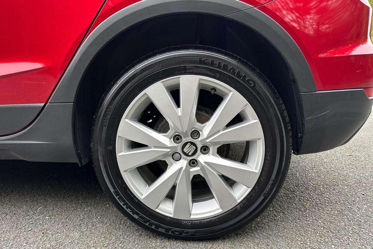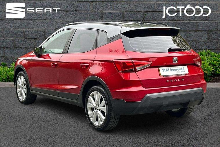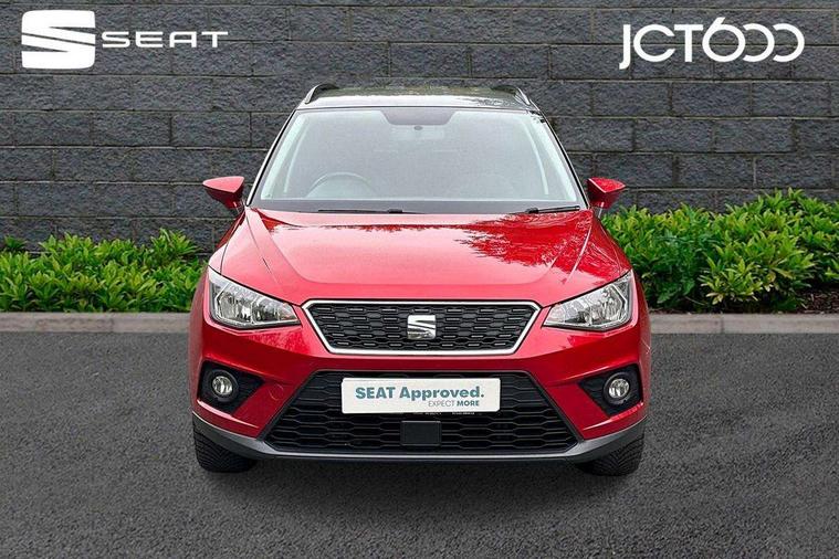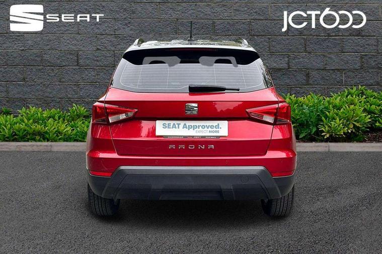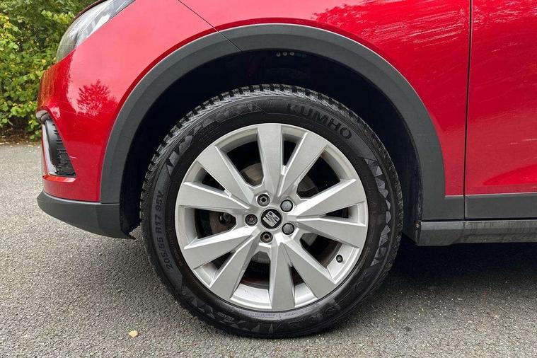 'Lights On' Reminder warning buzzer, Cruise control, Electric speed sensitive power steering, Front assistant collision mitigation, Outside temperature display, Rear parking sensor, Trip computer, Comfort suspension, 6 speakers, Bluetooth interface for hands free and audio streaming, DAB Digital radio, Steering wheel mounted audio controls, Automatic activation of hazard warning lights, Automatic headlights, Black roof rails, Black window surrounds, Body coloured bumpers, Body coloured door handle inserts, Chrome grille surround, Electric adjustable door mirrors, Electric front/rear windows with one touch/auto up/down, Electric headlight adjustment, Front fog lights with static cornering function, LED daytime running lights, Rear window wash/wipe, 2 cupholders, 3 rear height adjustable headrests, 60/40 split folding rear seat, Air conditioning, Ambient interior lighting, Cloth upholstery, Double boot floor, Driver and passenger sunvisors, Driver/front passenger seat height adjustment, Dust/pollen filter, Footwell ambient lighting, Front courtesy lights, Front reading light, Height/reach adjustable steering column, Illuminated boot, Isofix attachments on outer rear seats, Leather handbrake, Leather steering wheel and gear knob, Connectivity pack plus - Arona, 3 point seatbelts on all rear seats, ABS+EBA, Child locks on rear doors, Driver/Front Passenger airbags, Electronic stability control, Front and rear seatbelt reminder, Front side/curtain airbags, Height adjustable active front headrests, Hill hold control + Tyre Pressure monitor, Multi-Collision braking, Passenger airbag deactivate switch, Tiredness recognition system, Traction control, 2 folding remote keys with window open/close function, Immobiliser, Locking wheel bolts, Remote central locking + deadlocks, Interior chrome line trim, 17" Dynamic alloy wheels,