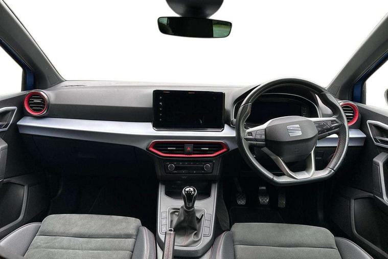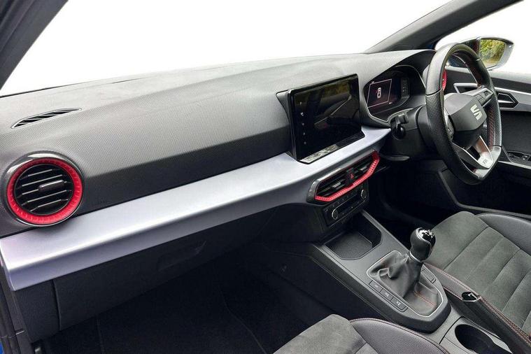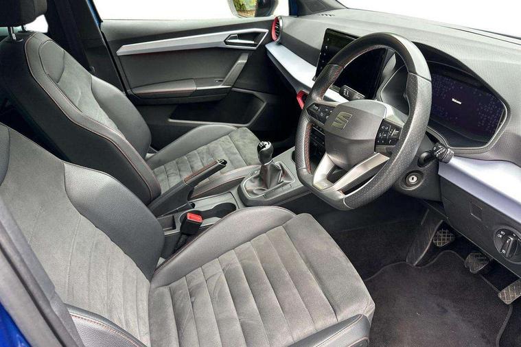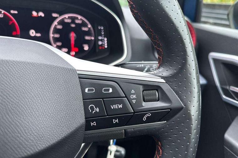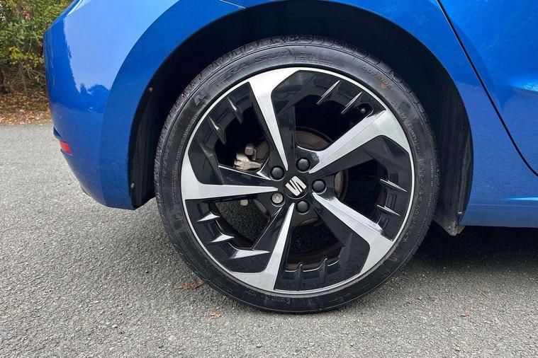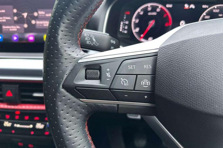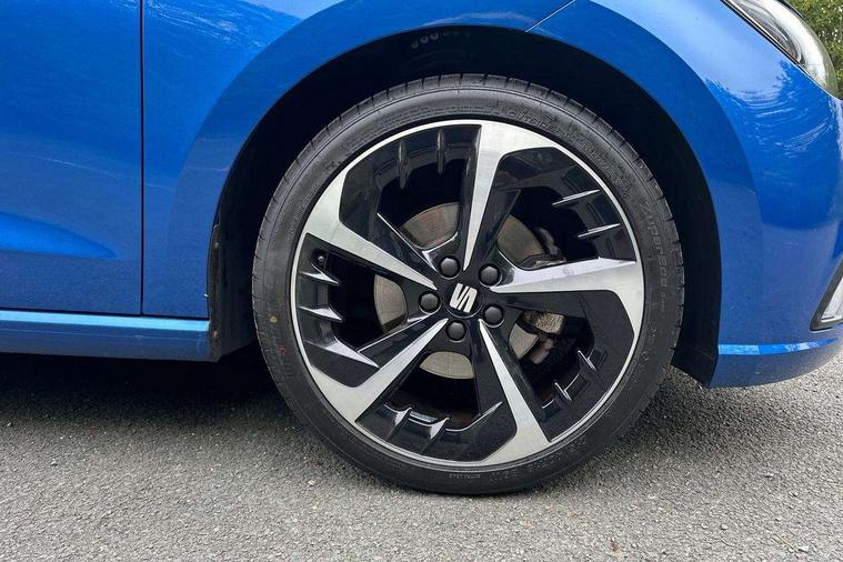 'Lights On' Reminder warning buzzer, 9.2" touchscreen navigation system with type C USB socket, Voice control and DAB/AM/FM radio, Auto start and stop system, Bluetooth audio streaming with handsfree system, Digital clock, Digital cockpit, Full link smartphone integration with mirror link, wireless apple carplay, Google android auto + USB Type C cable for apple and android devices, Lane assist, Low fuel warning light, Outside temperature gauge, Power Steering, Seat connect with safety, service, remote and online, SEAT drive profiles and ECO function, SEAT logo boot release, Speed limiter, Trip computer, Sports suspension, Auxiliary input socket, Radio/MP3 player, SD card slot, Steering wheel mounted controls, Anti theft roof antenna, Auto dimming rear view mirror, Automatic rain sensing wipers, Black door mirrors, Body colour bumpers, Body colour door handles, Brilliant black window surrounds, Dark tinted rear windows, Electric adjustable/heated/folding door mirrors, Electric front windows, Electric headlight adjustment, Electric rear windows, Front/rear fog lights, FULL LED automatic headlights with dynamic headlight range control, coming and leaving home, LED daytime running lights, LED tail lights, Rear spoiler with FR twin exhausts, 60/40 split folding rear seat, Ambient interior lighting, Chrome detailing and black headlining, Comfort seats, Dual zone climate control with combination filter, Front courtesy lights, Front cupholders x 2, Front reading lights, Gear shift indicator, Glovebox, Height adjustable front and rear headrests (five), Height adjustable front seats, Height/reach adjust steering wheel, Illuminated air vent surrounds, Illuminated boot, Instrument lighting with brightness control, Isofix, Leather multifunction flat bottomed sports steering wheel, Microsuede cloth upholstery, Passenger sunvisor, Storage pockets on back of front seats, Sunvisors with mirror and driver side card holder, 3 point seatbelts on all 3 rear seats, ABS, Active front headrests, Child locks on rear doors, Electronic stability control, Energy recovery system, Front assist forward collision warning and autonomous emergency braking, Front driver and passenger side airbags with curtain airbag and front passenger airbag deactivation, Hill hold control, Multi-Collision braking, Seat belt reminder for front and rear seats, Tiredness recognition system, Tyre pressure monitoring system, Electronic engine immobiliser, Locking wheel bolts, Perimeter alarm and interior monitoring with backup horn and tow away protection, Remote central locking + deadlocks, 18" Performance machined alloy wheels in black and grey,