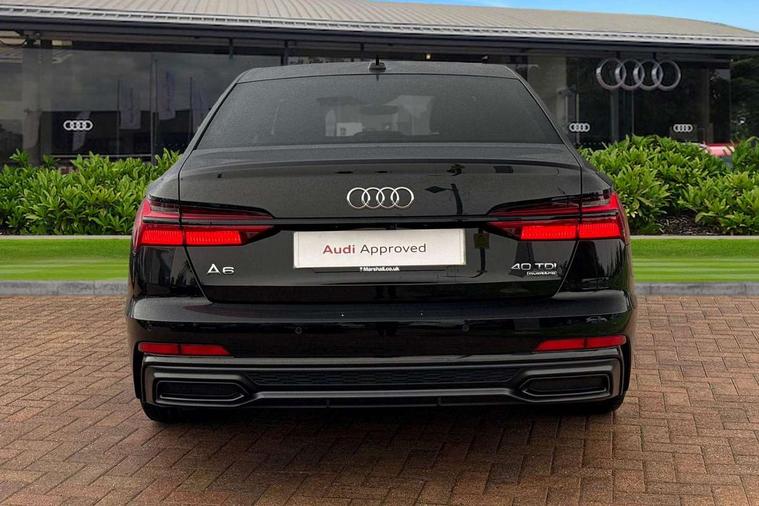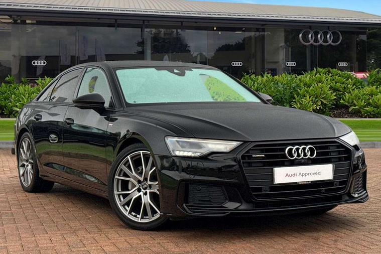 7" high resolution colour driver information display system, Audi connect safety and service (e-call), Audi connect with Amazon Alexa Integration, Audi drive select, Audi parking system plus - acoustic and visual park assist system for front and rear, Audi smartphone interface includes wireless Apple carplay/Android Auto, Automatic start/stop system with coasting functionality, Bluetooth interface, Electric boot lid release, Lane departure warning system, Progressive steering, Rear view camera, Service interval indicator, Voice control system, 12V Mild hybrid, 24 litre AdBlue tank, Diesel particulate filter, Quattro on demand, Sports suspension, Audi front music interface, Audi sound system, Auxiliary input socket, DAB Digital radio, USB connection, All weather LED headlights, Electric front/rear windows, Frameless auto dimming interior rear view mirror, Front intermittent wipers, Gloss black highlights on the exterior area of the Audi Single frame, Gloss black highlights on the front and rear bumpers, Gloss black highlights on the radiator grille, Gloss black highlights on the side windows trim strips, Headlight washers, Heat insulating glass in side and rear windows, Heat insulating glass in windshield, LED rear lights, LED signature front daytime running light, LED third brake light, Matt black rear diffuser with diffuser strip and tailpipes in chrome, Matt black side air intake grille with inlay in matt aluminium, Privacy glass, Rain and light sensors, Rear boot, Rear side wing doors, 2 zone deluxe electronic climate control, 4 way electric lumbar support for driver and front passenger, 40/20/40 split folding 3 rear seat bench in 3 parts with rear centre armrest, Black cloth headlining, Black front and rear carpet floor mat, Black steering wheel insert, Electrically adjustable front seats with driver memory, Front centre armrest, Front head restraints, Heated front seats, Height/reach adjust steering wheel, Illuminated door sill trims with S logo, Illuminated sun visors with vanity mirrors, ISOFIX child seat mounting and Top Tether with front passenger airbag deactivation, Leather gear knob, Rear headrests, Single front passenger seat, Stainless steel pedals and foot rest, LED Interior Ambient Lighting Pack - A6, Non smoking pack - A6, Technology pack - A6, 3 point seatbelts on all seats, Airbags - Front side, front and rear including head, Audi pre-sense front, Black seatbelts, EBD - Electronic brakeforce distribution, Electromechanical parking brake, Electronic Stability Control (ESC) including ABS, ASR and EDL, Extended pedestrian protection measures, Manual child proof rear door locks, Seatbelt monitoring, Tyre pressure warning light, Warning triangle and first aid kit, Anti theft alarm with tow away protection, Anti-theft wheel bolts and wheel loosening detection, Immobiliser, Keyless Go, Remote central locking, Carbon twill inlays, 20" 5 V spoke star design Audi sport cast aluminium alloy wheels in matt titanium look,