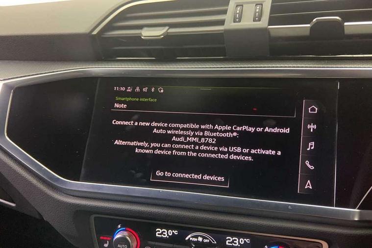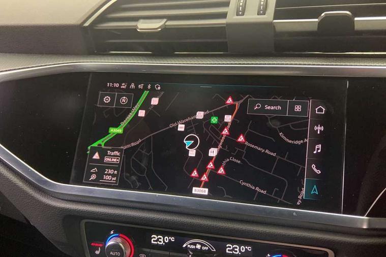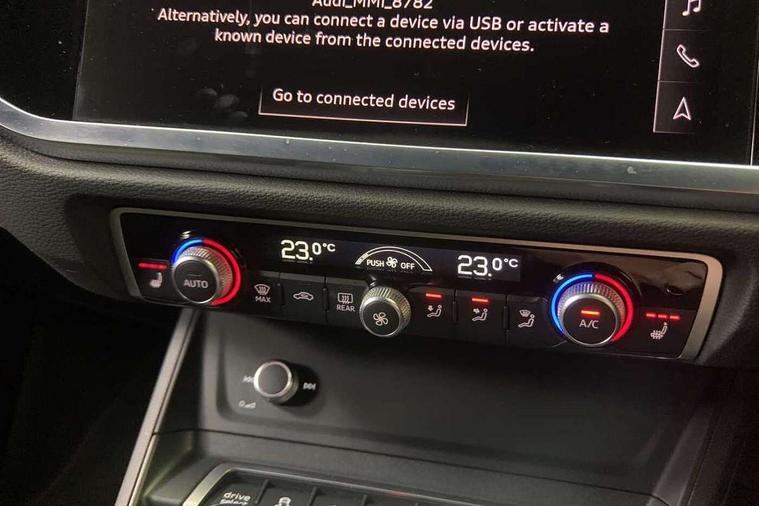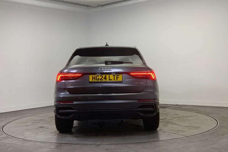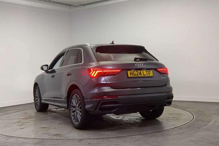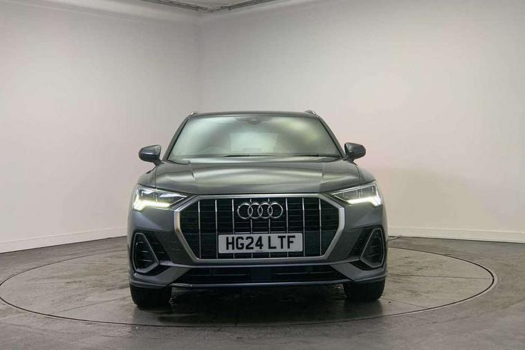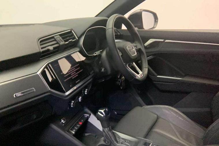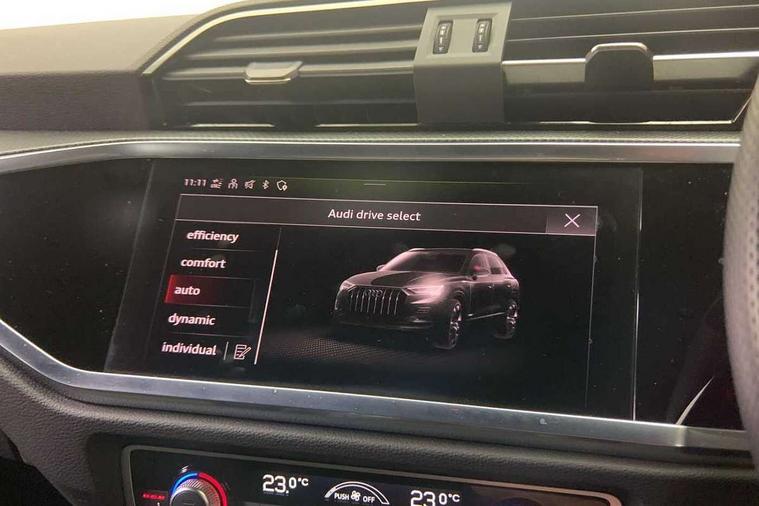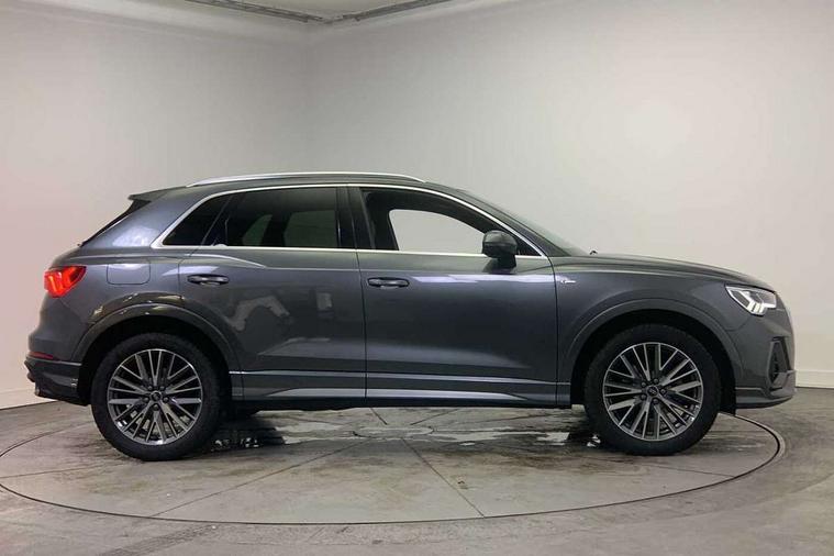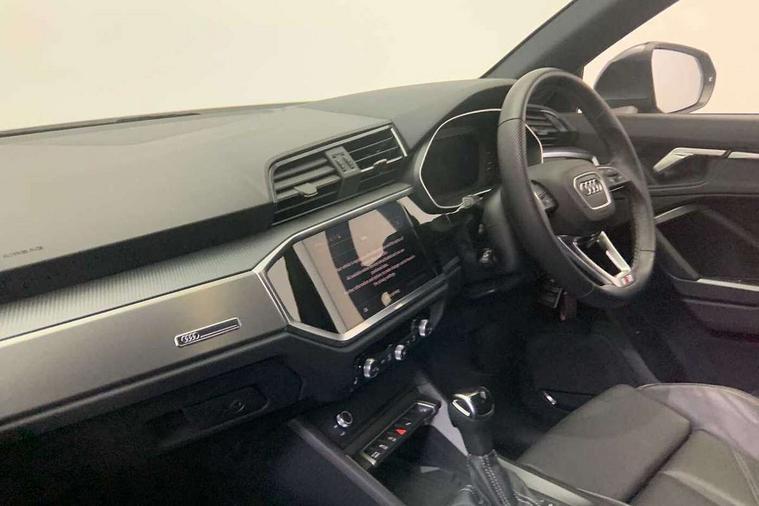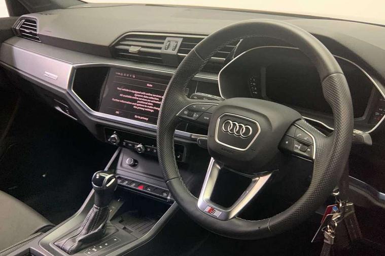 Amazon alexa Integration, Audi drive select, Audi lane departure warning, Audi Virtual Cockpit - 10.25" display, Bluetooth interface, Camera based traffic sign recognition, Legal emergency call, MMI Navigation Plus with high resolution 10.1 inch touchscreen colour display, Power operated tailgate, Progressive steering, Service interval indicator, Smartphone interface includes wireless Apple carplay/Android Auto, Start stop system with recuperation, Voice control system with natural language interaction, Diesel particulate filter, Sports suspension, 2 USB-C ports with charge and data functions, 6 passive loudspeakers, DAB digital radio module, Acoustic windscreen, Aluminium roof rails, Aluminium window trim, Anthracite black radiator grille, Auto dimming frameless rear view mirror, Body colour front spoiler blade, Body coloured bumpers, Electrically folding, adjustable and heated door mirrors with integrated LED side indicators and kerb view function for passenger side, Front and rear electric windows, Front fog lights, Front side air inlets in matt platinum grey, Grille vertical bars in aluminium silver/Matt, High gloss black finish B and C pillars, LED Dynamic rear indicators, LED headlights with LED daytime running lights, LED rear lights, LED third brake light, Privacy glass dark tinted rear and rear-side windows (from B-pillar backwards), Rain and light sensors, Rear diffuser grille in grained matt black, Rear diffuser strip in matt anthracite black, Rear side wing doors, Rear wiper, S line badges on front wings, S Line front and rear bumpers, Side skirt insert in matt Platinium grey, Variable front intermittent wipers, 12V socket in rear centre console, 3 seat bench in 2nd row, 3 spoke leather multifunction steering wheel features S badging and grips in perforated leather with contrast stitching, 40:20:40 folding with manual adjustment for 60:40 forwards/backwards position and backrest angle, Adjustable rear seat bench/backrest with centre armrest and cupholder, Black cloth headlining, Dual zone electronic climate control, Front and rear black floor mats with contrast stitching in rock grey, Front and rear headrests, Front and rear roof module including reading lights, Front centre armrest, Glove compartment lighting, Height and reach adjustable steering wheel, Illuminated door sill trims with S logo, ISOFIX child seat mounting for front passenger with airbag deactivation and outer rear seat including top tether attachment point for outer rear seats, Luggage compartment light, Manual front seats with height adjustment, Perforated leather gearknob, Single front passenger seat, Stainless steel luggage compartment sill finisher, Stainless steel pedals, Ambient lighting pack - Q3, Non smoking pack - Q3, 3x3 point rear seatbelts, 6 airbags - Driver, front passenger, curtain and side windows, Audi pre-sense front with pedestrain and cyclist recognition, Electrically operated child locks on rear doors, Electromechanical parking brake, Electronic stabilisation control including ABS, ASR and EDL, Front seatbelt reminder, Hill descent control, Hill hold assist, Pre sense basic, Seatbelt monitoring, Tyre pressure warning, Warning triangle and first aid kit, Anti theft alarm, Anti theft wheel bolts, Immobiliser, Remote central locking, Aluminium look interior elements, Dark matt brushed aluminium inlay, Detail dashboard around MMI touch colour display in glass look, black with surround in aluminium look, Leatherette door armrest,