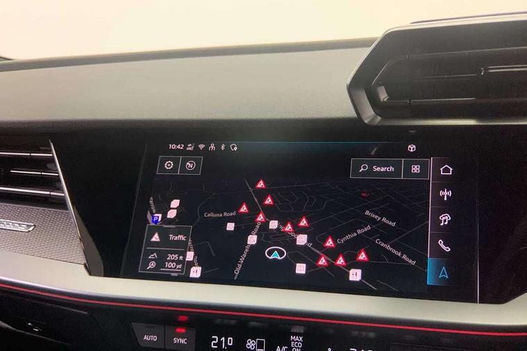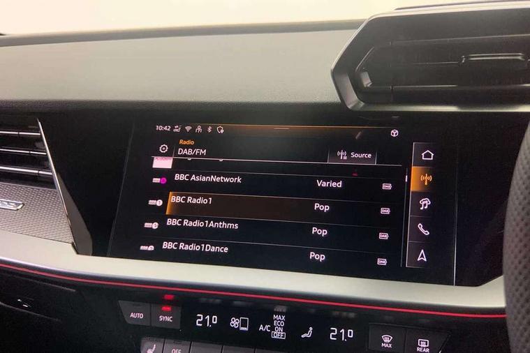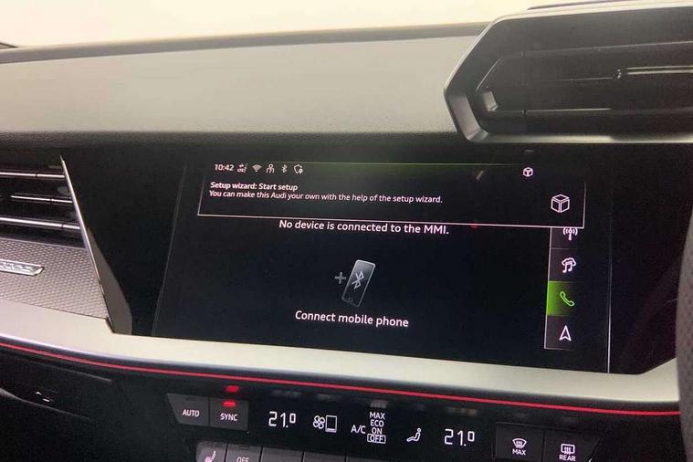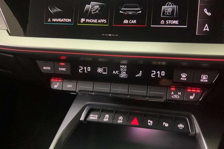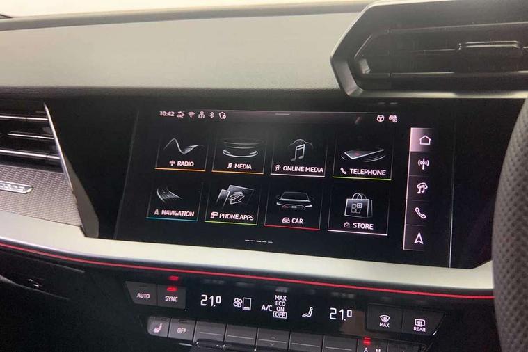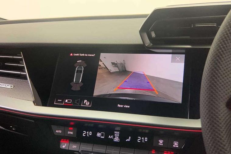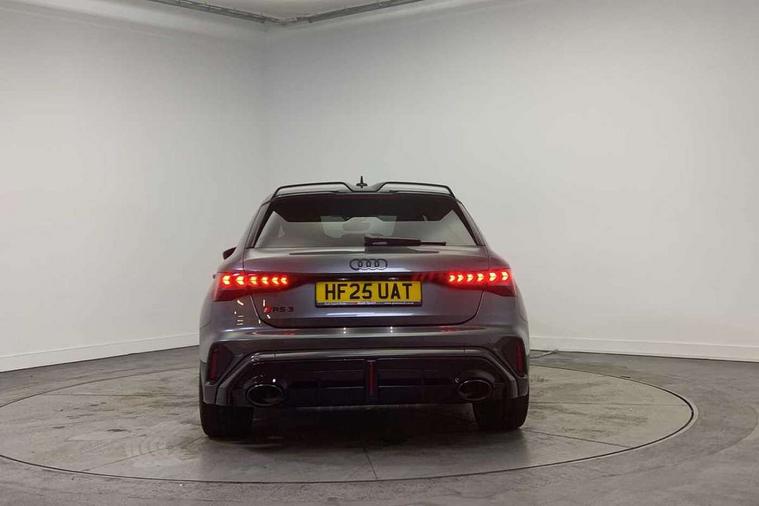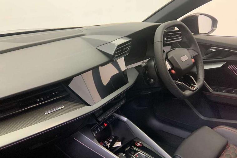 Adjustable speed limiter, Audi drive select comfort, auto, dynamic and efficiency, Audi smartphone interface with app store includes wireless Apple carplay, Android auto and Amazon alexa integration, Audi virtual cockpit plus with RS specific design and 12.3" display with additional graphic display options, Automatic start/stop system with recuperation, Bluetooth interface, Camera based traffic sign recognition, Collision avoidance assistant, Distraction and Fatigue warning, e-Call (emergency call), Lane departure warning system, MMI Navigation Plus with high resolution 10.1" colour touch screen display, Park Assist with parking system Plus, Progressive steering, RS specific driving modes - RS Individual, RS Performance and RS Torque rear, Voice control system with natural language interaction, Quattro permanent four wheel drive, Audi Phonebox light with wireless charging, DAB Digital radio, USB ports with charging function in the rear, All weather light, Audi beam LED projection of RS logo on ground as you exit, Audi darkened matrix LED headlights with dynamic light sequencing and dynamic indicator, Auto dimming frameless rear view mirror, Automatic dynamic range control, Carbon door mirror housings, Carbon fibre engine cover, Dipped beam, main beam, position light and turning light, Dynamic RS specific light sequencing of the coming home and leaving home function, Electrically adjustable/heated/folding/auto dimming door mirrors with integrated LED indications + kerb view function for passenger side, Exterior model badging, Front electric windows, Headlight cleaning system, Heat insulating glass windscreen, Intersection light, LED 3rd brake light, LED brake lights, LED daytime running x3, LED rear lights with dynamic light sequencing and dynamic indicator, LED rear number plate lights, LED reverse light, LED tail lights, Light and rain sensors, Manoeuvring light, Motorway light, Privacy glass - dark tinted rear window, rear door and side windows, Rear electric windows, Rear side wing doors, Rear wiper, Roof edge spoiler in carbon, RS dual branch exhaust system with two chrome plated oval tailpipe trims, Static Cornering lights, Visually upgraded RS specific daytime running light choice of 4 digital signature in chequered flag design within the headlight, 12V socket and storage compartment in front centre console, 3 seat bench in 2nd row, 3 Spoke flat top and bottomed black leather multi function steering and gear shift paddles, 3-zone deluxe automatic air conditioning, 40/20/40 split folding rear seat bench, Black cloth headlining, Front and rear headrests, Front centre armrest, Front door sill trims with RS 3 logo, Front sports seats RS embossed logo, Front/rear floor mats, Heated front seats, Height and reach adjustable steering wheel, Manual boot compartment lid, Manually adjustable front seats, Rear centre armrest with cupholder, Seat side bolsters, Single front passenger seat, Stainless steel pedals and front footrest in black, Vanadium look - Interior door handles, Door trim, power latching, Air vents, window controls, mirror adjust, rear door lock, Selector lever in centre console, Black Styling plus package - RS3, Extended ambient lighting package Pro with Multi-coloured contour lighting of instrument panel - RS3, RS exterior features pack in carbon and gloss black - RS3, RS sport suspension pack - RS3, Storage package - RS3 Sportback, Technology package without speed limiter - RS3, 3x3 point rear seat belts, Driver and front passenger airbag with passenger airbag deactivation, Electronic Stabilisation Control (ESC) including ABS, ASR and EDL, First aid kit with warning triangle and 2 safety vests, Hill hold assist, Pre-sense front with pedestrian and cyclist detection, RS steel brakes, Seatbelt monitoring, Tyre pressure loss indicator, Anti theft alarm, Anti-theft wheel bolts, Electronically operated child locks, Remote central locking with safelock, Inlays in carbon atlas structure, 19" 10 cross spoke silk matt grey alloy wheels, Tyre repair kit,