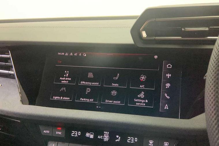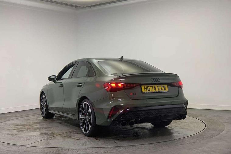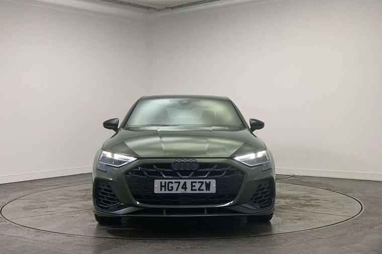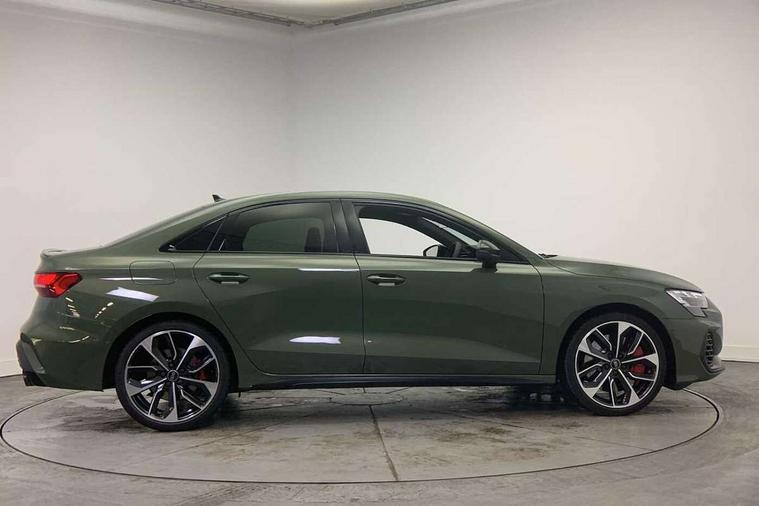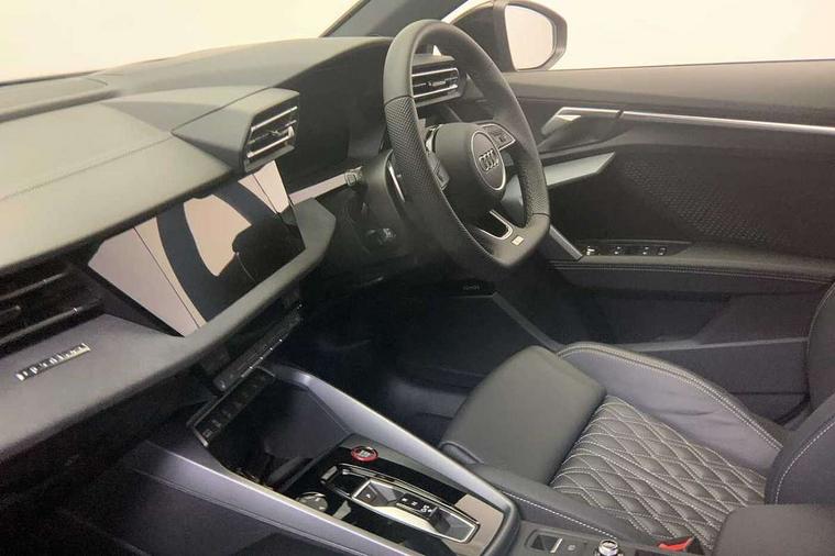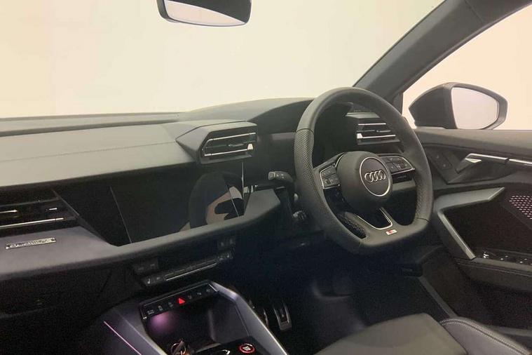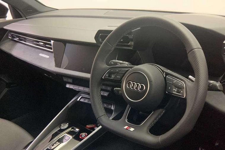 Adjustable speed limiter, Audi drive select, Audi smartphone interface with app store includes wireless Apple carplay, Android auto and Amazon alexa integration, Audi virtual cockpit plus - 12.3" full HD resolution dynamic digital instrument cluster, Automatic start/stop system with recuperation, Bluetooth interface, Camera based traffic sign recognition, Collision avoidance assistant, Distraction and Fatigue warning, e-Call (emergency call), Electromechanical power speed sensitive steering, Lane departure warning system, MMI Navigation Plus with high resolution 10.1" colour touch screen display, Park Assist with parking system Plus, Progressive steering, Service indicator, Trip computer, Voice control system with natural language interaction, S sport suspension with spring damper adjustment and lowering by 15mm, Audi Phonebox light with wireless charging, DAB Digital radio, USB ports with charging function in the rear, Anthracite grey Audi rings (front and rear), Audi Beam uses LEDs to project the rhombus S logo onto the ground as you exit your S3, Auto dimming frameless rear view mirror, Black accents front and rear bumpers including air inlets, Black accents in front grille and frame, Black accents window trims strips, Electrically adjustable/heated/folding/auto dimming door mirrors with integrated LED indications + kerb view function for passenger side, Exterior model badging, Front electric windows, Headlight washers, Heat insulating glass windscreen, Illuminated door sills with aluminium inserts at the front with S logo, LED 3rd brake light, LED daytime running lights, LED headlights with LED rear lights and dynamic rear indicators, Light and rain sensors, Privacy glass - dark tinted rear window, rear door and side windows, Rear boot, Rear electric windows, Rear side wing doors, S grille, S3 front bumper with S specific air intake grilles, 12V socket and storage compartment in front centre console, 3 seat bench in 2nd row, 3 spoke flat bottomed leather multifunction sport steering wheel with gear shift paddles, 3-zone deluxe automatic air conditioning, 4 way electrically adjustable lumbar support for driver and front passenger, 40/20/40 split folding rear seat bench, Black cloth headlining, Fine Nappa leather upholstery with front sports seats S embossed logo, Front and rear centre armrest in artificial leather, Front and rear headrests, Front/rear floor mats, Heated front seats, Manual boot compartment lid, Manually adjustable front seats, Rear cup holders, S badging on the steering wheel, Seat side bolsters, Single front passenger seat, Stainless steel pedals and front footrest in black, Aluminium interior elements pack - A3, Extended ambient lighting package Pro - S3 Black edition, Storage package - A3 Saloon, Technology package - A3, 3x3 point rear seat belts, Driver and front passenger airbag with passenger airbag deactivation, Electronic Stabilisation Control (ESC) including ABS, ASR and EDL, First aid kit with warning triangle and 2 safety vests, Front side airbags with head airbags and interaction airbag, Hill hold assist, Pre-sense front with pedestrian and cyclist detection, Seatbelt monitoring, Tyre pressure loss indicator, Anti theft alarm, Anti-theft wheel bolts, Electronically operated child locks, Immobiliser, Remote central locking with safelock, Inlays in black dynamica microfibre, Tyre repair kit,