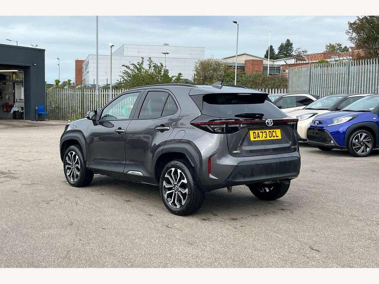 7" Multi information display screen, 8" Toyota touch 2 multimedia system with Smartphone integration with Apple CarPlay and Android auto, Adjustable speed limiter, Bluetooth connectivity, Driver attention alert system, eCall emergency system, Electric power steering, Full range intelligent adaptive cruise control, Hybrid system indicator, Key reminder warning, Lane trace assist, Multimedia, audio, telephone and voice recognition switches on steering wheel, My T Connected services, Pre-collision system enhanced with emergency steering assist, Reversing camera, Road sign assist - RSA, Steering assisted vehicle stability control, 6 speakers, DAB Digital radio, USB connection, 3rd brake light, Acoustic windscreen glass, Aluminium roof rails, Anti-jam protection on power windows, Auto high beam [AHB] with on/off switch, Automatic headlights, Black lower front grille, Black Shark-fin antenna, Black upper front grille, Black wheel arch mouldings, Body colour door handles, Body colour front bumper, Body colour rear bumper, Electric adjustable heated door mirrors, Follow me home headlights, Front and rear electric windows with auto up/down function, Front intermittent wipers, Headlight cut off reminder, Indicators integrated on door mirrors, Intermittent rear wiper, LED daytime running lights guide, LED front fog lights, LED front light guide, LED Indicators, LED projector headlights, LED rear light guide, Manual headlight levelling, Manually retractable door mirrors, Noise reduction layer on windscreen, Privacy glass, Rain sensor, Rear LED lights with sequential indicators, Rear side wing doors, Rear spoiler, Rear window defogger, 12v power outlet - front, 2x Rear coat hooks, 3 seat bench in 2nd row, 3 spoke leather steering wheel, 40:20:40 split folding rear bench seat, Adjustable speed limiter switch on steering wheel, Auto air conditioning, Black roof lining, Boot light, Central armrest, Centre console in light blue ambent lighting, Driver and front passenger personal lights, Fabric door trim, Fabric upholstery, Footwell in light blue ambient lighting, Front console box, Front cup holders, Front head restraints, Glovebox, Height adjustable driver's seat, Height adjustable front passenger seat, Hooks for luggage holding belts, ISOFIX child restraint system, Lane departure alert switch on steering control, Leather gearshift, Light blue ambient lighting on front doors, Manual telescopic and tilting steering wheel, Mirror on driver and passenger sun visor, Pollen air filter, Rear cup holders, Rear head restraints, Single front passenger seat, Soft tonneau cover, 3x3 point rear seat belts, ABS+EBD+Brake assist, Driver and passenger central airbags, Driver and passenger front airbags, Driver and passenger side airbags, Electronic parking brake, Emergency brake light system (EBS), Front seat belt reminder, Hill start assist control (HAC), Passenger airbag on/off switch, Pre-collision system with pedestrian and cyclist detection, Rear door child safety locks, Rear passenger side airbags, Rear seat belt reminder, Traction control, Tyre pressure warning system, Immobiliser, Intrusion alarm, Keyless smart entry with push button start, Power door locks, Power passenger window lock, Remote door lock, Tyre repair kit,