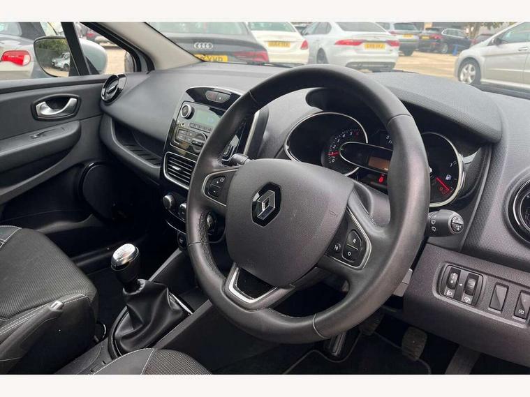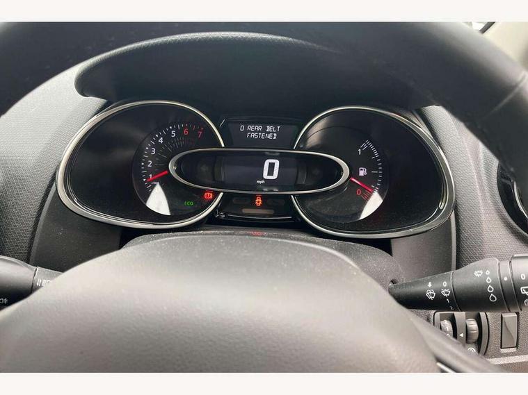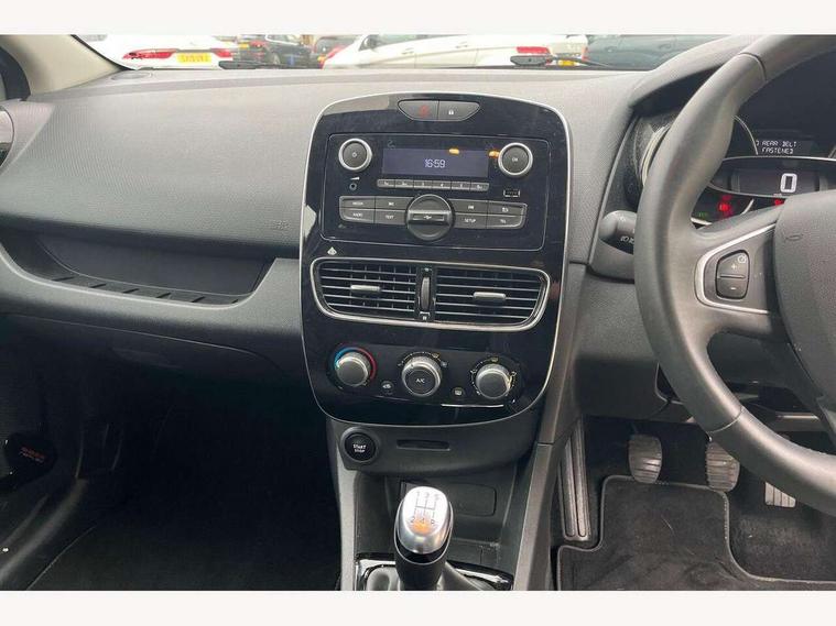 Bluetooth Handsfree Phone Connection, Cruise control + speed limiter, Eco mode, Push button starter, Smartphone cradle, Trip computer, Variable PAS, 2x20W radio with bluetooth hands free and USB, Aux-in socket, DAB Digital radio, Black headlamp surrounds, Body colour door handles, Body colour door mirrors, Body coloured bumpers, Body coloured rear spoiler, Chrome boot lid finisher, Chrome front grille strips, Drivers one touch window with anti-pinch feature, Electric adjustable door mirrors, Electric front windows, Front fog lamps, Gloss black door protectors with chrome inserts, Halogen headlamps, Heated door mirrors, LED daytime running lights, Rear wiper, Variable front intermittent wipers, 12V Accessory socket, 3 rear height adjustable headrests, 60/40 split rear seats, Air recirculation control, Chrome gear knob insert, Chrome interior door handles, Cloth upholstery/synthetic leather inserts, Driver's seat height adjustment, Front cupholders, Front door storage bin, Glovebox, Height adjustable front headrests, Height/reach adjust steering wheel, Isofix system on outer rear seats, Manual air conditioning, Multi function steering wheel, Pollen filter, Style cloth upholstery, System for Restraint and Protection SRP-front seats, 3 point seatbelts on all rear seats, ABS+EBD+Brake assist, Driver and passenger front and side airbag deactivation, Driver/Front Passenger airbags, ESP + Traction control + Understeer control, Front side airbags(head+thorax), Height adjustable driver's seatbelt, Hill start assist, Seatbelt warning, Tyre pressure warning, Anti-drill door locks, Child lock control of rear doors and windows, Deadlocking system, Hands free Renault card, Locking fuel filler cap, RAID (Renault Anti-Intruder Device) with automatic door locking, Remote central locking, Thatcham Cat 2 engine immobiliser, Grain black centre console, 16" Black alloy wheels, 16" Flex alloy wheels,