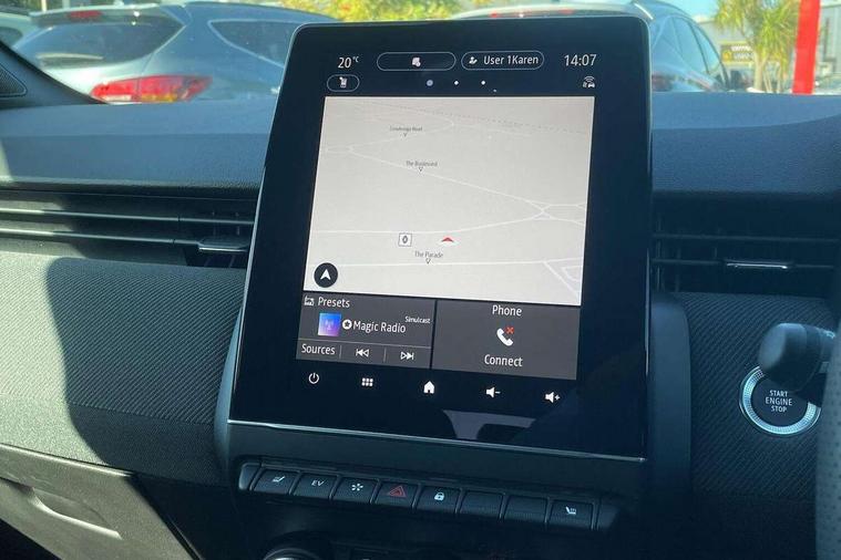 10" customisable digital driver display, Active cruise control with stop and go + speed limiter, Apple car play/Android Auto, Blind spot warning, Driver attention warning, Easy link 9.3" touchscreen with built in navigation + Wifi smartphone integration plus, Eco mode driving function, Emergency call system, Front park assist, Front parking sensors, Lane departure prevention, Lane departure warning system, Lane keep assist, Multisense 3 driving modes including ambient lighting, Over speed prevention, PAS, Rear cross traffic alert, Rear park assist, Rear parking sensors, Rear view camera, Saftey shield [button for personalisation configuration of key ADAS features], Start/stop system, Traffic sign recognition, Wireless phone charger, 2 USB ports, Arkamys speakers - x6 inc. 2 boomer, 2 tweeter and 2 bicone, Bluetooth, 1x jack, 1x aux socket, DAB/FM Radio, Automatic headlights, Automatic high / low beam, Automatic windscreen wipers, Black auto folding wing mirrors with defrosting and temperature gauge and LED indicator, Body colour bumpers, Body colour door handles, Electric rear windows, Electrically adjustable door mirrors, Electrochromatic frameless rear view mirror with light and rain sensor, Exhaust pipe, Exterior rear hidden door handles, Front and rear LED roof light x 2, Front fog lights, Full LED front and rear headlamps integrating daytime running lights at the front and rear, Heated rear windscreen, LED rear signature lighting, LED third brake light, Matte shadow grey F1 blade, One touch electric front windows, Rear brake light, Rear side wing doors, Rear wiper, Shadow grey insert on lower side doors, Shadow grey side window surrounds, Shadow grey upper grille, Shark fin antenna, Tinted rear windows, 3 rear height adjustable headrests, 3 seat bench in 2nd row, 60/40 split and fixed base rear seat bench, Aluminium pedals, Automatic air conditioning, Black armrests in door panel, Centre console armrest, Fabric seat with synthetic leather detailing upholstery, Floating console with storage, Heated front seats, Heated steering wheel, Height adjustable front headrests, Isofix system on outer rear seats, Mechanical height adjustable front seats, Power supply jack, Single front passenger seat, Sun visor without light, Top grain synthetic leather steering wheel with blue stitching, 3 point seatbelts on all rear seats, ABS, Automatic emergency braking system with emergency brake assist, Child locks on rear doors, Curtain airbags, Distance warning alert, Driver and passenger airbags, Electronic brake force distribution, Electronic parking brake with auto hold, ESC (Electronic Stability Control), Front passenger airbag deactivation, Front side airbags, Height adjustable passenger seatbelt, Hill start assist, Seatbelt reminder, Tyre pressure monitor, 2x Black keys, Hands free key card with push button, start and stop function, RAID (Renault Anti-Intruder Device) automatic door locking, Superlocking, Dark interior roof trim, 17" Esprit alpine diamond cut alloy wheels,