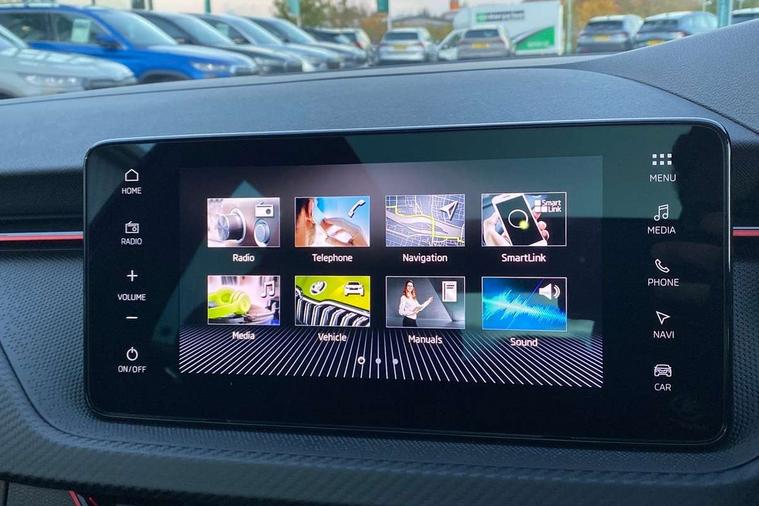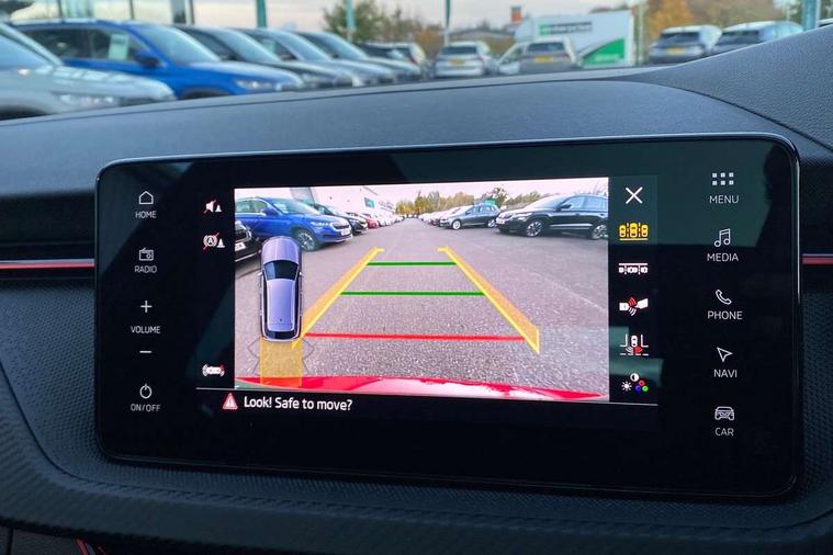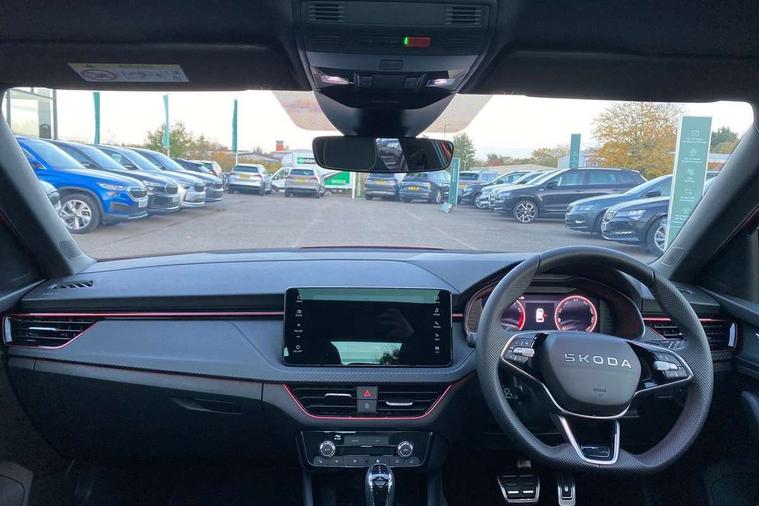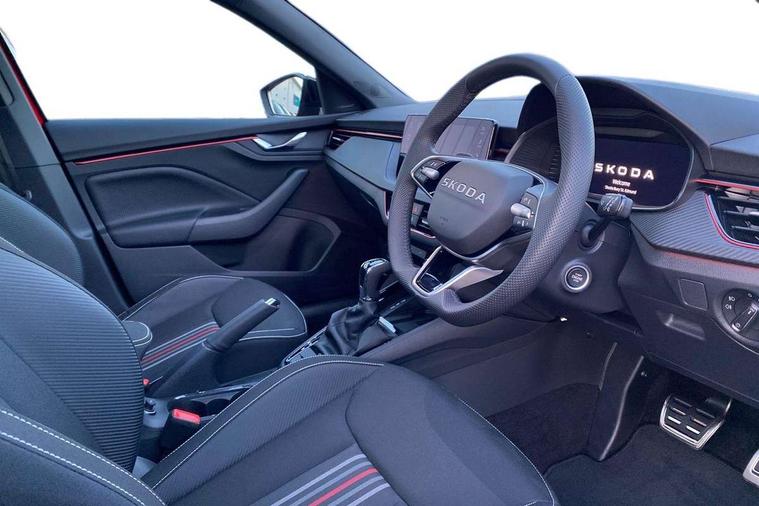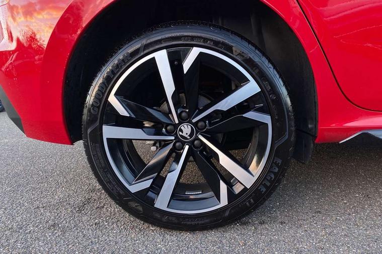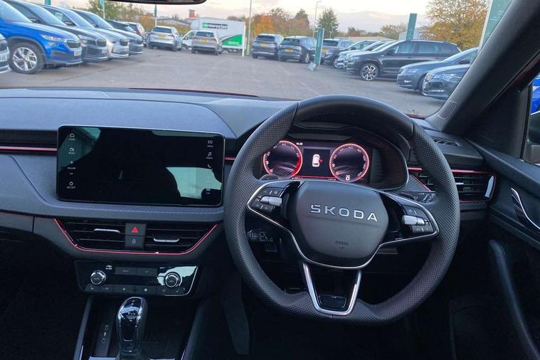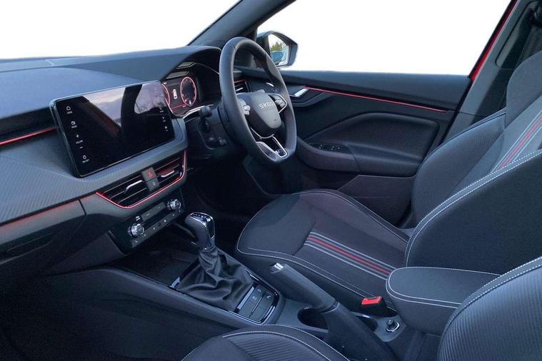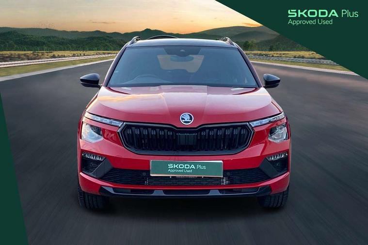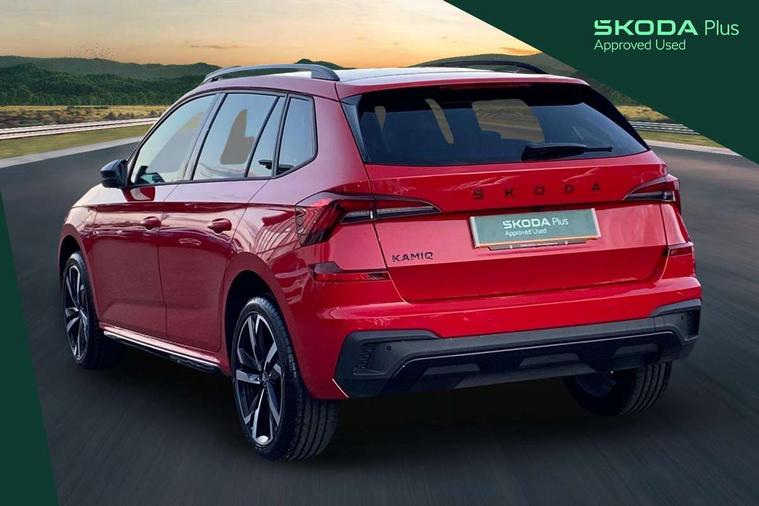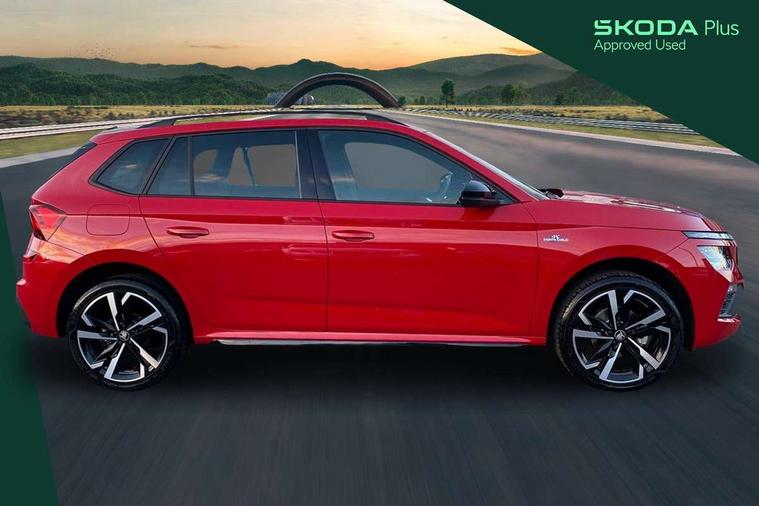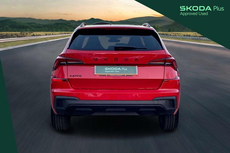 Advanced driver attention and drowsiness monitor, Bluetooth system, E-call, Front assist system, PAS, Rear parking sensors, Rear view camera, Service indicator, Speed limiter, Traffic sign recognition, Virtual cockpit with 10.25" display, Voice control system, Wireless smartlink, 4 USB C ports, 8 Speakers, 9.2" Skoda navigation display, DAB Digital radio, Auto dimming rear view mirror, Automatic headlight control with coming home and leaving home feature, Black door mirrors, Black radiator grille, Black rear diffuser, Black roof spoiler, Body colour bumpers, Body colour door handles, Boot lettering in black, Extended tailgate glass, Front and rear electric windows, Heated rear window, LED daytime running lights, LED high beam, LED low beam, LED third brake light, Light sensors, Monte carlo plaque, Panoramic sunroof with black roof rails, Privacy glass, Rear side wing doors, Rear wiper, Ticket holder inside windscreen, 12V socket in luggage compartment, 3 seat bench in 2nd row, Aluminium pedals, Ambient lighting in white/red, Art leather carbon decor inserts, Art leather carbon door inserts, Black roof lining, Cargo elements, Chrome inner door handles, Driver and passenger sun visors with vanity mirror, Dual zone climate control, Front and rear roof lights, Front centre armrest, Front head restraints, Glove compartment with illumination, Height adjustable driver seat, Height adjustable front passenger seat, Ice scraper, Inner circulation control with pollen filter, ISOFIX on front passenger seat, Isofix preparation for back seats, Leather gearknob and handbrake lever, Manual lumbar support for front seats, Monte Carlo cloth upholstery, Net package and top tether hooks in boot space, Net under rear shelf, Pocket on the back of both front seats include mobile phone pockets, Rake/reach adjustable steering wheel, Reading lights, Rear centre armrests, Red hotstamping, Single front passenger seat, Sports seats, Textile floor mats, Third rear headrest, Top tether for front passenger seat, Umbrella in driver's door, Light and view plus package - Kamiq, 3x3 point rear seatbelts, Airbags - driver and front passenger, Disc brakes, ESP, Extended and predictive pedestrian/cyclist protection, Front passenger airbag deactivation switch, Front side airbags with curtain airbags, Hill hold control, Manual leather parking brake, Manual rear child locks, One tone horn, Seatbelt reminder for driver an co-driver, Traction control, Tyre pressure monitor, Anti-theft alarm system with interior monitoring, backup horn, towing protection and remote central locking with SAFE system, Anti-theft wheel bolts, Electronic engine immobilizer, 18" Ursa black diamond cut alloy wheels,
