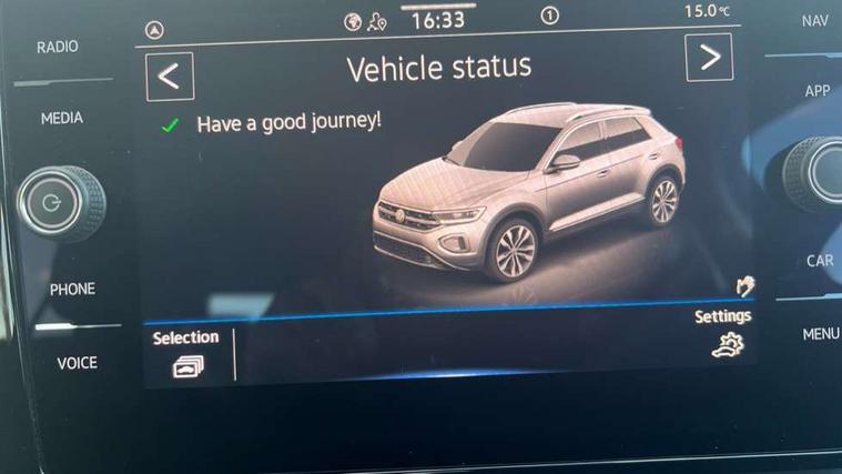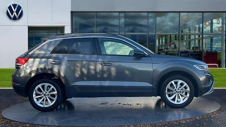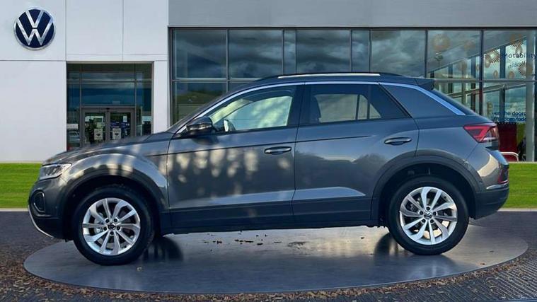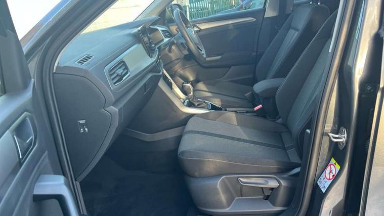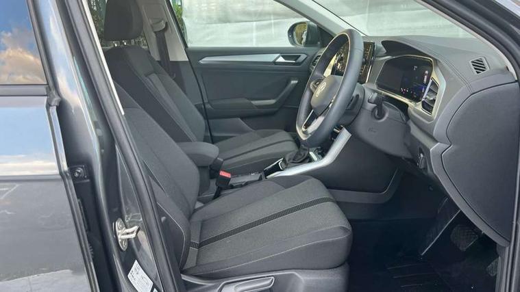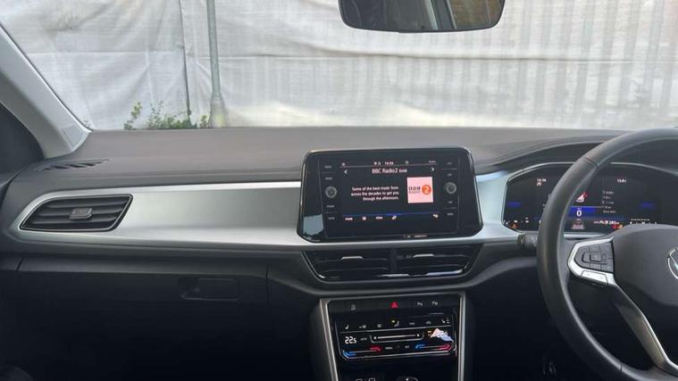 Advanced driver attention and drowsiness monitor, Dynamic road sign display, Emergency call service, Lane keeping system Lane Assist, Mobile phone interface, Modified key software - reduce switch off time for key status change to Long no motion, Online services, Park assist including front and rear parking sensors, Power assisted speed sensitive steering, Rear view camera, Service interval indicator, Tailgate/trunk lid release from outside, Think blue trainer driver tips and journey analysis, Warning sound and light for front seatbelts unfastened, Wireless app connect, Battery regeneration during braking, Front shock absorption, Rear shock absorption chassis with increased ride height, Start/stop function with battery regeneration, DAB Digital radio, Diversity antenna for FM reception, Front and rear 6 speakers, Music playback - MP3, WMA and AAC files, Premium USB cable in choice of either Apple or Android smartphone compatibility, SD card slot, Simultaneous pairing of 2 compatible mobile devices, Title and cover art display, We Connect and We Connect Plus functionality, Auto dimming interior rear view mirror, Automatic hazard lights activation under emergency braking, Automatic headlight control with LED separate daytime running lights with coming/leaving home function, Black roof rails, Body coloured bumpers and radiator grille with chrome trim and front fog lamps with chrome bezel, Body coloured exterior mirror housings and door handles, Electrically adjustable and heated door mirrors, Extended roof spoiler, Exterior mirrors aspherical on driver side, convex on front passenger side, External USB type C socket and charging sockets, Front windscreen wiper with intermittent wipe and 4 position delay, Heated rear window, LED 3rd brake light, LED rear combination lamps, LED rear number plate lights, Power windows with comfort operation and circuit breaker, Privacy glass for rear side windows and rear window, Rain sensor, Rear exhaust tailpipe, Rear fog light on one side and reversing lights on both sides, Rear side wing doors, Rear wash/wipe with intermittent wipe setting, Remote electrically foldable door mirrors, puddle lights and reverse activated passenger's door mirror, 12V power socket in centre console, 3 rear head restraints, 3 seat bench in 2nd row, 4 load lashing points in luggage compartment, Air care climatronic air conditoning system with active combination filter and 2-zone temperature control, Black stitching for floor mats, Ceramique roof liner, Cloth upholstery, Door and side trim panel in cloth, Drawer under drivers seat, Driver/front passenger seat height adjustment, Front centre armrest, Front comfort sports seats, Front cupholders x 2, Front reading light, Front seat back storage pockets, Glove compartment door with light, Instrument lighting, white adjustable panel illumination, Interior ambient lighting and surround lighting, Interior light delay, Isofix child seat preparation, Leather gearshift handle, Load-through provision with cup holder when folded down ('Unsplit rear seat bench, split folding backrest, with centre armrest), Luggage compartment lighting, Lumbar support for driver's and front passengers seat, Non-folding front passenger seat backrest, Single front passenger seat, Storage compartment in left and right luggage area, Storage compartment in rear doors, Storage compartments in driver and front passenger doors, Sunvisors with illuminated vanity mirrors, Variable boot floor, height adjustable and removable, Driver assistance pack without proactive passenger protection - T-Roc Life/Match, 3 point height adj front seatbelts + pretensioners, 3 point seatbelts in outer rear with ECE label, ABS, Child locks on rear doors, City emergency braking and pedestrian monitoring, Driver and front passenger airbag with front passenger airbag deactivation, Driver and front passenger safety-optimised head restraints, Drivers seatbelt reminder, Electronic parking brake, Electronic Stability Control (ESC) inc EDL (Electronic Differential Lock) and ASR (Traction Control), Front and rear passengers curtain airbag system including front side airbags, Front disc brakes, Hill start assist, Predictive pedestrian protection, Rear disc brakes, Two tone horn, Tyre pressure loss indicator, Volkswagen roadside assistance, Alarm with interior protection, Keyless locking and starting system keyless access with safelock, Pewter matt decorative inserts for intrument panel, centre console and door panels at the front, Trims for alloy wheels,