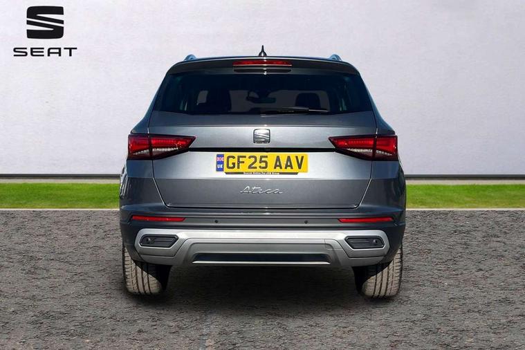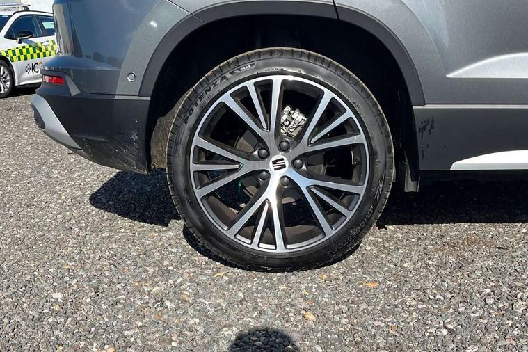 10" Digital cockpit, E-call, Electric tailgate with virtual pedal, Outside temperature gauge, Progressive power assisted steering, SEAT drive profile with driving experience button - Normal, Sport, Eco and Individual mode, gearshift, steering and throttle response, Self parking functionality (includes front and rear parking sensors), Start/stop system, Top view camera, Trip computer, wired and wireless full link smartphone integration, Wireless phone charger, Steering wheel mounted audio/phone controls, Black wheel arch surrounds, Body colour bumpers, Chrome front grille frame, Chrome roof rails, Chrome side window trim, Dark tinted rear windows, Daytime running lights, Door mirrors with welcome light silhouette, Dynamic headlight range control with self adjusting whilst driving, Electric adjustable/heated/folding door mirrors, Front and rear electric windows, Front grille hot stamping, Full LED headlamps with lens and LED front fog lamps with cornering function, Heat reflecting windscreen, Illuminated aluminium front door sill, LED 3rd brake light, LED rear tail lights with dynamic indicators, Rear exhaust tailpipe, Rear fog lights, Rear side wing doors, Rear wash/wipe, Reflex silver side mouldings, Variable front intermittent wipers, 12v socket in front, 3 seat bench in 2nd row, 60/40 split folding rear seat, Drawer under right front seat, Dual zone climate control, Front and rear head restraints, Front centre armrest, Front seat back storage pockets, Heated front seats, Heated steering wheel, Height adjustable driver and passenger seat with lumbar adjustment, ISOFIX points in outer rear seats with top tether anchorage points, Leather sports steering wheel and gear knob, Leather upholstery with front comfort seats, Rear armrest and easy back seat release mechanism from boot, Single front passenger seat, Steering wheel mounted gearshift paddles, Convenience pack - Ateca, Interior lighting pack - Ateca, Navigation system pack with DAB - Ateca, Safety and driving pack (L) - Ateca, Safety and driving pack with attention and drowsiness assist - Ateca, 3x3 point rear seatbelts, ABS, Traction control system (TCS), Electronic stability control (ESC) and Electronic differential lock system (XDS), Airbags - Driver and front passenger airbag with deactivation, front side, two curtain and driver's knee airbags, Electric parking brake with auto hold function, Front and rear seatbelt reminder, Hill hold control, Manual rear child locks, Single tone horn, Tiredness recognition system, Tyre pressure monitoring system, Alarm, Keyless entry, Locking wheel bolts, Remote central locking, Chrome interior detailing, 19" Exclusive machined alloy wheels 36/4 in nuclear grey,