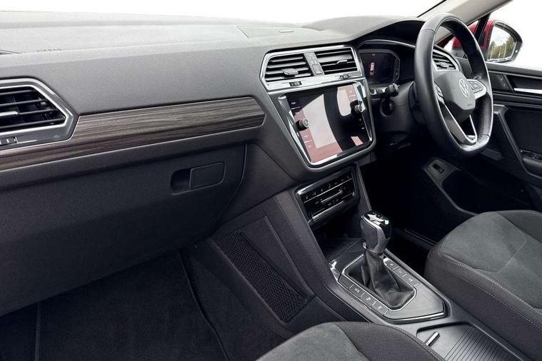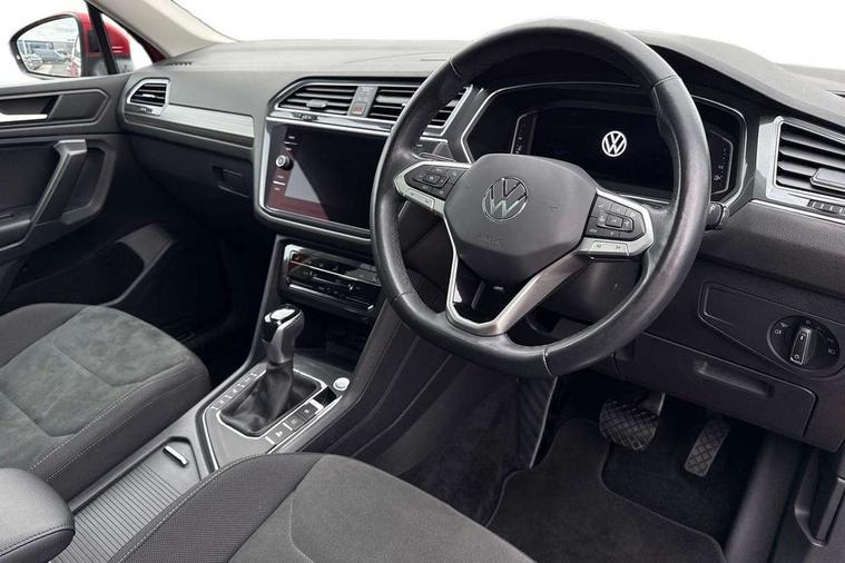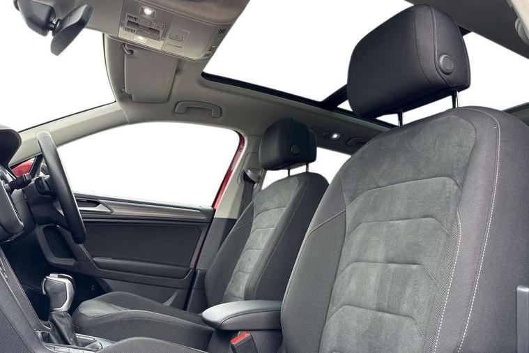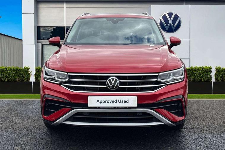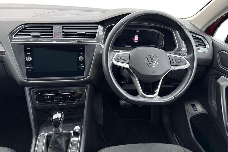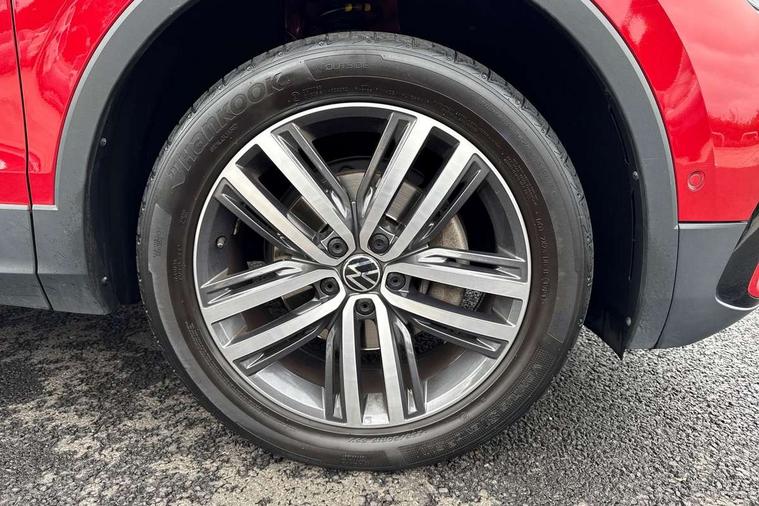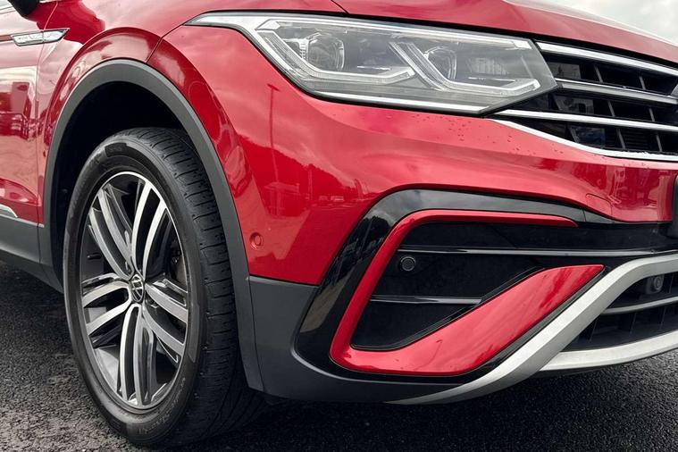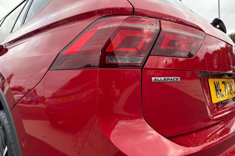 Adaptive cruise control, App-Connect, Digital cockpit pro, Driver alert system, Driver profile selection, Dynamic road sign display, eCall emergency call service, Electric boot lid, Lane change system side assist and rear traffic alert, Lane keeping system Lane Assist, Mobile phone interface comfort with inductive charging feature, Multifunction front facing camera, Power assisted speed sensitive steering, Speedo and rev counter, electronic odometer, trip, service interval display and exterior temperature gauge, Front wheel drive, Start-stop system with battery regeneration (recuperation - energy recovery during braking), 2 USB-C ports in the front, 1 USB-C charging socket on the center console in the rear, DAB Digital radio, Diversity antenna for FM reception, Radio, Auto dimming interior rear view mirror, Automatic headlight control system, Body coloured comfort bumpers, Chrome mouldings on side window, Coming/leaving home lighting function, Exterior badge deletion, Exterior mirror housings painted in silver, Heated windscreen washer jets, IQ light adv HBC, dyn light assist LED matrix headlamps, DH range, dark red LED rear combo light, poor weather, CL, LED headlamp with LED DRL and DCL - PXC, Privacy glass, Rain sensor, Rear fog light, Rear side wing doors, Rear wiper, Silver roof rails, Third brake light, Tilting and sliding panoramic sunroof, 12-volt outlet in centre console rear and luggage compartment, 12V socket in centre console, 3 head restraints in rear, 3 individual folding 2nd row seats, 3rd row 2 individual seats, Air Care Climatronic 3 zone automatic climate control with enhanced air filter and controls in the rear, Door and side trim panel, Drawers under front seats, Driver and front passenger seat height adjustment, Foldable front passenger seat backrest, Front + rear carpet mats, Front centre armrest, Front footwell illumination, Heated front seats, Illuminated scuff plates, ISOFIX anchorage points for mounting 2 child seats on rear seats and i-Size child seats, Leather gearshift handle, Leather-wrapped heated multi-function steering wheel with paddle shift, LED interior light with switch off delay/dimmer and 2 front/rear LED reading lights, Sun visors with illuminated vanity mirrors, Ambience pack - Tiguan Allspace, Easy open and close pack with safelock - Tiguan Allspace, Park assist pack - Tiguan Allspace, 3 point seat belt for centre rear seat, 3 rear three point seatbelts, ABS+EBD+Brake assist, Driver and front passenger safety-optimised head restraints, Driver's and front passenger's airbag with front passenger's airbag deactivation switch, Electronic parking brake, Electronic Stability Control (ESC) inc EDL (Electronic Differential Lock) and ASR (Traction Control), Height adjustable front 3 point seatbelts + pretensioners, Manual rear child locks, Pedestrian monitoring, PreCrash preventive occupant protection Front and rear, Rear disc brakes, Side airbag in front and rear with curtain airbag, Two tone horn, Warning buzzer for seatbelts if unfastened, Anti theft alarm system with interior monitoring, backup horn and towing protection, Anti-theft wheel bolts, Electronic steering lock, Remote central locking with 2 remote folding keys, Chequered flag tinanium decorative inserts,