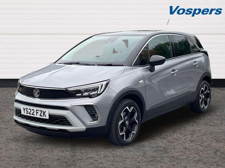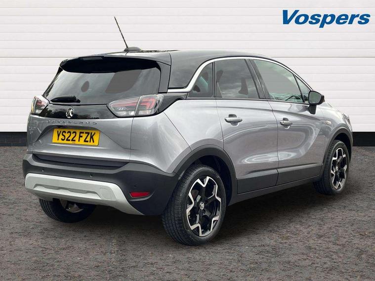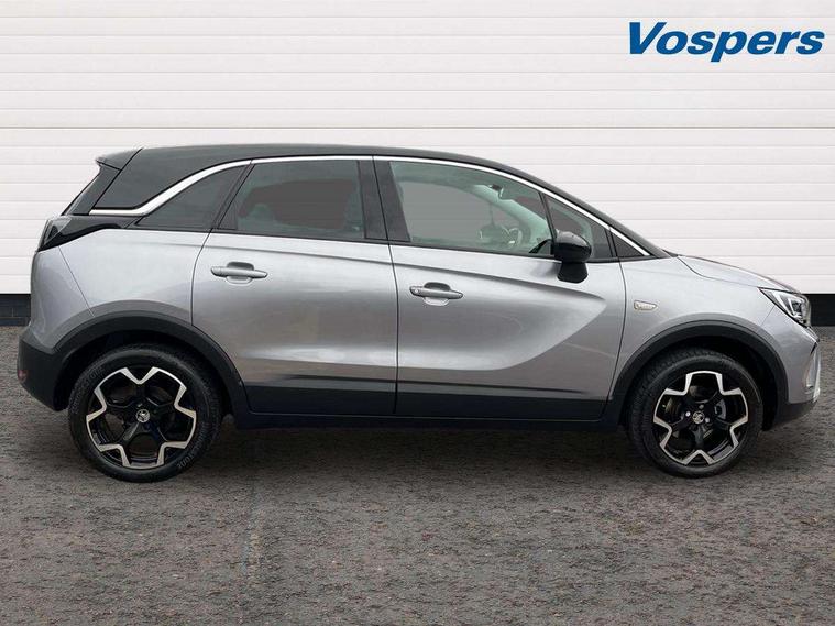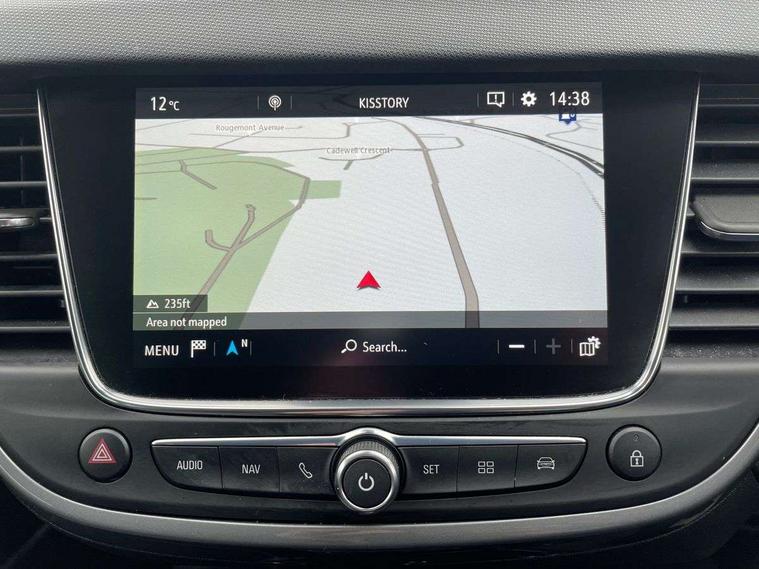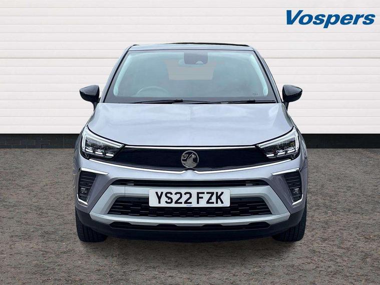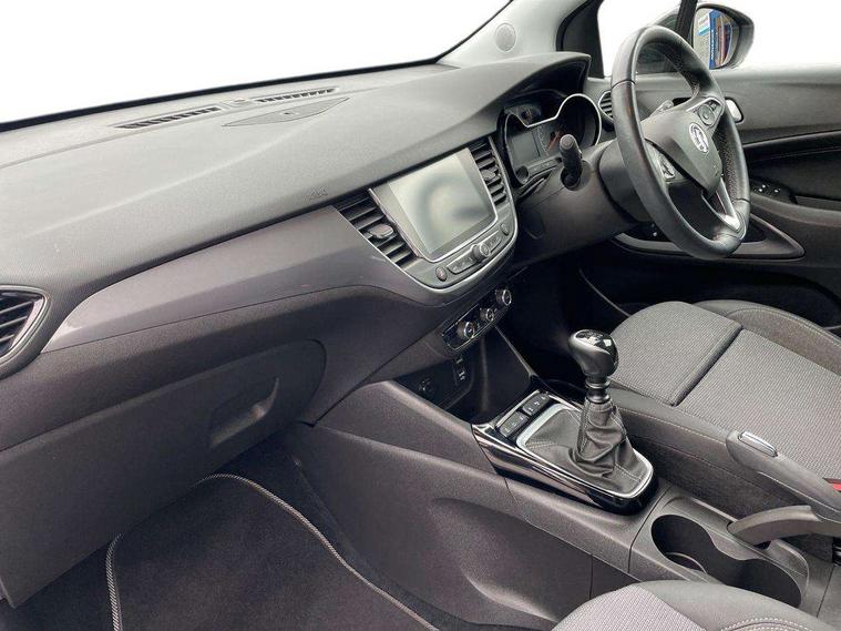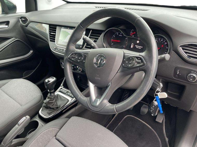 3.5" monochrome instrument colour display, Audible lights on warning, Bluetooth connectivity, Cruise control + speed limiter, Digital clock with automatic RDS time adjustment, Driver drowsiness alert system, E-call, Forward collision warning, Instrumentation - Speedometer, rev counter, low fuel gauge warning light + water temperature gauge warning light, shift up/down indicate light, Lane departure warning system, Multi function trip computer, Multimedia sat nav pro with 8" colour touchscreen, AM/FM, Bluetooth streaming, Bluetooth mobile phone portal, apple CarPlay/Android Auto + 6 speakers, Outside temperature display with ice warning, Refridgerant low indicator, Service interval indicator, Speed sensitive power steering, Speed sign recognition, Vauxhall connect, Front wheel drive, 2 x USB connections, DAB Digital radio, Steering wheel mounted audio/phone/cruise controls, 2 speed wipers/wash wipe/intermittent wipe, Alloy effect front and rear skid plates, Automatic anti dazzle rear view mirror, Automatic headlamp levelling system, Automatic high beam control with cornering light, Automatic lighting control, Black door mirror housings, Black radiator grille with chrome bar, Black roof, Body colour door handles, Body colour front and rear bumpers, Chrome effect upper window moulding, Dark tinted rear side windows + tailgate window, Electrically adjustable and heated door mirrors, Front power windows with express up/down and anti-pinch function, Hazard warning lights, Headlamps for left side traffic, Heated rear window, Integrated tailgate spoiler, Intermittent rear wash/wipe, LED daytime running lights, LED front fog lights, LED Headlights, LED side repeat indicators, LED tail lights, Rain sensitive windscreen wipers, Rear fog lights, Rear power windows with express up/down and anti-pinch function, Rear side wing doors, Rear wing door, Reversing light, Side window demist vents, Solar heat absorbing windscreen and windows, Third brake light, Welcome lighting, Windscreen demist vents, 12v power outlet - front, 2 way adjustable front passenger seat, 2 way front passive headrests, 3 rear seats, 3 spoke flat bottomed leather covered steering wheel with bezel decoration, 4 way electrically adjustable lumbar support for drivers seat, 60/40 split folding rear seat backrest, Adjustable rear seat backrest, Air recirculation facility, Ambient lighting, Anti submarining ramps in front seats, Cabin particulate filter - removes dust, airborne particles and pollen, Centre console, Driver and front passenger illuminated vanity mirrors with flip up covers, Driver's seat armrest, Drivers ergonomic active seat with 8 way manual adjustable driver seat , height, reach and backrest, Dual zone electronic climate control, Fade up/fade down on interior lighting, Four adjustable facia vents, Front door pockets with bottle holders, Front map reading lights, Fully carpeted luggage area, Glovebox with lid, Height adjustable front/rear head restraints, Illuminated load area, Interior courtesy light operated by all doors, Isofix system on outer rear seats, Jet black premium leather side bolsters, Luggage compartment cover, Multi-speed fan with Illuminated control, Open storage compartment in centre console, Passenger assist handles, Reach + rake adjustable steering column, Rear centre headrest, Rear door pockets with bottle holders, Rear floor ventilation ducts, Rear reading lights, Satin chrome effect bezel on steering wheel, Seat cushion extension, Single front passenger seat, Sparkle cloth/vinyl upholstery, Storage pockets on front seat backs, Two drinks holders in centre console, Rear view camera plus pack - Crossland, Winter pack - Crossland, 3x3 point rear seatbelts, 6 airbags - Driver and co-driver front, front side, head curtain roof airbags, front and rear row coverage airbags, ABS, Automatic emergency braking with pedestrian detection, Child locks on rear doors, CSC - Cornering stability control, Deactivate switch for side impact airbags, Deformation zones front and rear, Dual seatbelt pretensioners on front seats, EBD - Electronic brakeforce distribution, Energy absorbing steering column, Engine drag torque control, ESP + traction control, Front and rear seatbelt unfastened audible warning and warning light, Front side impact airbag, Hill start assist, Hydraulic Brake Assist (HBA), Hydraulic brake boost, Inertia reel lap and diagonal seatbelts for all seats, Passenger airbag deactivate switch, Pedestrian detection, Rear seat belt pretensioners, Reinforced passenger safety cell, Seatbelt load limiter, Side impact protection beams, Smart seatbelt reminder for front and rear seats, Tyre pressure monitoring system, 2 remote folding keys, Electronically protected audio equipment, Engine immobiliser, Locking wheel nuts, Remote central deadlocking, Remote control central locking activation switch on driver door, Remote control central locking operates on doors, tailgate and fuel filler flap, Remote security alarm system, Visible vehicle identification number, Black facia with silver trim insert, Black trim inserts on front doors, Cluster black with chrome rings, 17" five twin spoke diamond bi colour alloy wheels,