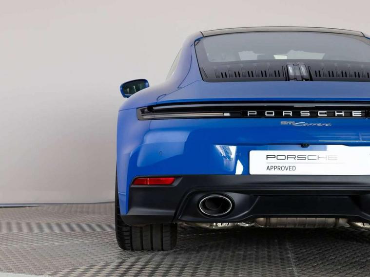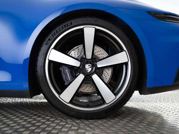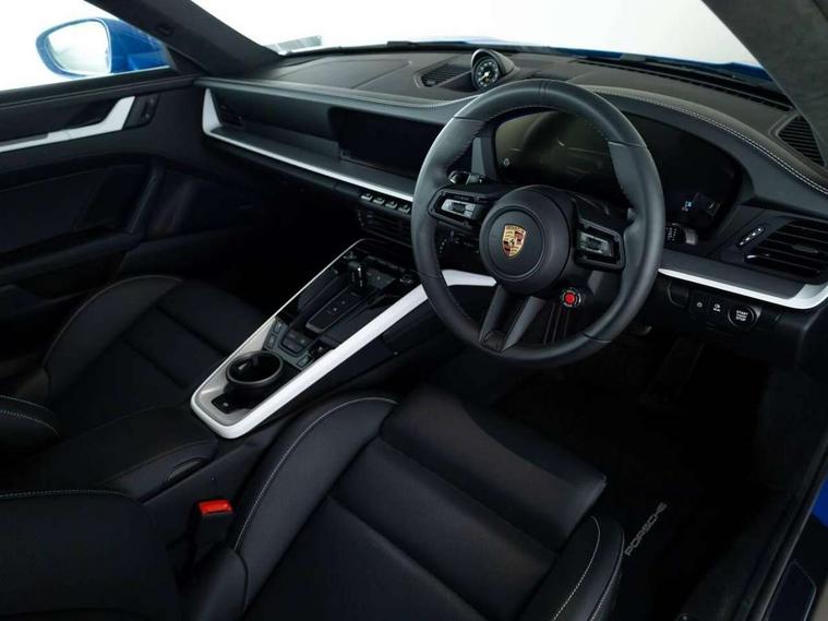Apple CarPlay, Automatic start/stop system, Driver awareness detection, Emergency call systems eCall and bCall, Gear indicator in rev counter, Lane keep assist, Navigation High, Smartphone compartment with wireless charging up to 15 W, Sports and WET Mode, Stationary management with HOLD function, Traffic sign recognition, Voice control, Warn and brake assist including pedestrian protection, 3.0 liters 6-cylinder boxer engine with twin-turbo, 63 litre fuel tank, 8 Speed Porsche Doppelkupplung (PDK), Porsche Active Suspension Management (PASM), Rear wheel drive, Two gasoline particulate filter, DAB Digital radio, 3rd brake light, Automatic headlight activation including welcome home lighting, Automatically dimming interior and exterior mirrors with integrated rain sensor, Badge on air intake grille, Door handles painted in exterior colour, Electric folding door mirrors with courtesy lights, Fuel/charging cover, Heated rear windscreen, LED daytime running lights, Model designation on rear trim in Light silver, Rear boot, Rear diffusor in louvered design, Rear lid grille with vertical slats in high gloss black, Trim on side skirts in black, Windscreen washer system with aero wiper blades and washer jets, 2-seater with rear engine layout, Delete quilting, Deletion of model logo embossed on headrests, Driver and front passenger illuminated vanity mirrors, Front head restraints, Heated front seats, ISOFIX fastening system, Leather door panel and central armrests, LED footwell lights, LED glove compartment lighting, LED ignition light, LED luggage compartment lighting, LED orientation light, LED reading lights, Lockable glove compartment, Particle/pollen filter with active carbon filter, Single front passenger seat, Steering wheel with manual fore/aft and height adjustment, Two zone auto climate control, USB-C fast charging, Light design package - 911, Sound pack plus - 911, 3 point automatic seatbelts, Airbags, Brake system with brake calipers in black, Electric parking brake, Passenger airbag deactivation, Pedestrian safety, Seat belt warning system for driver and front passenger and rear seat system, Seatbelt pretensioners, Tyre pressure monitoring system, Warning triangle, Alarm system with interior surveillance, Alcohol interlock preparation, Anti-theft wheel bolts, Comfort access system, Keyless drive, Porsche vehicle tracking system (PVTS Plus), Preparation for Porsche Dashcam, TPM valve in silver, Tyre sealing compound and electric air compressor kit,