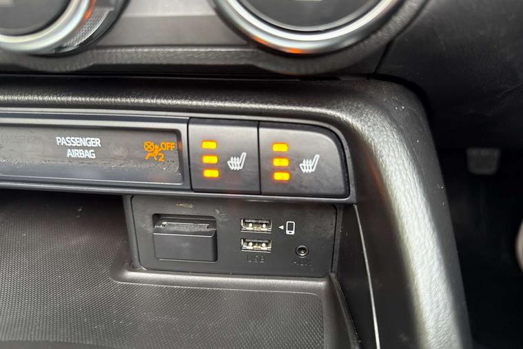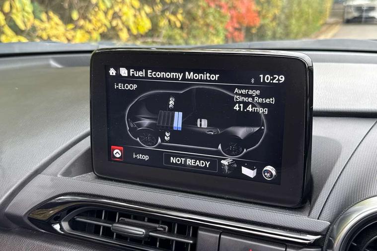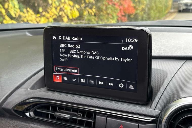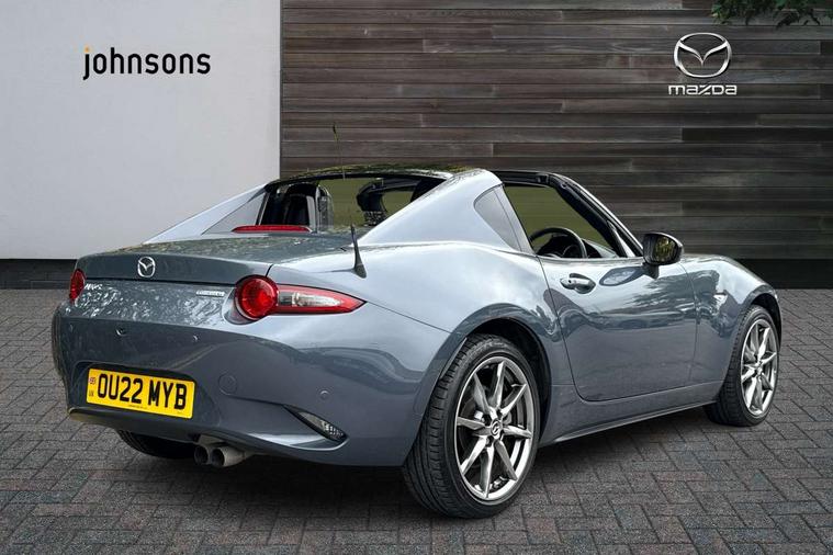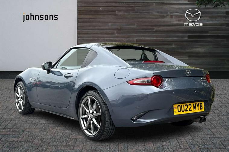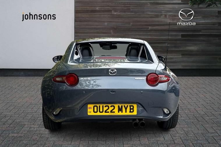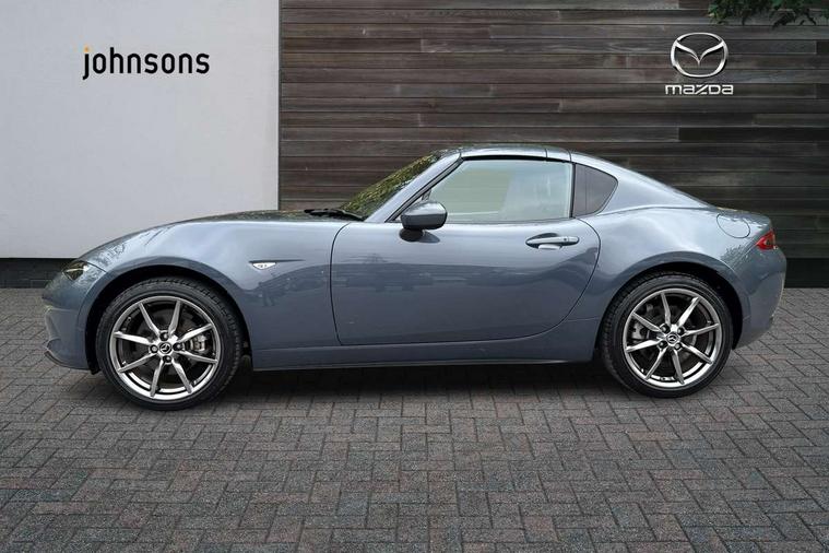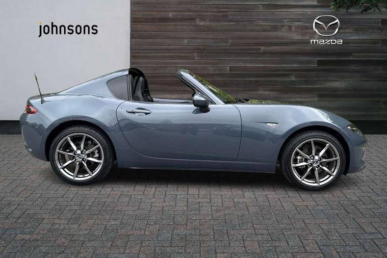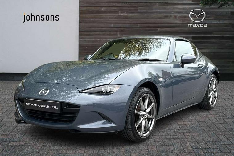 7" colour touch screen with Mazda connect infotainment, Aha and stitcher app, Analogue speedometer, Apple car play/Android Auto, Blind spot monitoring with rear cross traffic alert, Cruise control + speed limiter, Driver alert system, eCall emergency call system, Emergency stop signalling system, Engine start/stop button, Hands free phone preparation, Integrated bluetooth with hands-free calling, bluetooth audio and easy access to phone contacts, Integrated navigation system, Lane departure warning system, Multi dot display tachometer and electric odometer, PAS, Rear parking sensor, Reversing camera, Service indicator, Traffic sign recognition, Trip computer, Water temperature gauge, I-ELOOP, i-stop, Limited slip differential, Sports suspension featuring Bilstein dampers, 2 USB/aux input socket, Multimedia Commander including separate volume dial, Premium Bose sound system with 9 speakers with 2 in each front headrest, AM/FM/DAB radio and MP3, Steering wheel mounted audio/bluetooth controls, Adaptive LED Headlights, Auto dimming rear view mirror, Automatic headlamp levelling, Black scuff plates with stainless steel insert, Body colour bumpers, Body colour co ordinated interior upper door trim, Body coloured electric/heated door mirrors, Coming/leaving home lighting function, Dual exhaust pipes, Dusk sensitive headlamps, Electric front windows/one touch facility, Electrically operated body colour retractable hard top with heated rear glass window, High mounted rear brake light with Black coloured cover, LED 3rd brake light, LED daytime running lights, LED indicator lights, LED rear lights, Piano Black fashion bars, Rain sensing front wipers, Rear boot, 12V socket, Centre console storage box, Chrome Air conditioning dials, Climate control air conditioning, Coin Box, Driver and front passenger sunvisors with covered vanity mirror and driver ticket holder, Driver seat manual slide, recline and tilt adjustment, Front centre armrest, Front head restraints, Gear shift indicator, Heated front seats, in 3 heat levels, Interior courtesy light, ISOFIX front passenger seat child seat compliance, Leather gear knob, Leather handbrake lever, Leather steering wheel, Lockable rear centre box with lid, Passenger seat + manual slide/recline adjust, Perforated leather upholstery, Side door trim in black vinyl with silver stitching, Single front passenger seat, Sports seats, Strut brace, Tilt/telescopic steering column, Transparent windblocker, Two cupholders, 3 point ELR front seatbelts with pretensioners, ABS+Electronic Brake force Distribution, Deployable Hood System (DHS), Driver and front passenger airbags, Driver and passenger seatbelt reminder audible warning, Front dynamic yaw stability control, Hill hold assist, Passenger airbag deactivate switch, SCBS - Smart City Brake Support, rear plus front with autonomous emergency braking, Side airbags, Traction control, Tyre pressure monitor, Remote central locking with deadlocking and remote boot release, Smart keyless entry, Superlocking, Thatcham category 1 alarm + immobiliser, Chrome air vent surrounds, Chrome meter rings, Dashboard panel - vinyl leather Black, 17" Bright Silver alloy wheels, Tyre puncture repair kit,