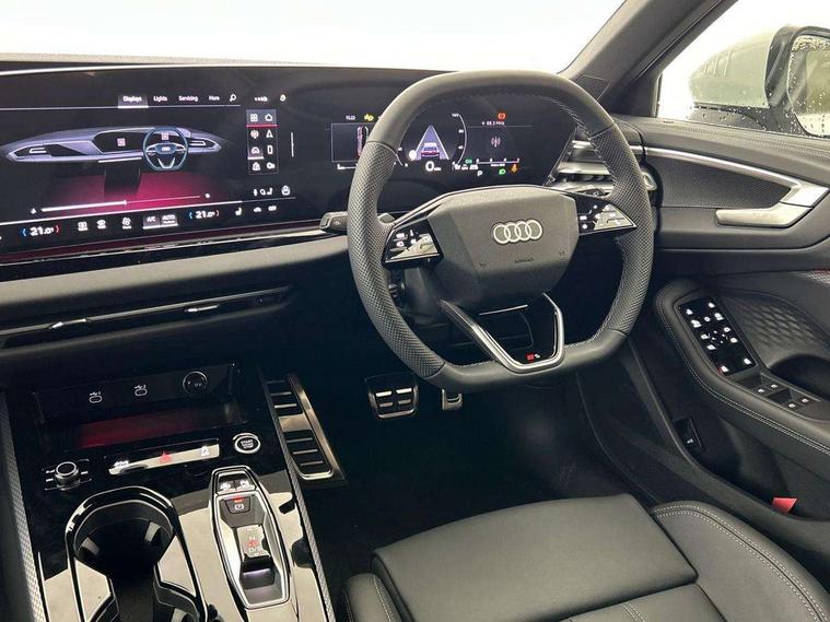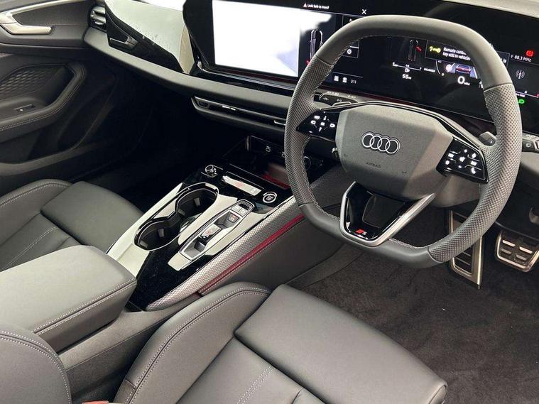 Adaptive cruise control, Advanced driver attention and fatigue montior, Audi application store, Audi assistant, Audi connect emergency call and service, Audi drive select, Audi smartphone interface, Audi virtual cockpit plus with 11.9" OLED colour display, Automatic start/stop system with coasting functionality, Camera based traffic sign recognition, Intersection assist, Lane departure warning, MMI navigation plus with high resolution 14.5" OLED touchscreen colour display, Park assist plus, Parking system plus with 360 display, Progressive steering with servotronic, Rear view camera, Swerve assist and turn assist, Traffic sign based speed limiter, Sports suspension lowered by 20mm, 2 USB-C ports in both the front and rear, Audi sound system impressive sound with 10 loudspeakers including centre speaker and subwoofer, 6-channel amplifier with a total output of 180 watts, DAB digital radio reception, Smartphone compartment with wireless charging, Aluminium roof rails, Aluminium window trims, Auto dimming rear view mirror, Body colour door mirrors, Door mirrors - electrically adjustable, heated, folding and auto dimming on both sides, Front and rear electric windows, Front door sill trims with aluminium inlays, illuminated with 'S' logo, High beam assist, LED headlights Plus incl. digital daytime running lights, turning light, all-weather light, motorway light, manouevring light and intersection light, LED rear lights pro incl. dynamic rear indicators and illuminated light strip with animated coming and leaving home function, LED third brake light, Privacy glass, Rear and side windows with heat insulating glass, Rear side wing doors, Rear wash/wipe, S Line badges on the front wings, S line bumpers, radiator grille and diffuser in phantom black and diffuser insert in matt anthracite, White rhombus logo projection light in exterior mirrors, Windscreen with acoustic glazing, 3 rear headrests, 3 seat rear bench, 3 spoke leather steering wheel with multi-function buttons with touch control, flattened on top and bottom, with S badging and contrast stitching, 3-zone automatic climate control, 40:20:40 split folding rear seat bench with centre armrest and cup holders, Comfort front centre armrest, Front and rear floor mats, Front seats with manual adjustment for position and 4-way electric lumbar support, Front sport seats with integrated headrest and S embossed logo, Headlining in black cloth, Heated front seats, i-Size child seat mounting on the front passenger side and outer rear seats, i-Size and top tether on the outer rear seats, Luggage compartment lid, electrically opening and closing, Manual steering column height and depth adjustment, Single front passenger seat, Stainless steel pedals and footrest, Steering wheel grips in perforated leather and shift paddles, Ambient lighting package plus - A5, 3x3 point rear seat belts, Driver airbag, Electric child safety locks, First aid kit with warning triangle and vests, Front emergency brake assist, Front passenger airbag, Front passenger airbag deactivation, Front side airbags with head airbag system and front interaction airbag, Hill hold assist, Seat belt monitoring with rear seat occupant reminder, Tyre pressure loss indicator, Anti theft alarm, Anti-theft wheel bolts, Keyless Go, Accent surfaces and control buttons in gloss black, Black dashboard with contrast stitching, Inlays in matt brushed aluminium with linear embossing, anthracite, Softwrap in leatherette with contrast stitching, Upper and lower interior elements in leatherette, Tyre repair kit,