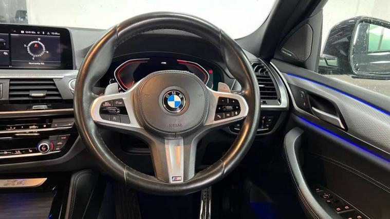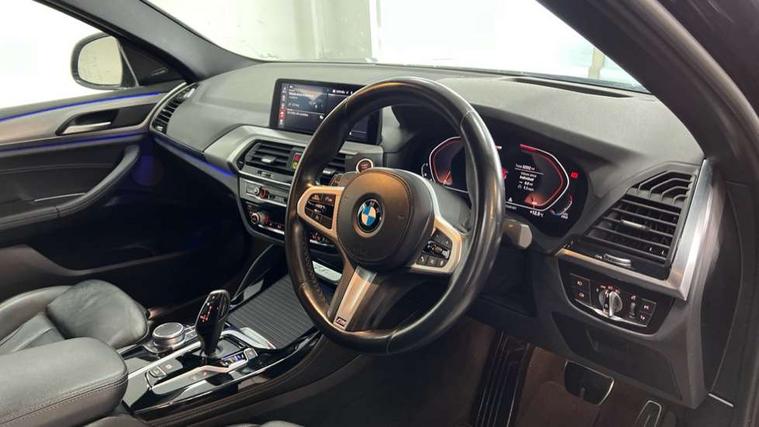 Attentiveness assist, Auto start-stop, Automatic tailgate operation, BMW Live Cockpit Professional with 12.3" instrument display with Intelligent Voice Assistant, BMW Online services, BMW professional navigation with 10.25" touch display, BMW Teleservices, Brake pad wear indicator in front and rear, Check Control warning system for monitoring of lights and door/luggage compartment open warning, Condition based service, Exterior temperature gauge, iDrive Controller with 8 favourite buttons, Instrument cluster with speedometer with mph readout, tachometer, fuel gauge and oil temperature gauge, Lights on warning by audio warning signal when ignition is switched off, On board computer, Optimum shift indicator, Personal Profile, Run flat indicator, Service interval indicator, Variable sports power steering, Automatic transmission with gearshift paddles, Diesel particulate filter, Drive performance control with ECO PRO comfort + sport mode, Five link rear suspension, Larger capacity fuel tank, M sport suspension, Performance Control, BMW professional radio/CD/MP3, DAB Digital radio, Acoustic glass, Automatically dimming electrochromatic rear view mirror, Black finish on B pillars, Body colour door handles, Body colour mirror caps, Body colour roof mouldings, Body coloured bumpers, Chrome kidney grille with high gloss black vertical slats, Direction indicator, side repeaters, integrated in exterior mirrors, Dynamic brake lights, Electric front and rear windows with fingertip open/close + anti-trap facility and comfort closing function, Exhaust tailpipes - dual, round, split left and right with chrome finisher, Exterior mirrors - electrically folding with anti-dazzle, Front and rear bumper system, Full LED L shape 3D tailights, Green tinted heat insulating glass, Heated windscreen washer jets, High gloss black door sill finishers, High gloss shadow line exterior trim, Interior rear view electrochromatic mirror with automatic anti dazzle function, LED daytime running lights, LED fog lights, LED High level third brake light, LED Indicators, Lightweight engineering, M aerodynamic bodystyling, M designation side exterior badges, Model designation, Rain sensor including auto headlights activation, Satin aluminium exterior trim, Shark fin antenna, Visible VIN plate, Welcome light carpet, Windscreen wipers with adjustable interval, 12V Accessory socket in centre console, 3 zone automatic air conditioning, Ambient lighting, Anthracite headlining, Front and rear bottle holders integrated into door trim storage compartments, Front and rear side armrests integrated into door trim, Front centre armrest with storage compartment, Front cupholders x 2, Front sports seats, Front/rear reading lights, Gearshift paddles on steering wheel, Height adjustable front/rear head restraints, Interior lighting - front centre over interior mirror with soft light, rear centre and front and rear footwell lighting, Leather gear knob, Luggage compartment lighting, M Sport multifunction leather steering wheel, Reach + rake adjustable steering column, Rear centre armrest with 2 cupholders, Removable rear parcel shelf, Storage compartment in rear centre console, front and rear door trims and under luggage compartment, Storage compartment lighting in front center armrest, Sunvisors with vanity mirrors and ticket pocket, Three rear headrests, Through loading system with 40/20/40 split folding rear seat, Toolkit located in luggage compartment, Connected Package Professional - X4 M Sport/M Sport X, 3 rear seatbelts, ABS/EBD, ADB - Automatic Differential Brake, Automatic door lock when driving away, Automatic Stability Control (ASC), Battery safety cut-off, BMW emergency call, Brake drying, Brake energy regeneration, Braking pre-tensioning, Child proof locking system in rear door, Child seat ISOFIX attachment rear outer seats, Cornering brake control (CBC), Crash Sensor - activation of central locking release, hazard warning light and interior lighting, Deactivation of fuel pump in the event of a crash, Driver/front passenger airbag, Driver/front passenger side airbags, DSC - Dynamic Stability Control, Dynamic brake control, Dynamic Traction Control - DTC, Electromechanical parking brake, Front and rear head airbags, Front and rear pre-tensioning and force limiting seatbelts, Front passenger airbag deactivation, Front seat belts warning, Hill descent control, Hill start assist, Side impact protection, Twin horns, Tyre pressure monitoring system, Ventilated front and rear disc brakes, Warning triangle and first aid kit, Central locking switch for all doors, fuel filler cap and luggage compartment, Incorrect fuel protection system, Remote control including two integrated key - one button for open/close all lockable content, windows and separate button for open luggage compartment, Remote control Thatcham category 1 alarm, Start/stop button with comfort go keyless engine start and auto start stop deactivation button, Reduced rolling resistance tyres,