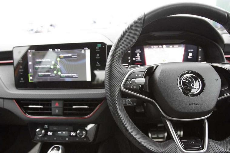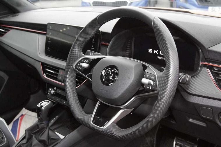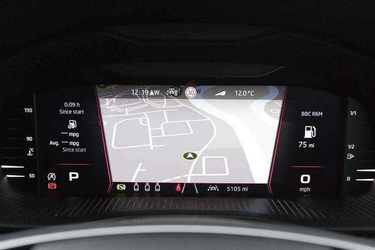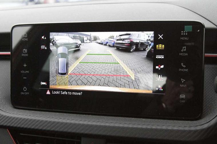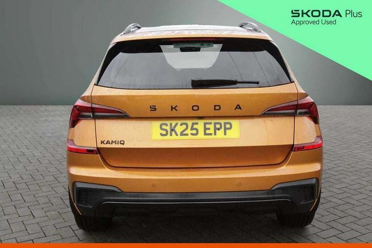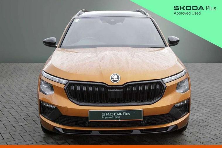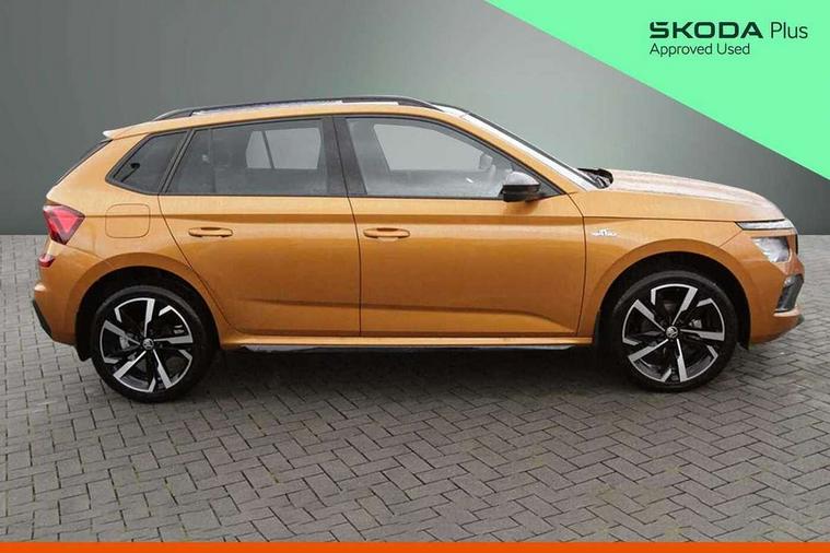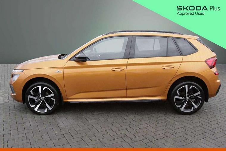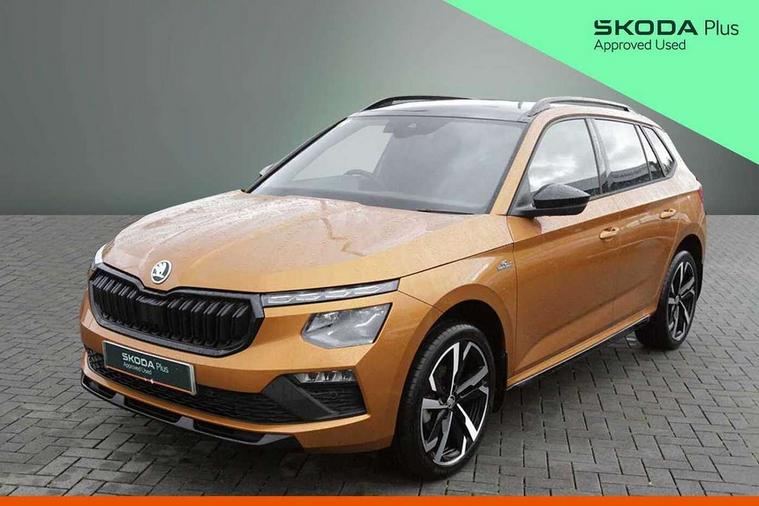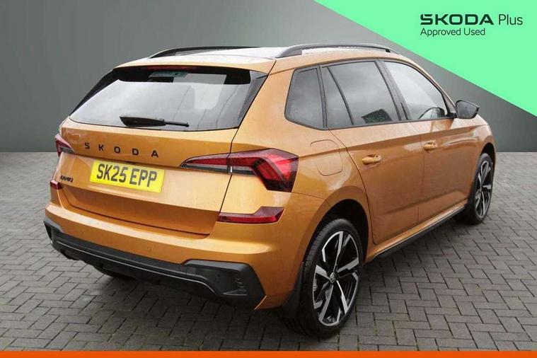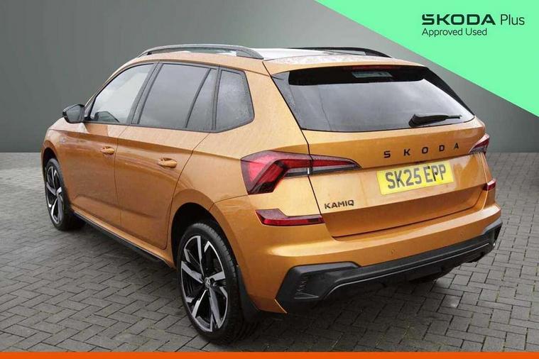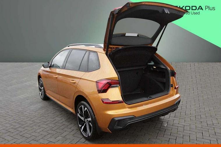 Advanced driver attention and drowsiness monitor, Bluetooth system, E-call, Front assist system, PAS, Rear parking sensors, Rear view camera, Service indicator, Speed limiter, Traffic sign recognition, Virtual cockpit with 10.25" display, Voice control system, Wireless smartlink, 4 USB C ports, 8 Speakers, 9.2" Skoda navigation display, DAB Digital radio, Auto dimming rear view mirror, Automatic headlight control with coming home and leaving home feature, Black door mirrors, Black radiator grille, Black rear diffuser, Black roof spoiler, Body colour bumpers, Body colour door handles, Boot lettering in black, Extended tailgate glass, Front and rear electric windows, Heated rear window, LED daytime running lights, LED high beam, LED low beam, LED third brake light, Light sensors, Monte carlo plaque, Panoramic sunroof with black roof rails, Privacy glass, Rear side wing doors, Rear wiper, Ticket holder inside windscreen, 12V socket in luggage compartment, 3 seat bench in 2nd row, Aluminium pedals, Ambient lighting in white/red, Art leather carbon decor inserts, Art leather carbon door inserts, Black roof lining, Cargo elements, Chrome inner door handles, Driver and passenger sun visors with vanity mirror, Dual zone climate control, Front and rear roof lights, Front centre armrest, Front head restraints, Glove compartment with illumination, Height adjustable driver seat, Height adjustable front passenger seat, Ice scraper, Inner circulation control with pollen filter, ISOFIX on front passenger seat, Isofix preparation for back seats, Leather gearknob and handbrake lever, Manual lumbar support for front seats, Monte Carlo cloth upholstery, Net package and top tether hooks in boot space, Net under rear shelf, Pocket on the back of both front seats include mobile phone pockets, Rake/reach adjustable steering wheel, Reading lights, Rear centre armrests, Red hotstamping, Single front passenger seat, Sports seats, Textile floor mats, Third rear headrest, Top tether for front passenger seat, Umbrella in driver's door, Light and view plus package - Kamiq, 3x3 point rear seatbelts, Airbags - driver and front passenger, Disc brakes, ESP, Extended and predictive pedestrian/cyclist protection, Front passenger airbag deactivation switch, Front side airbags with curtain airbags, Hill hold control, Manual leather parking brake, Manual rear child locks, One tone horn, Seatbelt reminder for driver an co-driver, Traction control, Tyre pressure monitor, Anti-theft alarm system with interior monitoring, backup horn, towing protection and remote central locking with SAFE system, Anti-theft wheel bolts, Electronic engine immobilizer, 18" Ursa black diamond cut alloy wheels,