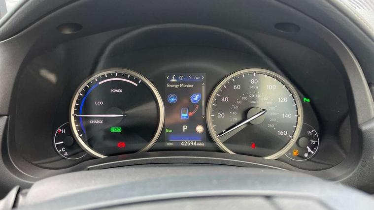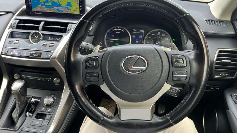 4 driving modes EV/Eco/Normal/Sport, 8" display screen with remote touch interface, Analogue clock, Apple car play/Android Auto, Bluetooth telephone connectivity, Electric speed sensitive power steering, Intelligent parking sensors - 4 front and 4 rear, Lane change flasher function, Lexus link connected services with available optional wifi, Lexus navigation system, Push button starter, Reversing camera, All wheel drive system, Vehicle Dynamics Integrated Management (VDIM), Vehicle Stability Control (VSC), 2 USB ports, 8 Speakers, AUX socket with VTR compatibility, CD player, DAB Digital radio, Auto dimming interior rear view mirror, Bi LED headlight with Auto high beam, Body adhesive, laser screw welding and laser brazed roof structure, Front and rear one touch power windows, with anti-jam protection, Heated and auto folding door mirrors with turn indicators, Hidden exhaust pipe, LED brake lights and rear lights with emergency brake signal, LED daytime running lights, LED front and rear sequential indicators, Rain sensor windscreen wipers, Roof rails, 12V accessory port centre console and luggage compartment, 2 cupholders in front centre console, 2 map pockets in the rear, 2 x fixed shopping bag hooks in boot, 2 x sun visors with vanity mirror and lamp, 6 tie down hooks in boot, 60/40 split folding rear seat, 8 way driver/passenger electrically adjustable front seats, Adjustable rear seat backrest, Card holder installed in driver and passengers sun visors, Centre armrest with storage box, Dual climate control air conditioning system, Front and rear head restraints, Front and rear textile carpet mats, Heated front seats, Leather gear lever, Leather steering wheel with paddle shifts, LED interior illumination, Rear air vents, Rear centre armrest with 2 cupholders, Self charging hybrid, Tahara leather upholstery, Whiplash Injury Lessening (WIL) feature (active headrest) for seats, 2 x Isofix child rear seat restraints, 3 point ELR front seatbelts with pretensioners, 3x3 point rear seat belts, ABS, Adjustable seat belt anchor points, Driver and front passenger 2 stage airbag, Driver/front passenger side airbags, Drivers knee airbag, EBD + Brake Assist, ECB (Electronically Controlled Brake System), Electronic parking brake, Front and rear curtain shield airbags, Front passenger seat cushion airbag, Hill start assist, Hybrid automatic with 6 stage sequential shift and kick down switch, Lexus safety system - dynamic radar cruise control, pre collision system day and night, lane tracing assist, road sign, automatic high beam, OTA, Passenger airbag cut-off device, Traction control, Tyre pressure warning, 2 x remote key fobs, Anti-theft system with siren, alarm, intrusion sensor, glass breakage sensor, tilt sensor and engine immobiliser, Locking wheel nuts, Speed sensitive auto door locking, Two motion door lock with double lock, VIN Window etching, Silver inlays, Space saver spare wheel,