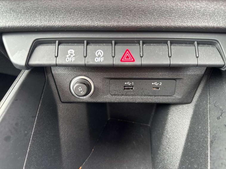 Black accent areas including air vents, door handle recesses and centre console in black, Black inlays polygon structure, 15" 5 arm design alloy wheels, Anti theft alarm, Anti theft wheel bolts and loose wheel warning, Audi pre-sense front with pedestrain and cyclist recognition, Immobiliser, Locking wheel bolts, Remote central locking with 2 remote folding keys, 1 x SDXC card reader, 1 x USB type C and 1 USB type A charging points, 6 passive loudspeakers, DAB Digital radio, MMI radio plus with 8.8" colour MMI display screen and MMI touch, 3x3 point rear seatbelts, Brake assist function, Driver and front passenger airbag with front side and head airbags, Electronic Stability Control including ABS, EBD, ASR and EDL, Front and rear seatbelt reminder, Front passenger airbag deactivation switch, Hill hold assist, Seatbelt height adjustment for front seats, Seatbelt monitoring, Tyre pressure warning light, Warning triangle and first aid kit, Auto dimming rear view mirror, Body coloured bumpers, Body coloured door mirrors, Electric front and rear windows, Front side air inlets with front spoiler lip and rear diffuser in matt black grained, Heat insulating glass windscreen and side windows, Heated rear windscreen, LED headlights with LED rear lights + dynamic rear indicators, Matt black radiator grille, Rain and light sensors, Rear fog lights, Rear wiper, 12V socket in centre console with two cup holders, 3 rear seats, 3 spoke leather multifunction plus steering wheel, Delta cloth upholstery, Driver and passenger seat with manual height adjust with forward and backwards adjustment, Front head restraints, Front/rear floor mats, Height and reach adjustable steering wheel, Illuminated glovebox, ISOFIX child seat mounting in front passenger and rear outer seats, Leather gear knob with aluminium trim, Leatherette handbrake grip, Luggage compartment light with front and rear reading lights, Rear head restraints, Split folding rear seats, Standard seats, Titanium grey cloth headlining, 10.25" Digital instrument cluster display screen, Audi connect safety emergency and service including E-call, Audi smartphone interface, Automatic start/stop system, Bluetooth interface, Electromechanical power steering, Lane departure warning system, Service interval indicator, Speed limiter, Voice control system, Washer fluid level indicator, Dynamic suspension,