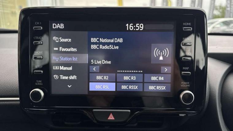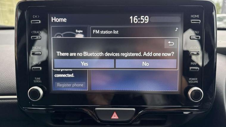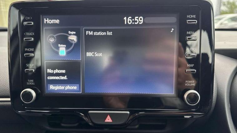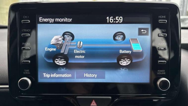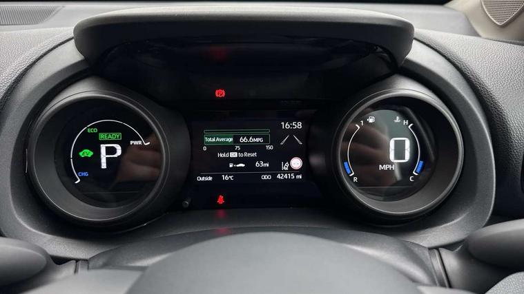4.2" multi information display, 8" Toyota touch 2 multimedia system with Smartphone integration with Apple CarPlay and Android auto, Adjustable speed limiter, Bluetooth connectivity, Digital speedometer, Driver attention alert system, eCall emergency system, Electric power steering, Full range intelligent adaptive cruise control, Hybrid system indicator, Key reminder warning, Lane trace assist, Multimedia, audio, telephone and voice recognition switches on steering wheel, My T Connected services, Pre-collision system enhanced with emergency steering assist, Reversing camera, Road sign assist - RSA, Steering assisted vehicle stability control, 6 speakers, DAB Digital radio, USB connection, 3rd brake light, Acoustic windscreen glass, Anti-jam protection on power windows, Auto high beam [AHB] with on/off switch, Automatic headlights, Black lower front grille, Black Shark-fin antenna, Black upper front grille, Black wheel arch mouldings, Body colour door handles, Body colour front bumper, Body colour rear bumper, Electric adjustable heated door mirrors, Follow me home headlights, Front and rear electric windows with auto up/down function, Front intermittent wipers, Halogen projector headlights, Headlight cut off reminder, Indicators integrated on door mirrors, Intermittent rear wiper, LED daytime running lights, LED Indicators, Manual headlight levelling, Manually retractable door mirrors, Noise reduction layer on windscreen, Rain sensor, Rear side wing doors, Rear spoiler, Rear window defogger, 12v power outlet - front, 2x Rear coat hooks, 3 seat bench in 2nd row, 3 spoke leather steering wheel, 60/40 split folding rear seat, Adjustable speed limiter switch on steering wheel, Auto air conditioning, Boot light, Central armrest, Driver and front passenger personal lights, Fabric door trim, Fabric upholstery, Front console box, Front cup holders, Front head restraints, Glovebox, Grey roof lining, Height adjustable driver's seat, Height adjustable front passenger seat, ISOFIX child restraint system, Lane departure alert switch on steering control, Leather gearshift, Manual telescopic and tilting steering wheel, Mirror on driver and passenger sun visor, Pollen air filter, Rear head restraints, Single front passenger seat, Soft tonneau cover, 3x3 point rear seat belts, ABS+EBD+Brake assist, Driver and passenger central airbags, Driver and passenger front airbags, Driver and passenger side airbags, Electronic parking brake, Emergency brake light system (EBS), Front seat belt reminder, Hill start assist control (HAC), Passenger airbag on/off switch, Pre-collision system with pedestrian and cyclist detection, Rear door child safety locks, Rear passenger side airbags, Rear seat belt reminder, Traction control, Tyre pressure warning system, Immobiliser, Intrusion alarm, Keyless smart entry with push button start, Power door locks, Power passenger window lock, Remote door lock, 16" 10 spoke alloy wheels, Tyre repair kit,