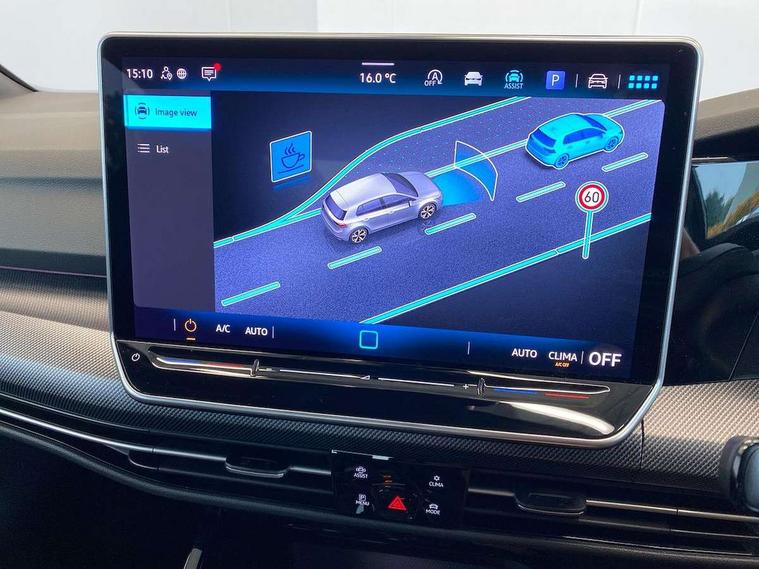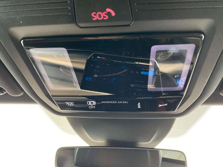 Activated carbon canister, Adaptive cruise control (ACC), Advanced driver attention and drowsiness monitor, Dynamic road sign display, Dynamic steering, E-Sim card for online connectivity, eCall emergency call system, Multi-color Digital cockpit pro, selection of different info profile possible, Multifunction front facing camera for distance control, Navigation system, Oncoming vehicle braking when turning including swerve support, Speed limiter, Speedo, rev counter, electronic odometer, trip, service interval display, exterior temperature and fuel gauge, Traffic jam assist, Voice enhancer and voice control, Warning signal and warning light for front and rear seatbelts not fastened, We connect plus preparation, We connect preparation, Wireless app connect, Hybrid propulsion system, Petrol Particulate Filter, Start-stop system with battery regeneration (recuperation - energy recovery during braking), XDS electronic differential lock for improved traction and handling, 2 USB C ports in front, 2 USB charging sockets on the centre console in the rear charging capacity upto 45W, Digital radio reception (DAB), Diversity antenna for FM reception, Gaming platform via car app, Infotainment system with 12.9" display, Mobile phone interface with inductive charging feature, 3rd brake light, Automatic headlamp activation with Coming home and Leaving home feature, Body colored bumpers in R-Line style, Body colour door handles, Exterior mirrors convex on the left and aspherical on the right, Front and rear electric windows, Heat insulating windshield made of laminated glass, LED separate daytime running light, Rear exhaust tailpipe, Rear fog light on one side and reversing lights on both sides, Rear side wing doors, Rear windscreen washer and wiper with interval delay, Remote electrically foldable door mirrors, puddle lights and reverse activated passenger's door mirror, Welcome light with surround lighting, 12V socket in front centre console, 12V socket in luggage compartment, 3 rear head restraints, 3 seat bench in 2nd row, Ambient lighting with 30 colour including LED light unit in front footwell with selectable light colour, Black roof lining, Brushed stainless steel pedals, Chrome plated radiator grille inserts, air vent surrounds and light switch surrounds, Door insert, side trim panel and arm support in leatherette, Front + rear black carpet mats, Front centre armrest, Front seat lumbar support adjuster, Integrated front head restraints, ISOFIX anchors for child seats on outer rear bench seats and on front passanger seat compatible for i-Size, Luggage compartment lighting, Manual height adjustable front passenger seat, Manually height adjustable driver seat, Plastic gear knob, Premium sports seats in front, Rear cupholder and loadthough, Sardegna cloth upholstery with front and outer rear seats Art Velour inner sides of bolsters, Single front passenger seat, Split folding backrest with centre armrest and unsplit rear seat bench, Sun visors with illuminated vanity mirrors, Titanium black instrument panel, 3 point height adj front seatbelts + pretensioners, 3 rear three point seatbelts, ABS, Autonomous emergency braking front assist with pedestrian and cyclist monitoring, Child locks on rear doors, Driver and front passenger airbag with front passenger airbag deactivation, Electronic parking brake with auto hold, ESC (Electronic Stability Control), Extended pedestrian protection measures, Hill start assist, Rear disc brakes, Two tone horn, Tyre pressure loss indicator, Volkswagen roadside assistance, Anti theft wheel bolts, Preparation for alcohol interlock, Decorative inserts carbon grey for dashboard and front door trim panels, Tool kit for tyre mobility set, Tyre mobility kit Includes 12V compressor and tyre sealant,