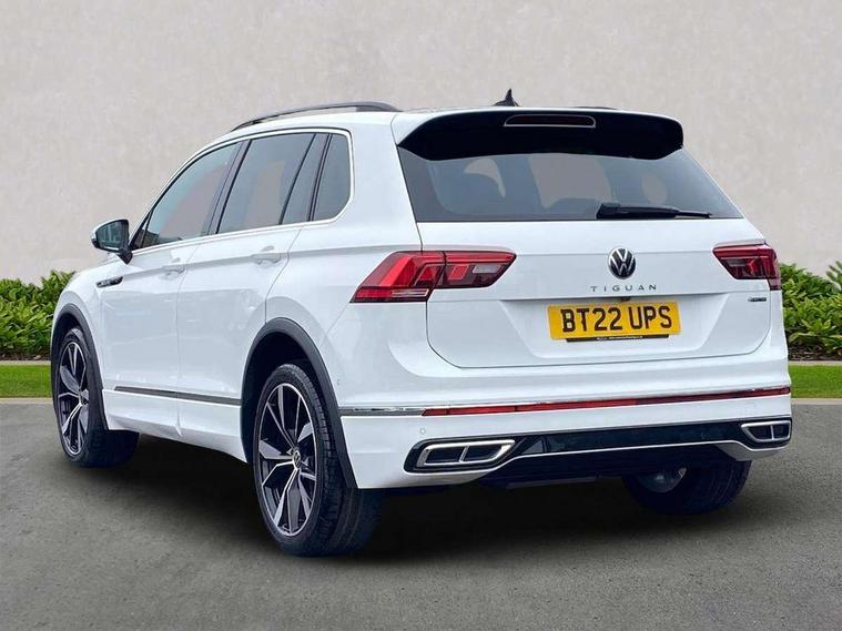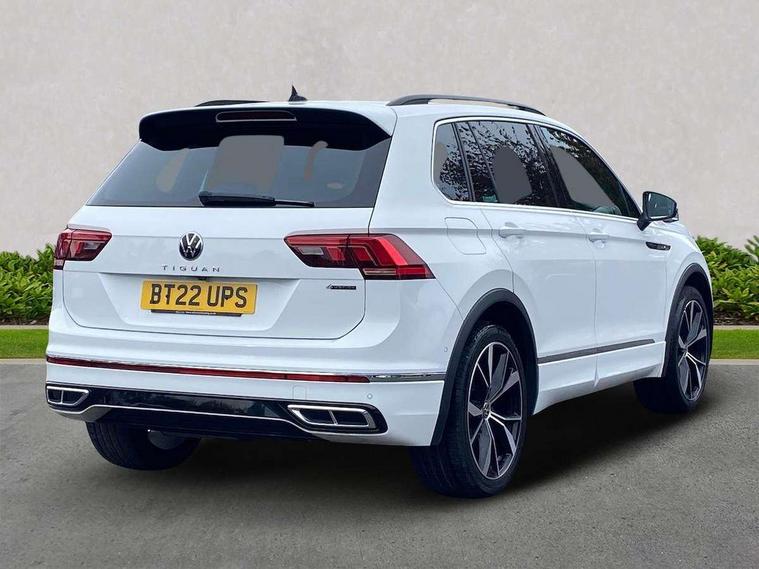 Adaptive cruise control ACC stop and go including speed limiter, App-Connect incl. App-Connect Wireless for Apple CarPlay and Android Auto, Bluetooth phone integration system, Distance control assist, Driver alert system, Driver profile selection, Dynamic road sign display, eCall emergency call system, Electromechanical speed sensitive power steering, Engine start/stop button, Lane keeping system Lane Assist, Lights on warning, Multifunction front facing camera, Outside temperature display, Premium multifunction display with multi colour display, Remote control boot opening, Rev counter, Revision / skills operating concept travel assistant, Service interval indicator, Speed limit display, Start/stop system with regenerative braking, Trip computer, Warning sound and light for doors and tailgate open, All wheel drive - 4Motion, Battery regeneration during braking, Diesel particulate filter, Misfuel prevention device for diesel engine, Selective Catalytic Reduction, XDS electronic differential lock for improved traction and handling, 4 X 20 watt output, 8 Speakers, Diversity antenna for FM reception, Radio, SD card slot, Simultaneous pairing of 2 compatible mobile devices, SMS functionality - read, compose and send SMS messages using touch-screen display, Title and cover art display, USB C ports, Auto dimming interior rear view mirror, Automatic headlight control system, Body colour door handles, Chrome moldings on the side windows, Coming/leaving home lighting function, Dynamic headlight range control, Front and rear electric windows, Heated rear window, High level 3rd brake light, Laminated safety glass windshield, heat and sound insulating, LED headlamps with LED separate daytime running light and dynamic cornering light, LED rear combination lamps, LED rear number plate lights, License plate carrier in front and rear, Poor weather light and cornering light, R Line body kit, R Line side sills, Rain sensor windscreen wipers, Rear exhaust tailpipe, Rear fog lamp, Rear side wing doors, Rear spoiler in R style, Rear windscreen washer and wiper with interval delay, Side and rear windows in heat insulating glass, Trailer Stability Programme, Unique R Line badging, Windscreen wipers/ intermittent wipe + 4 position delay, 12V outlet in center console rear and in luggage compartment, 12V outlet in front and tray, 2 cup holders in front, 2 LED front reading lights, 2 LED rear reading lights, 3 bench rear seats in 2nd row, 3 rear headrests, 4 load lashing points, 40:20:40 split folding rear seats, Air Care Climatronic 3 zone automatic climate control with enhanced air filter and controls in the rear, Backrest release for left front seat, Black headlining, Brushed stainless steel pedals and footrest, Carpet mats in front and rear with decorative stitching in Gray, Climate control unit rear with touch function, Door and side trim panel in foam film, insert in leatherette, Front centre armrest, Front footwell illumination, Front seats head restraints (x-adjustment), Height adjustable front seats, Height/reach adjust steering wheel, Instrument lighting white adjustable panel illumination, Interior light with delay, Isofix Preparation 2 Rear child seats, Leather gear knob, Lockable cooled glovebox, Luggage compartment lighting, Luggage net, Rear bench seat asymetrically split folding, longitudinally movable and folding with load-through hatch and center armrest, Remote unlocking for rear seat backrest, Removable luggage cover, Removable rear headrests, Safety optimised front head restraints, Single front passenger seat, Sliding/reclining rear seats, Standard rear seat release, Storage compartment in driver's door, Storage compartment in passenger's door, Storage compartment in rear doors, Storage compartments in luggage area left and right, Storage tray on dashboard, Sun visors with illuminated vanity mirrors, Top front comfort seats, Variable boot floor, height adjustable and removable, Driver assistance pack plus - Tiguan DSG, 3 point seat belt for centre rear seats, 3 point seat belts with seat belt pretensioners for the outer rear seats, Active bonnet, Curtain airbags for front and rear passengers, Driver/Front Passenger airbags, Drivers knee airbag, Electronic parking brake with auto hold, Electronic Stability Control with driver steering recommendation, ABS, ASR, EDL, EDTC and trailer stabilization, Front assist with autonomous emergency braking (for Adaptive Cruise Control ACC up to 130 mph), Front disc brakes, Front passenger airbag deactivation, Front side airbags, Height adjustable front 3 point seatbelts + pretensioners, Hill hold control, Manual child proof rear door locks, Pedestrian monitoring system, Power assisted brakes, Proactive passenger protection system in combination with front assist, Rear disc brakes, Rigid safety cell with front and rear crumple zones, Two tone horn, Warning sound and light for front seat belts if unfastened, Anti theft alarm system with interior monitoring, backup horn and towing protection, Anti theft wheel bolts, Electronic engine immobiliser, Tool kit,