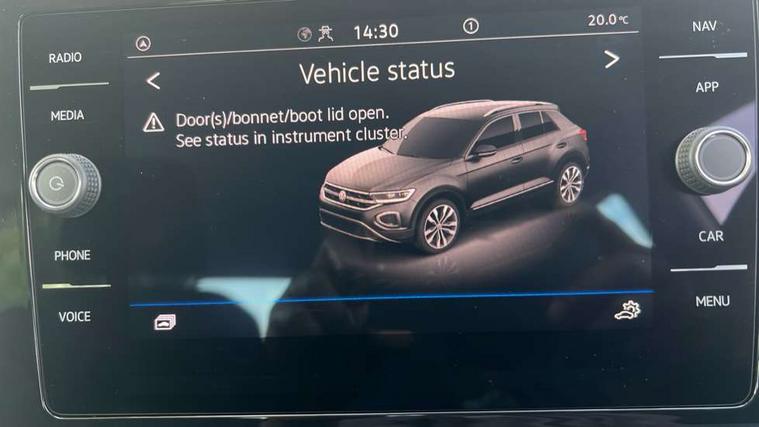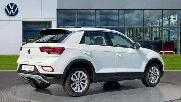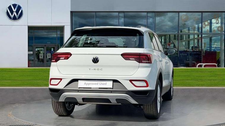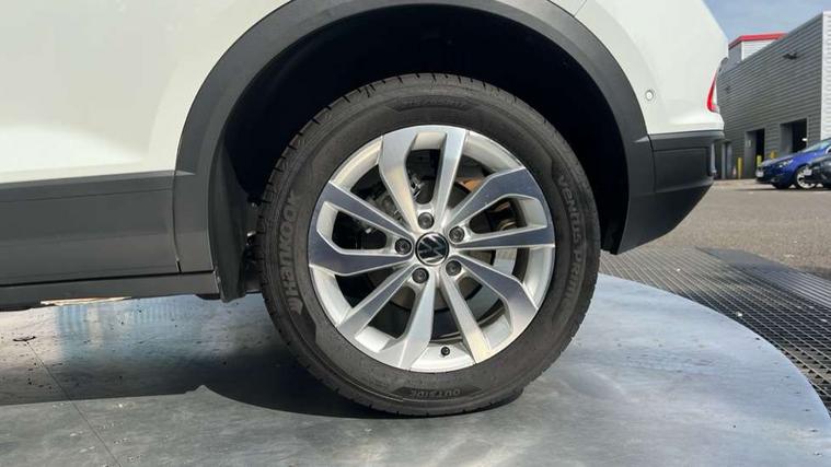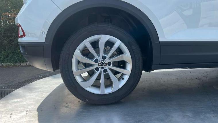 Advanced driver attention and drowsiness monitor, Dynamic road sign display, Emergency call service, Lane keeping system Lane Assist, Mobile phone interface, Modified key software - reduce switch off time for key status change to Long no motion, Online services, Park assist including front and rear parking sensors, Power assisted speed sensitive steering, Service interval indicator, Tailgate/trunk lid release from outside, Think blue trainer driver tips and journey analysis, Warning sound and light for front seatbelts unfastened, Wireless app connect, Battery regeneration during braking, Front shock absorption, Rear shock absorption chassis with increased ride height, Start/stop function with battery regeneration, DAB Digital radio, Diversity antenna for FM reception, Front and rear 6 speakers, Music playback - MP3, WMA and AAC files, Premium USB cable in choice of either Apple or Android smartphone compatibility, SD card slot, Simultaneous pairing of 2 compatible mobile devices, Title and cover art display, We Connect and We Connect Plus functionality, Auto dimming interior rear view mirror, Automatic hazard lights activation under emergency braking, Automatic headlight control with LED separate daytime running lights with coming/leaving home function, Black roof rails, Body coloured bumpers and radiator grille with chrome trim and front fog lamps with chrome bezel, Body coloured exterior mirror housings and door handles, Electrically adjustable and heated door mirrors, Extended roof spoiler, Exterior mirrors aspherical on driver side, convex on front passenger side, External USB type C socket and charging sockets, Front windscreen wiper with intermittent wipe and 4 position delay, Heated rear window, LED 3rd brake light, LED rear combination lamps, LED rear number plate lights, Power windows with comfort operation and circuit breaker, Rain sensor, Rear exhaust tailpipe, Rear fog light on one side and reversing lights on both sides, Rear side wing doors, Rear wash/wipe with intermittent wipe setting, Remote electrically foldable door mirrors, puddle lights and reverse activated passenger's door mirror, 12V power socket in centre console, 3 rear head restraints, 3 seat bench in 2nd row, 4 load lashing points in luggage compartment, Air care climatronic air conditoning system with active combination filter and 2-zone temperature control, Ambient lighting with mirror logo projection, Cloth upholstery, Door and side trim panel in cloth, Drawer under drivers seat, Driver/front passenger seat height adjustment, Front centre armrest, Front comfort sports seats, Front cupholders x 2, Front reading light, Front seat back storage pockets, Glove compartment door with light, Instrument lighting, white adjustable panel illumination, Interior light delay, Isofix child seat preparation, Leather gearshift handle, Load-through provision with cup holder when folded down ('Unsplit rear seat bench, split folding backrest, with centre armrest), Luggage compartment lighting, Lumbar support for driver's and front passengers seat, Non-folding front passenger seat backrest, Single front passenger seat, Storage compartment in left and right luggage area, Storage compartment in rear doors, Storage compartments in driver and front passenger doors, Sunvisors with illuminated vanity mirrors, Variable boot floor, height adjustable and removable, Driver assistance pack without proactive passenger protection - T-Roc Life/Match, 3 point height adj front seatbelts + pretensioners, 3 point seatbelts in outer rear with ECE label, ABS, Child locks on rear doors, City emergency braking and pedestrian monitoring, Driver and front passenger airbag with front passenger airbag deactivation, Driver and front passenger safety-optimised head restraints, Drivers seatbelt reminder, Electronic parking brake, Electronic Stability Control (ESC) inc EDL (Electronic Differential Lock) and ASR (Traction Control), Front and rear passengers curtain airbag system including front side airbags, Front disc brakes, Hill start assist, Predictive pedestrian protection, Rear disc brakes, Two tone horn, Tyre pressure loss indicator, Volkswagen roadside assistance, Alarm with interior protection, Pewter matt decorative inserts for intrument panel, centre console and door panels at the front, Trims for alloy wheels,