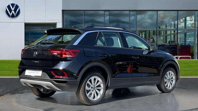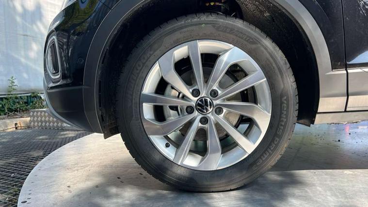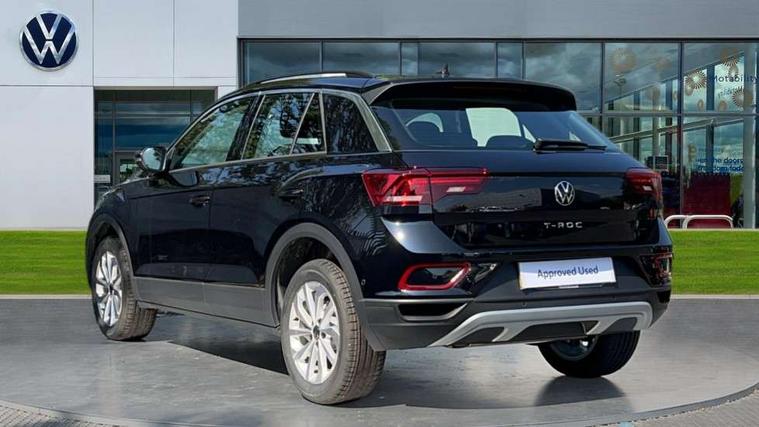 Advanced driver attention and drowsiness monitor, Dynamic road sign display, Emergency call service, Lane keeping system Lane Assist, Mobile phone interface, Modified key software - reduce switch off time for key status change to Long no motion, Online services, Park assist including front and rear parking sensors, Power assisted speed sensitive steering, Service interval indicator, Tailgate/trunk lid release from outside, Think blue trainer driver tips and journey analysis, Warning sound and light for front seatbelts unfastened, Wireless app connect, Battery regeneration during braking, Front shock absorption, Rear shock absorption chassis with increased ride height, Start/stop function with battery regeneration, DAB Digital radio, Diversity antenna for FM reception, Front and rear 6 speakers, Music playback - MP3, WMA and AAC files, Premium USB cable in choice of either Apple or Android smartphone compatibility, SD card slot, Simultaneous pairing of 2 compatible mobile devices, Title and cover art display, We Connect and We Connect Plus functionality, Auto dimming interior rear view mirror, Automatic hazard lights activation under emergency braking, Automatic headlight control with LED separate daytime running lights with coming/leaving home function, Black roof rails, Body coloured bumpers and radiator grille with chrome trim and front fog lamps with chrome bezel, Body coloured exterior mirror housings and door handles, Electrically adjustable and heated door mirrors, Extended roof spoiler, Exterior mirrors aspherical on driver side, convex on front passenger side, External USB type C socket and charging sockets, Front windscreen wiper with intermittent wipe and 4 position delay, Heated rear window, LED 3rd brake light, LED rear combination lamps, LED rear number plate lights, Power windows with comfort operation and circuit breaker, Rain sensor, Rear exhaust tailpipe, Rear fog light on one side and reversing lights on both sides, Rear side wing doors, Rear wash/wipe with intermittent wipe setting, Remote electrically foldable door mirrors, puddle lights and reverse activated passenger's door mirror, 12V power socket in centre console, 3 rear head restraints, 3 seat bench in 2nd row, 4 load lashing points in luggage compartment, Air care climatronic air conditoning system with active combination filter and 2-zone temperature control, Ambient lighting with mirror logo projection, Cloth upholstery, Door and side trim panel in cloth, Drawer under drivers seat, Driver/front passenger seat height adjustment, Front centre armrest, Front comfort sports seats, Front cupholders x 2, Front reading light, Front seat back storage pockets, Glove compartment door with light, Instrument lighting, white adjustable panel illumination, Interior light delay, Isofix child seat preparation, Leather gearshift handle, Load-through provision with cup holder when folded down ('Unsplit rear seat bench, split folding backrest, with centre armrest), Luggage compartment lighting, Lumbar support for driver's and front passengers seat, Non-folding front passenger seat backrest, Single front passenger seat, Storage compartment in left and right luggage area, Storage compartment in rear doors, Storage compartments in driver and front passenger doors, Sunvisors with illuminated vanity mirrors, Variable boot floor, height adjustable and removable, Driver assistance pack without proactive passenger protection - T-Roc Life/Match, 3 point height adj front seatbelts + pretensioners, 3 point seatbelts in outer rear with ECE label, ABS, Child locks on rear doors, City emergency braking and pedestrian monitoring, Driver and front passenger airbag with front passenger airbag deactivation, Driver and front passenger safety-optimised head restraints, Drivers seatbelt reminder, Electronic parking brake, Electronic Stability Control (ESC) inc EDL (Electronic Differential Lock) and ASR (Traction Control), Front and rear passengers curtain airbag system including front side airbags, Front disc brakes, Hill start assist, Predictive pedestrian protection, Rear disc brakes, Two tone horn, Tyre pressure loss indicator, Volkswagen roadside assistance, Alarm with interior protection, Pewter matt decorative inserts for intrument panel, centre console and door panels at the front, Trims for alloy wheels,