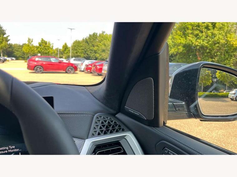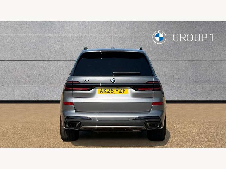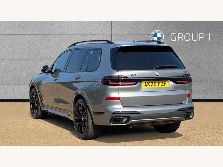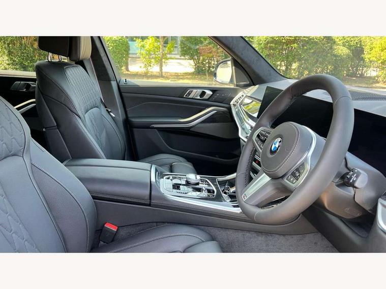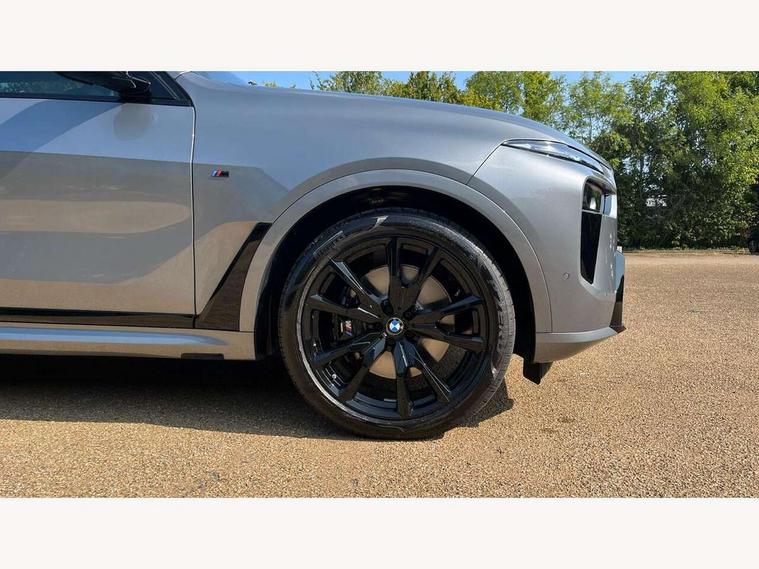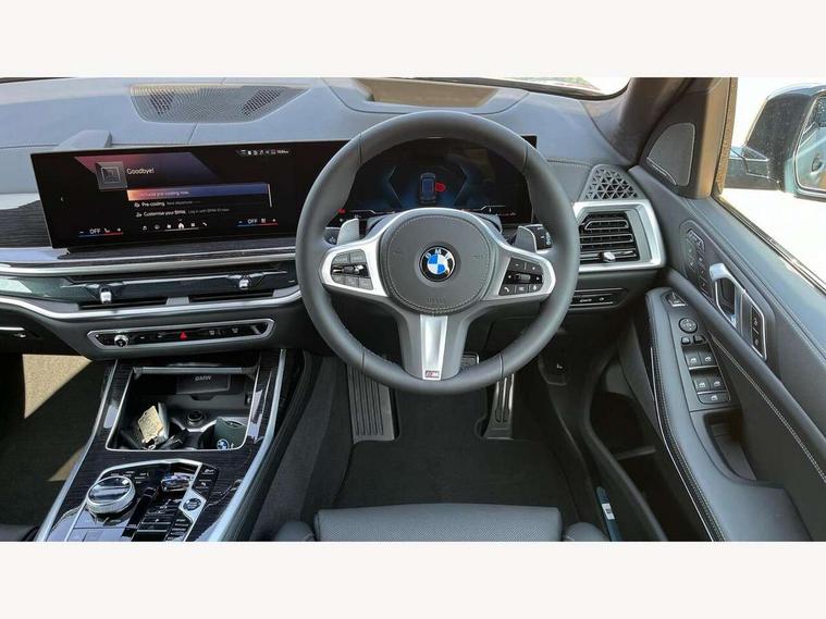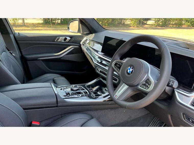 2 rear USB-C ports, Attentiveness assist, Automatic start/stop function, Automatic tailgate operation, BMW ConnectedDrive online services, BMW Drive recorder, BMW gesture control, BMW Teleservices, Brake pad wear indicator in front and rear, Condition based service, Integrated owner's handbook, Live Cockpit Professional with head up display including 12.3" instrument cluster and 14.9" central display, Parking assistant pro including reversing assistant, PDC, lateral parking aid, reversing assist camera, parking drive off monitoring, 48V Mild hybrid technology, 8 speed automatic with steptronic transmission including automatic hold function and gearshift paddles on the steering wheel, Drive experience switch with comfort mode + ECO PRO + sport mode, Permanent all wheel drive, 2x Front USB (1x USB-C, 1x USB-A), DAB radio, Personal eSim, Acoustic glazing, Adaptive air flap control bars in high gloss black, Air breather and door claddings in high gloss chrome, Body coloured wheel arches, Dynamic brake lights with LED technology, Electrically adjustable and heated aspheric folding side mirrors with auto dimming, electric fold in function, automatic parking function, Exterior and central air inlets in front bumper painted pearl chrome, Follow me home headlight function, Frameless interior mirror, Front and rear electric windows, Heated windscreen washer nozzles, High beam assist, High gloss black shadow line roof rails, High gloss black shadowline trim in side/window frame, window recess cover, window guide, B and C pillar, mirror triangle, mirror base, mirror frame, Integrated turn indicators, LED daytime running lights, LED rear lights, LED third brake light in rear spoiler, Rain sensor with automatic headlight activation and windscreen wiper control, Rear side wing doors, Sump guard front and rear painted in silver, Trailer stabilisation logic, 12V - Power sockets with 2x centre console and 1x luggage compartment, 2 seat bench in 3rd row, 2x cupholders in front, rear centre armrest and two in third row seats, 3 seat bench in 2nd row, 3 spoke M leather multifunction steering wheel, 40:20:40 split folding rear seat backrests, Ambient lighting strip in the instrument panel with illuminated, Armrest in front centre console, Compartment in front of cupholder, Driver and front passenger sunvisors with illuminated vanity mirrors and ticket holder, Electrical steering column with adjustable height and length with activation and control on the steering column, Entry sills with illuminated M inscription, Fold down flush into floor of luggage compartment 50:50, Front and rear colour co-ordinated with all standard carpet colours, Front and rear door pockets, Front and rear side armrests integrated into door trim, Front seat back pockets, Grab handles, Height adjustable front headrests, Height adjustable rear headrests, Lockable glove compartment, Nano filter, Single front passenger seat, Soft close doors, Storage tray and compartment with lid in centre console, Wireless charging tray, Additional storage compartment pack - X7, Ambient light interior pack - X7, Connected Package Professional - X7, Interior lighting pack - X7, Luggage compartment pack - X7, M aerodynamics pack - X7, M Sport pack - X7, 3 point seatbelts on all seats, front pyrotechnic belt tensioners, stopper and belt force limiters, front and outer rear seats, Acoustic protection for pedestrians, Active protection, Airbag - Front driver and passenger, side airbags and Head airbags, Anti lock braking system (ABS) with cornering brake control, Automatic Stability Control (ASC), BMW emergency call, Child seat ISOFIX attachment rear outer seats in 2nd row and both seats in 3rd row includes top tether, Comfort access system with digital key, Comfort cushion seats for outer seats in 2nd row, Crash sensor inclu activation of airbags, interior light, safety battery terminal clamp, hazard warn flasher, unlock doors, deactivation of fuel pump, DSC - Dynamic Stability Control, Dynamic Traction Control - DTC, Electromechanical parking brake with automatic drive away release and auto hold function, Front and rear brake discs with interior ventilation, Hill descent control, Integrated braking system, Manual child lock in rear doors, PC iBrake PostCrash approach control warning with light braking function, Tyre pressure monitoring system, Tyre pressure sensors, Variable torque distribution, Warning triangle and first aid kit, Alarm, Central locking including 2 vehicle keys with integrated emergency key, Engine immobiliser, Locking wheel bolts, Galvanic embellisher for controls,