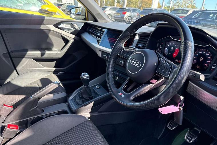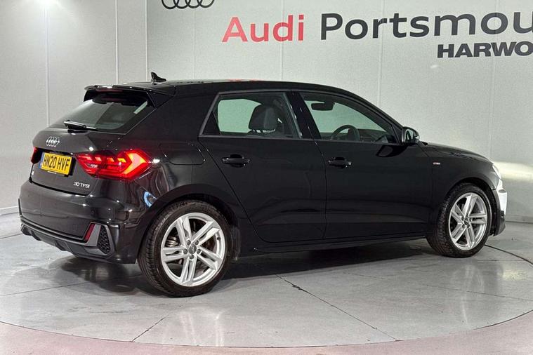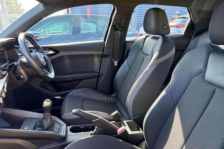 10.25" Digital instrument cluster display classis style instrument dials + speed, odometer, time, outside temperature, telephone menu + fuel level warning, Audi connect safety emergency and service including E-call, Audi drive select - power steering assistance + engine, Audi smartphone interface with connect compatible smartphone via USB directly MMI display + Nav, music, third party apps controlled via MMI controller, Automatic start/stop system, Bluetooth interface, Cruise control, Driver's information system, Electromechanical power steering, Lane departure warning system, Rear parking sensor, Service interval indicator, Speed limiter, Voice control system, Washer fluid level indicator, Sports suspension, 1 x SDXC card reader, 1 x USB type C and 1 USB type A charging points, DAB Digital radio, MMI radio plus with 8.8" colour MMI display screen and MMI touch, Auto dimming rear view mirror, Body coloured door mirrors, Door sills with aluminium inlays and S Line logo, Electric front and rear windows, Electrically adjustable, heated, folding door mirrors with integrated LED side indicator, Front side air inlets in grained matt black and C frame in titanium black, Heat insulating glass windscreen and side windows, Heated rear windscreen, LED headlights with LED rear lights + dynamic rear indicators + headlight adjustment and high beam, turning light + LED daytime running lights, Radiator grille and rear diffuser in matt titanium black, Radiator protective grille frame in matt aluminium silver, Rain and light sensors, Rear fog lights, Rear wiper, S line badges on front wings, Side front spoiler lips in grained matt black, 12V socket in centre console with two cup holders, 3 rear seats with headrests, 40:60 Split folding rear seat or folded fully, Black cloth headlining, Driver and passenger seat with manual height adjust with forward and backwards adjustment, Front and rear black floor mats with contrast stitching in fine silver, Front head restraints, Height and reach adjustable steering wheel, ISOFIX child seat mounting for front passenger and outer rear seats including top tether attachment point of outer rear seats, Leather gear knob with aluminium trim, Luggage compartment light with front and rear reading lights, Manually adjustable lumbar support in front seats, Stainless steel pedals, LED interior lighting pack - A1, Luggage compartment pack - A1, S line exterior styling pack - A1 Sportback, 3x3 point rear seatbelts, Audi pre-sense front with pedestrain and cyclist recognition, Brake assist function, Driver and front passenger airbag with front side and head airbags, Electronic Stability Control including ABS, EBD, ASR and EDL, Front and rear seatbelt reminder, Front passenger airbag deactivation switch, Hill hold assist, Seatbelt height adjustment for front seats, Seatbelt monitoring, Tyre pressure warning light, Warning triangle and first aid kit, Anti theft alarm, Anti theft wheel bolts and loose wheel warning, Immobiliser, Remote central locking with 2 foldaway keys, Aluminium trim for control switches, air vents and digital instrument cluster, Silver grey inlays polygon structure in diamond paint finish, Structured grey accent areas including air vents, door handle recesses and centre console in quartz paint finish,